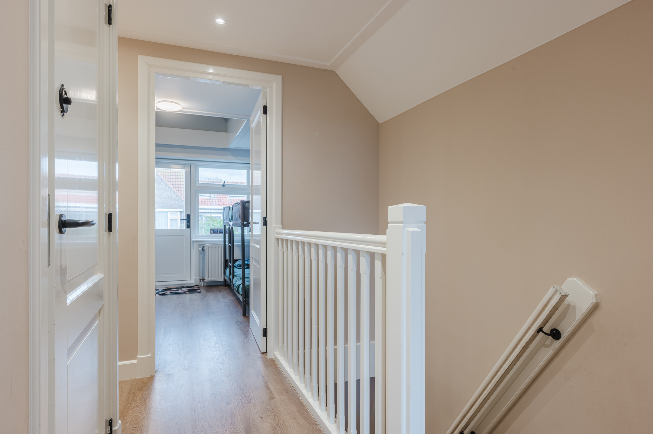 Via de ruime overloop heeft u toegang tot drie zéér royale slaapkamers. De ouderslaapkamer is gemaakt van een prachtige handgemaakte inbouwkast. De strak afgewerkte badkamer is volledig betegeld en voorzien van een nette douche, dubbele wastafelmeubel toilet en designradiator.