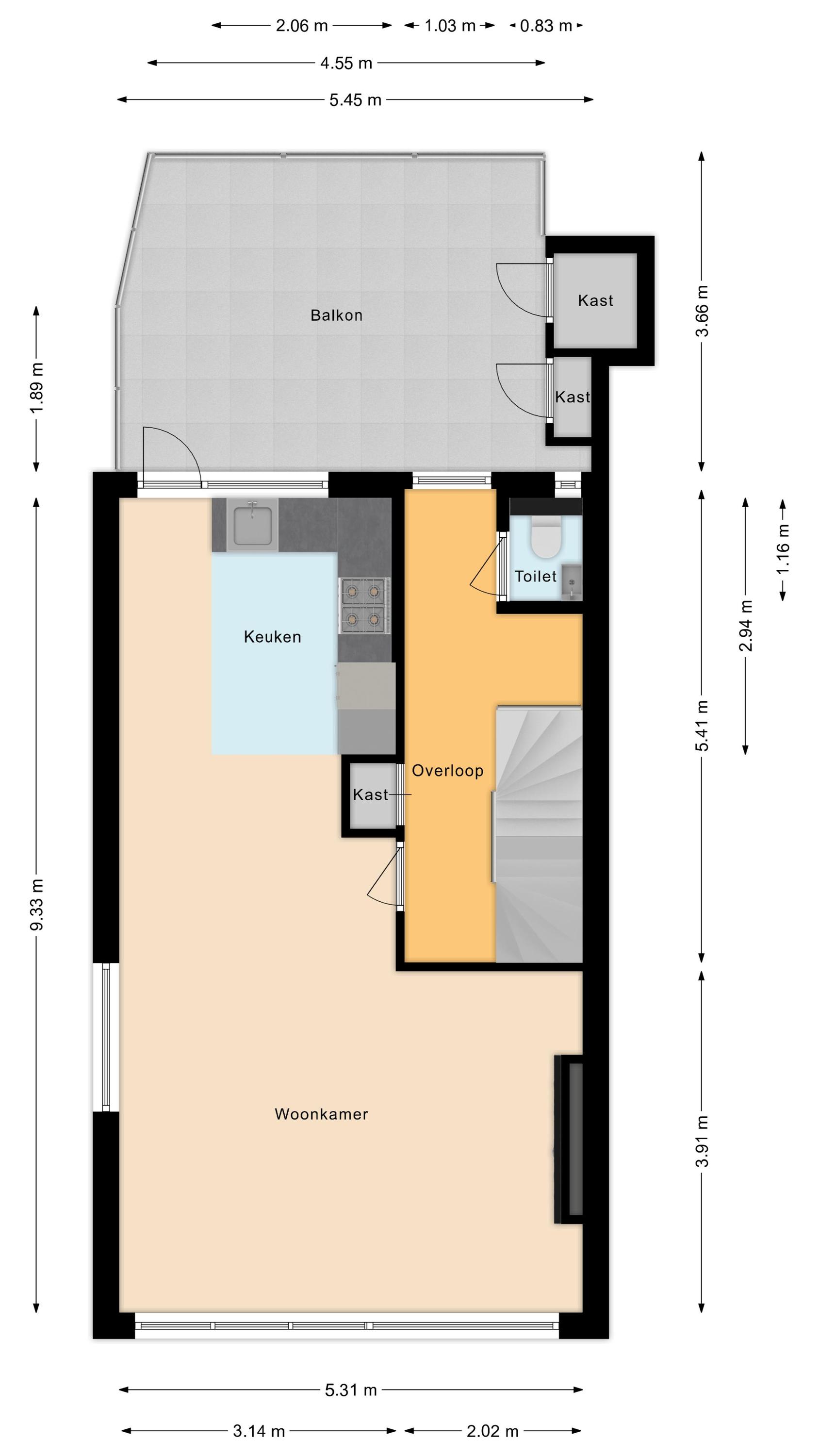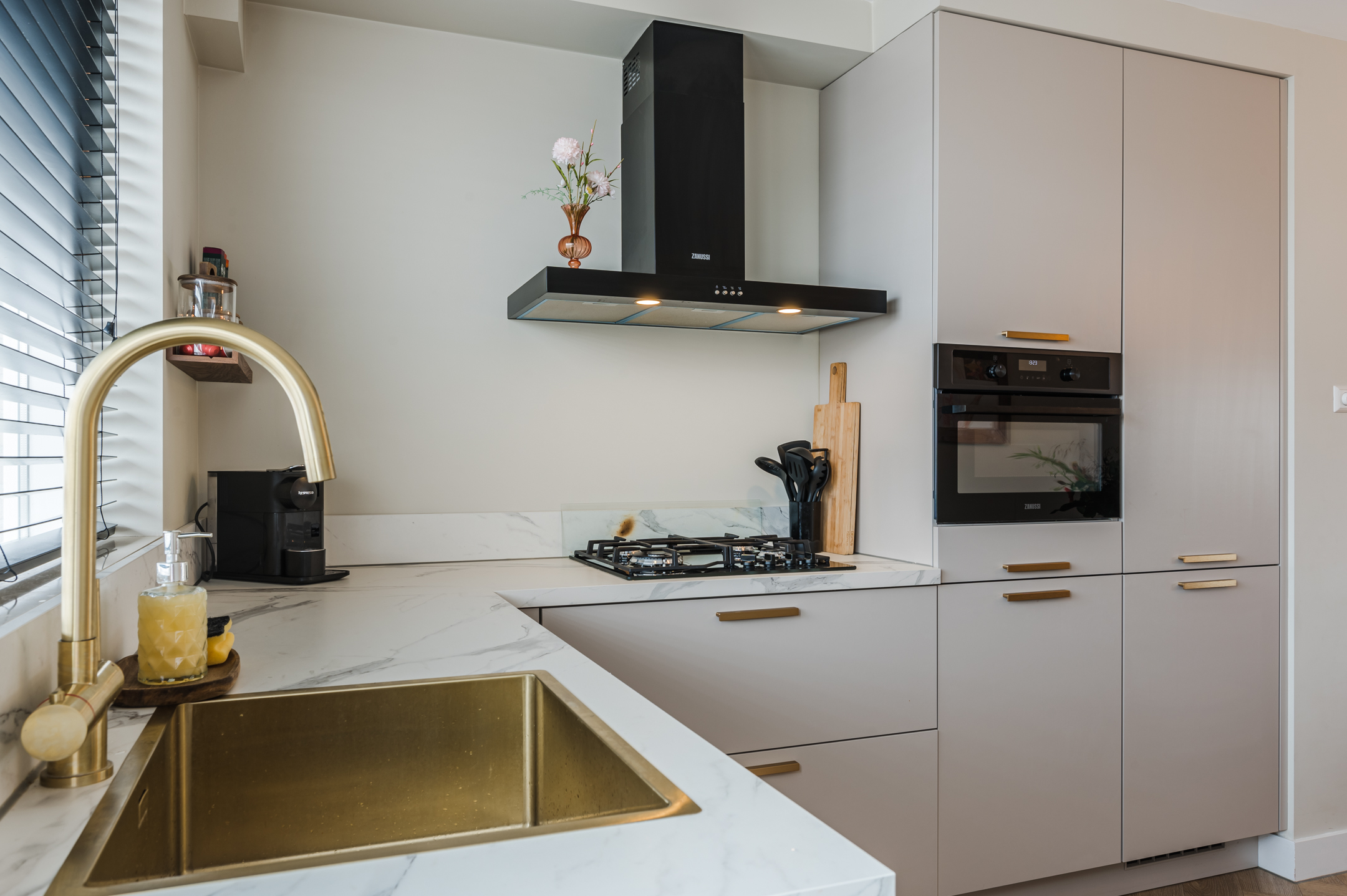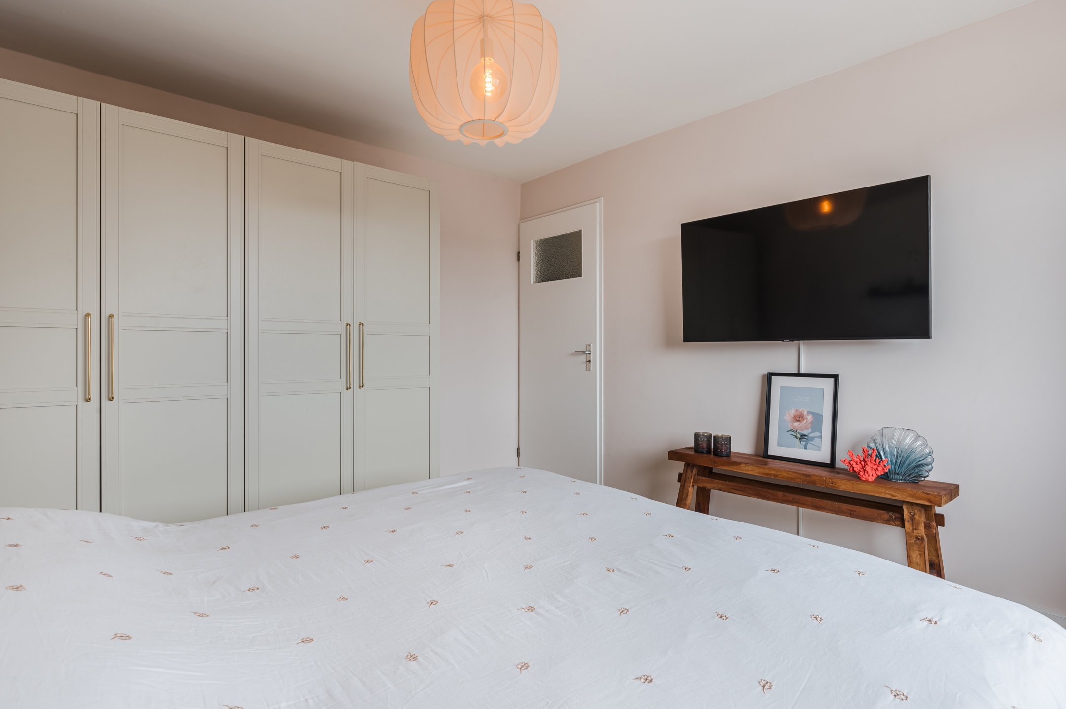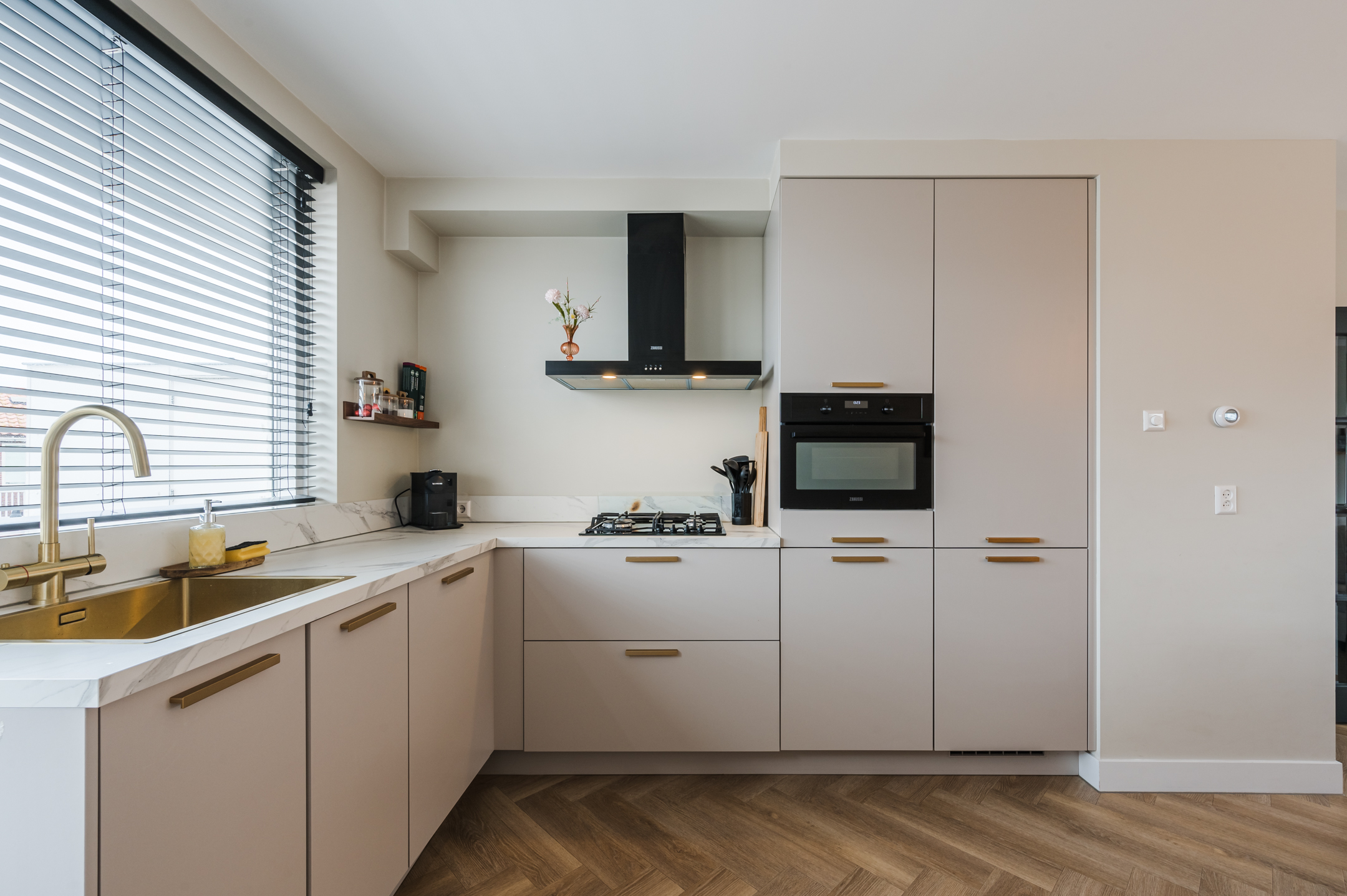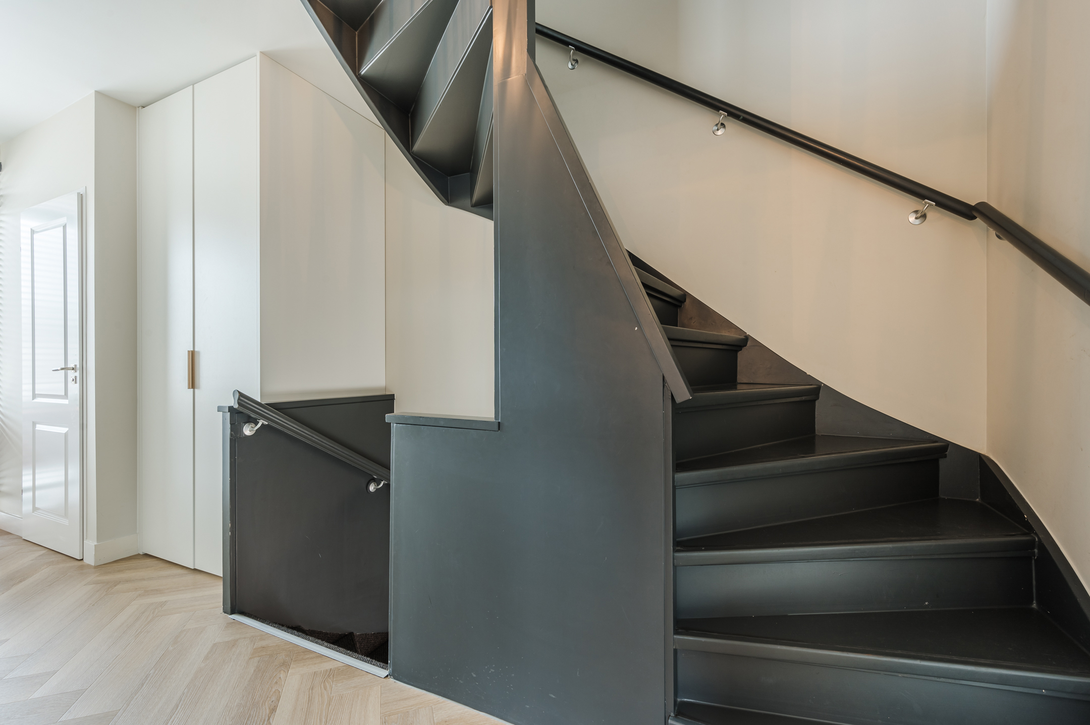 De entree van de woning bevindt zich op de begane grond. Hier treft u ook een hal met meterkast. Via een trap bereikt u de woonverdieping welke is voorzien van een fraaie visgraat pvc-vloer. Via de overloop welke is voorzien van het toilet, betreedt u de ruime L-vormige woonkamer van ca. 29 m² deze is heerlijk licht door de grote raampartij en heeft een direct in het oog springende cinewall met sfeervolle haard. De modern licht uitgevoerde keuken uit 2024 is voorzien van diverse inbouwapparatuur. Vanuit de keuken heeft u toegang tot het zonnige dakterras.