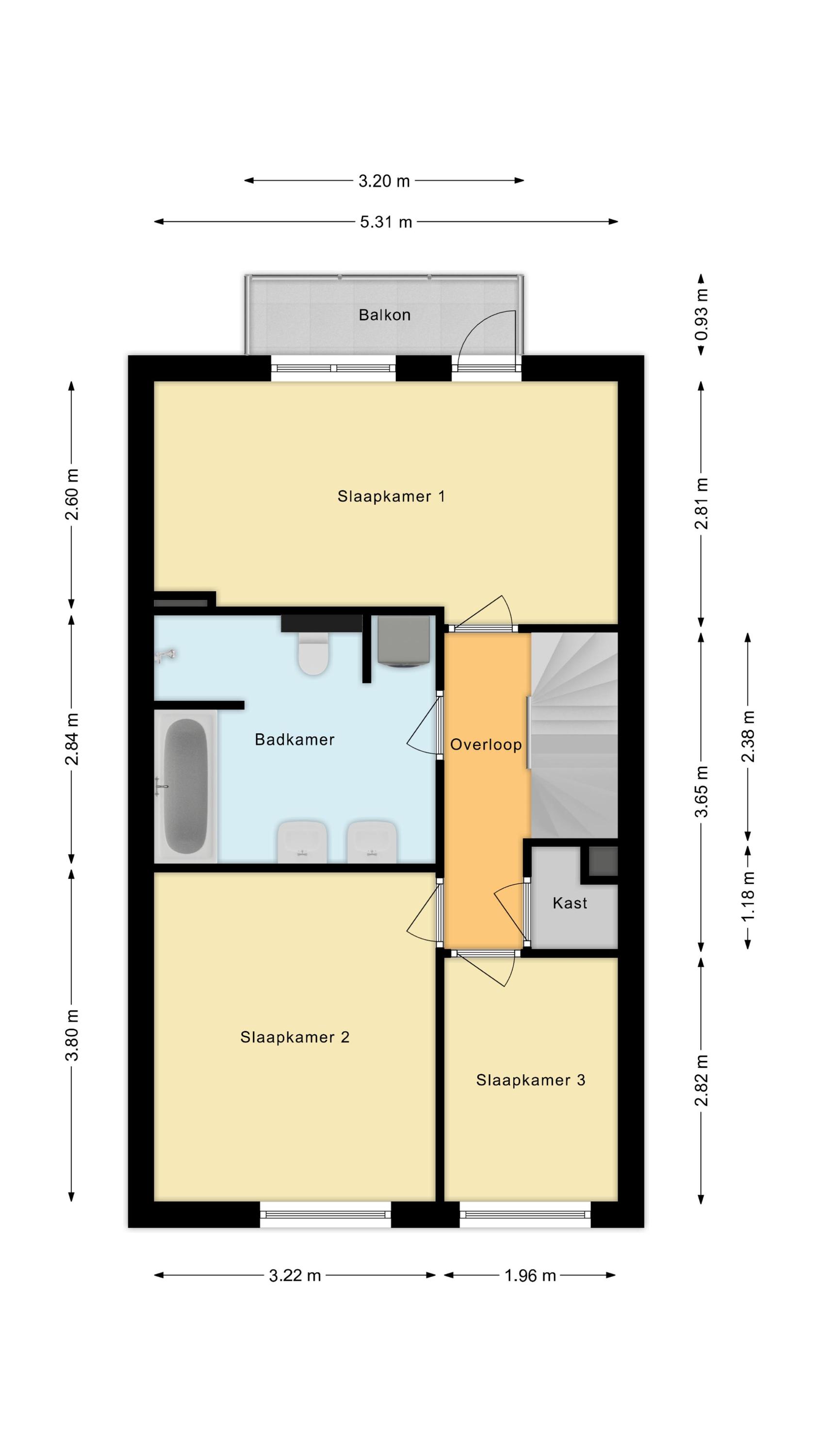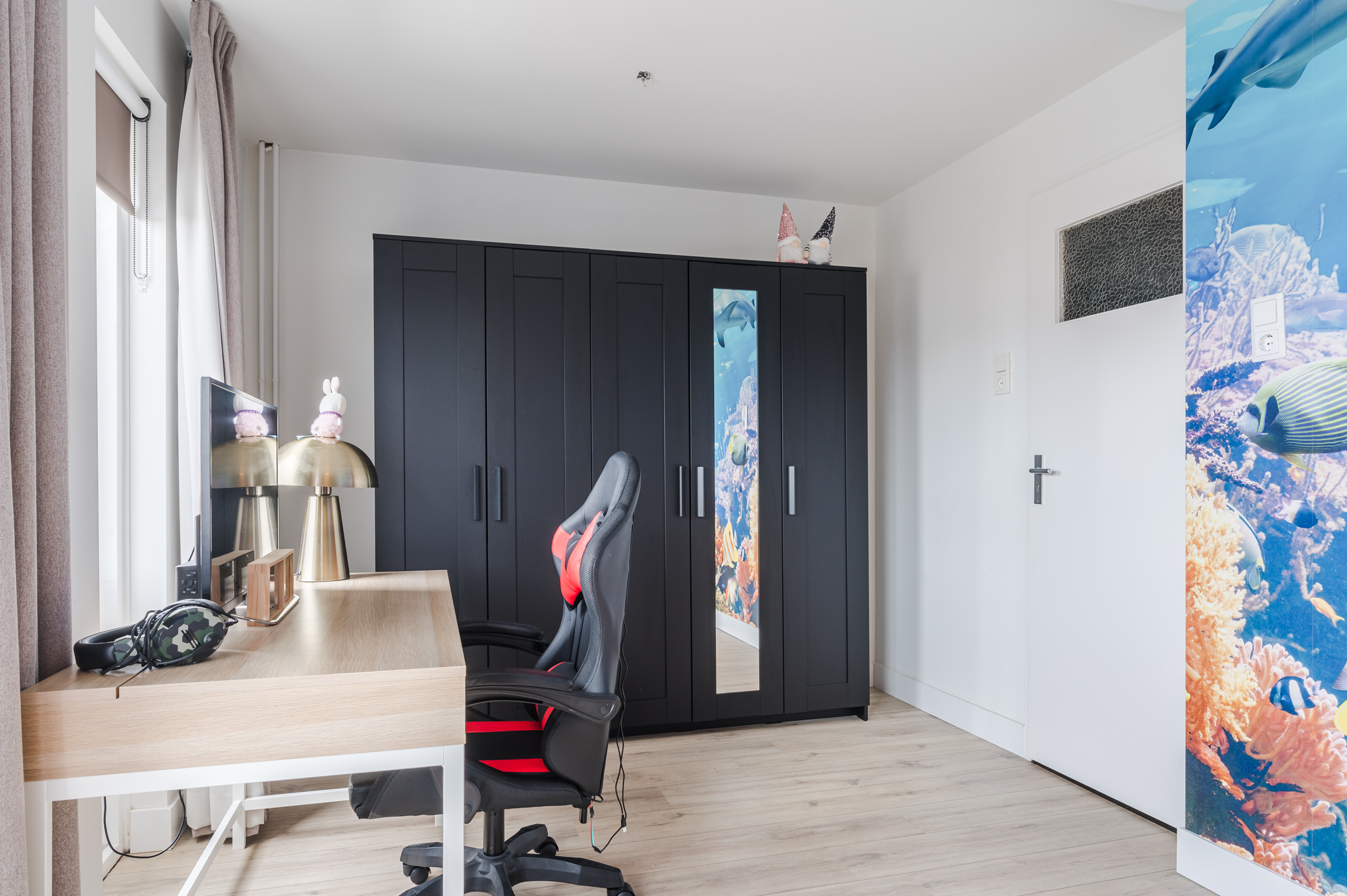 Op de 1e verdieping bevinden zich 3 goed-formaat slaapkamers waarvan 1 met toegang tot een balkon, een overloop met praktische bergkast en een luxe badkamer uit 2021 voorzien van ligbad, duo wastafelmeubel, zwevend toilet, wasmachine aansluiting en een inloopdouche met sunshower.