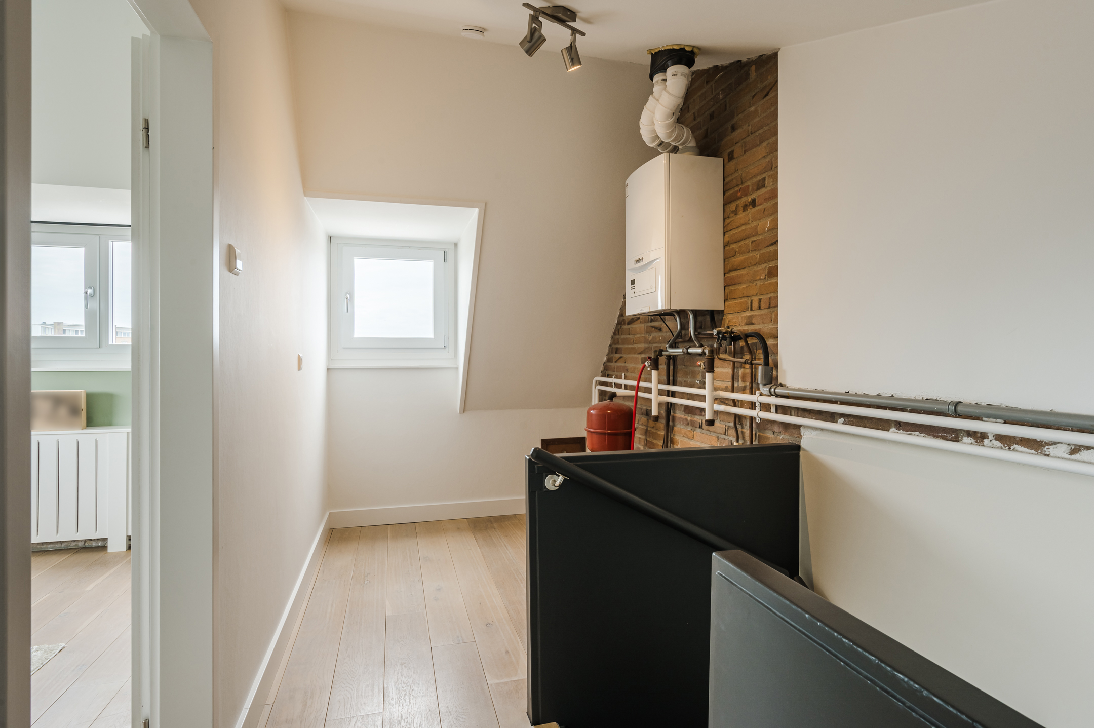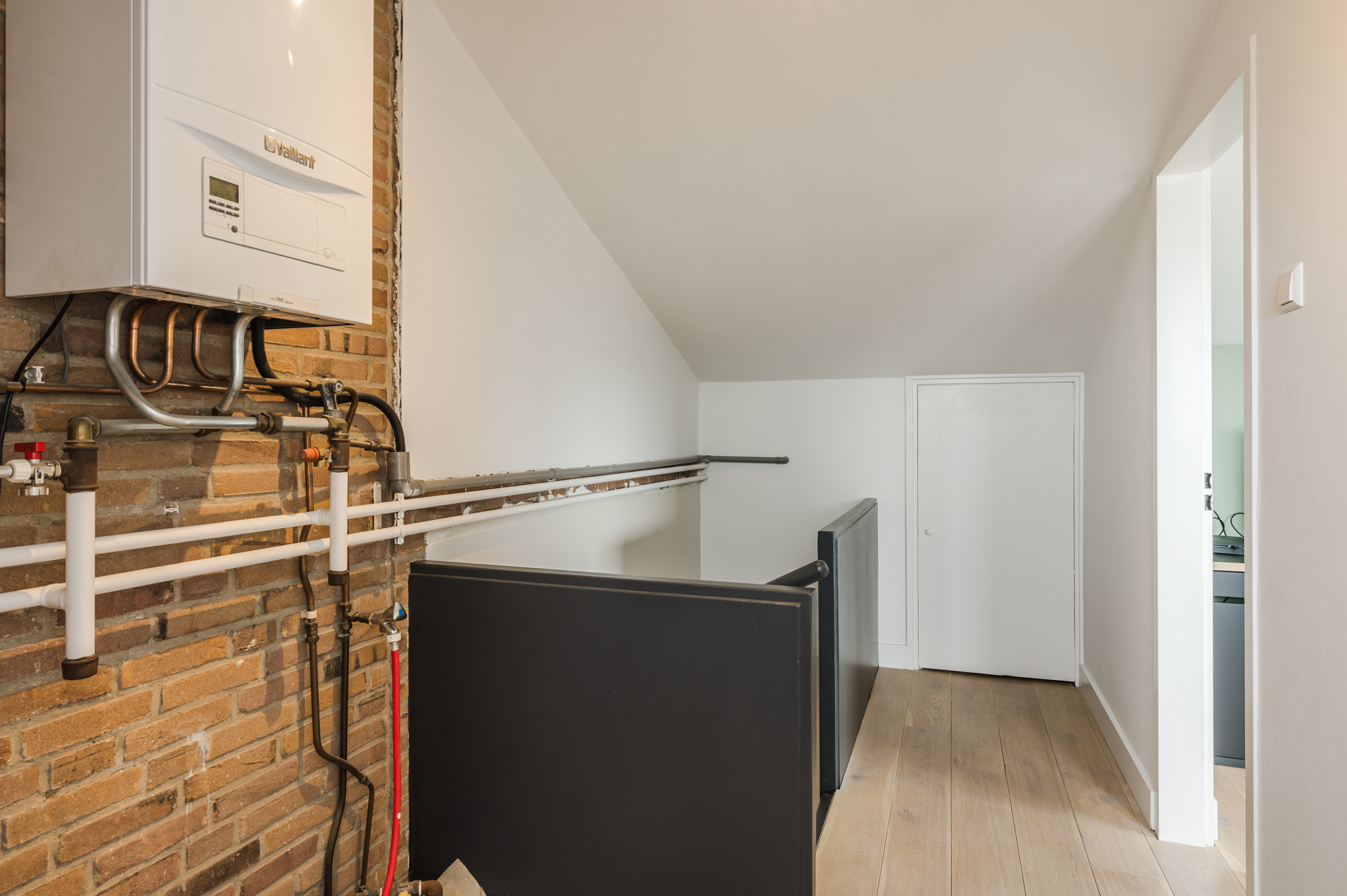 Via een vaste trap is de zolderverdieping te bereiken. Deze is aan de achterzijde voorzien van een dakkapel. Hier treft u een ruime overloop met c.v.-ketelopstelling, 4e slaapkamer en een royale bergruimte.
