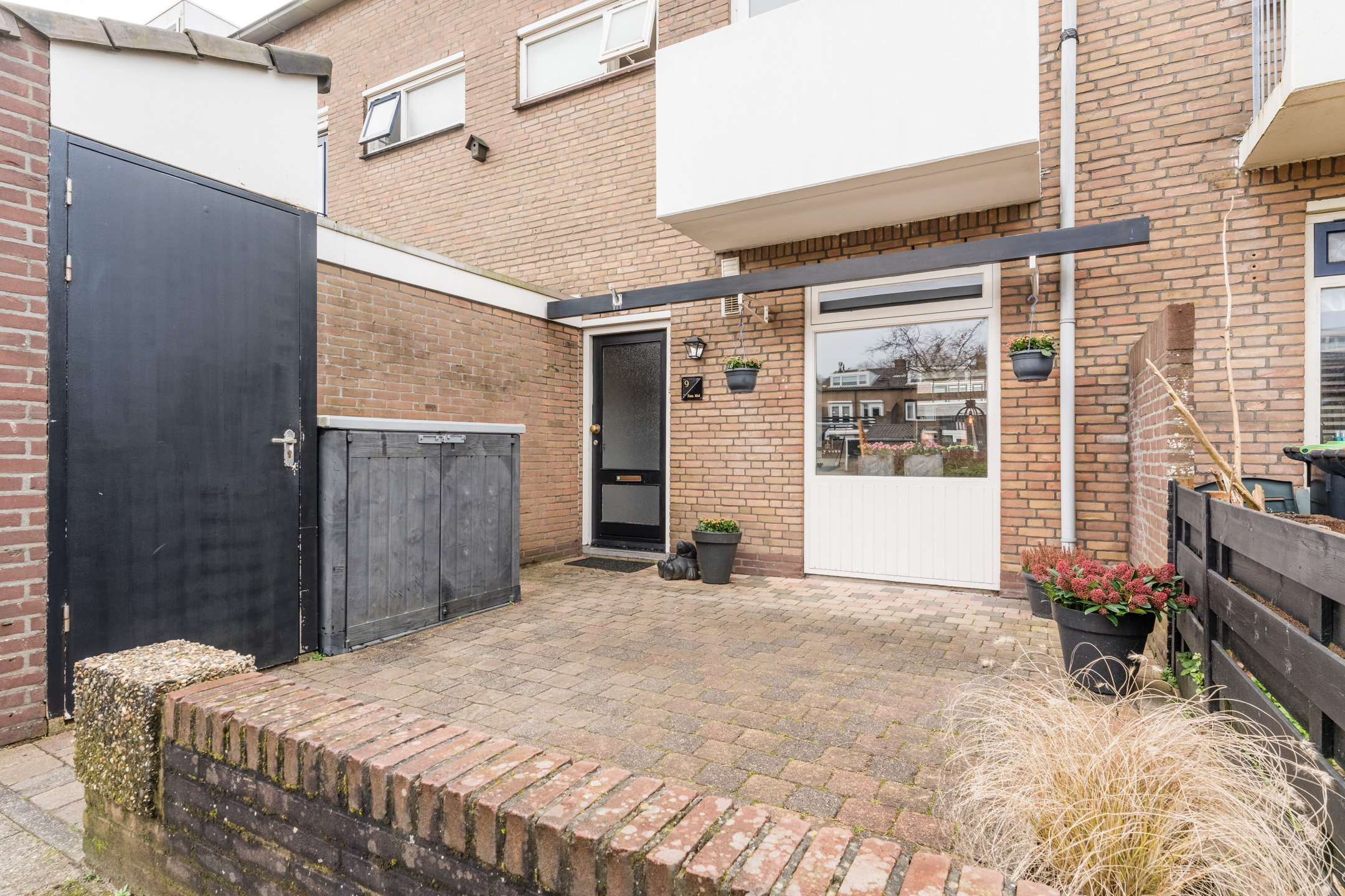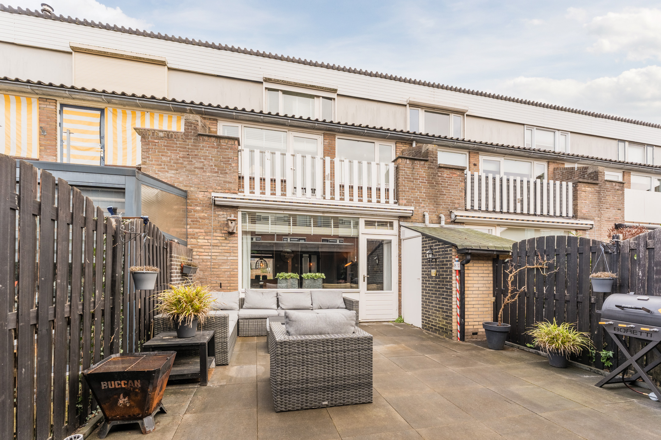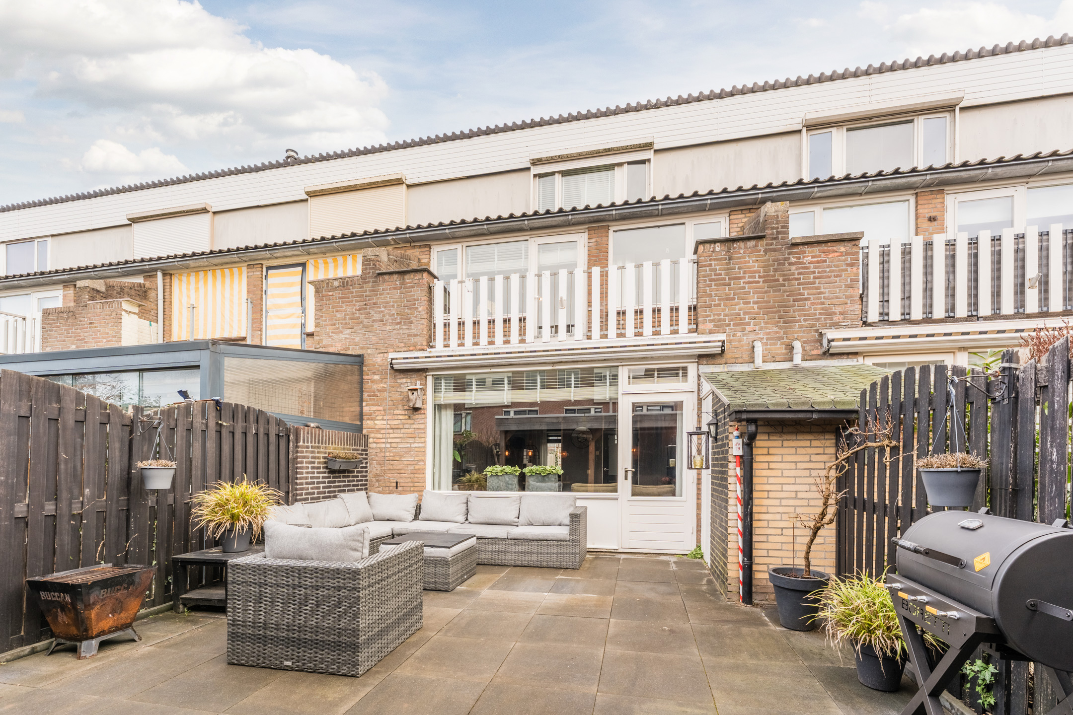 Aan de achterzijde bevindt zich een heerlijk ruime en zonnige tuin. In juni 2021 is hier een ruime afsluitbare veranda gerealiseerd voorzien van elektra. Ook is er nog een kleine berging met kraan, waar u onder andere uw kussens kunt opslaan.