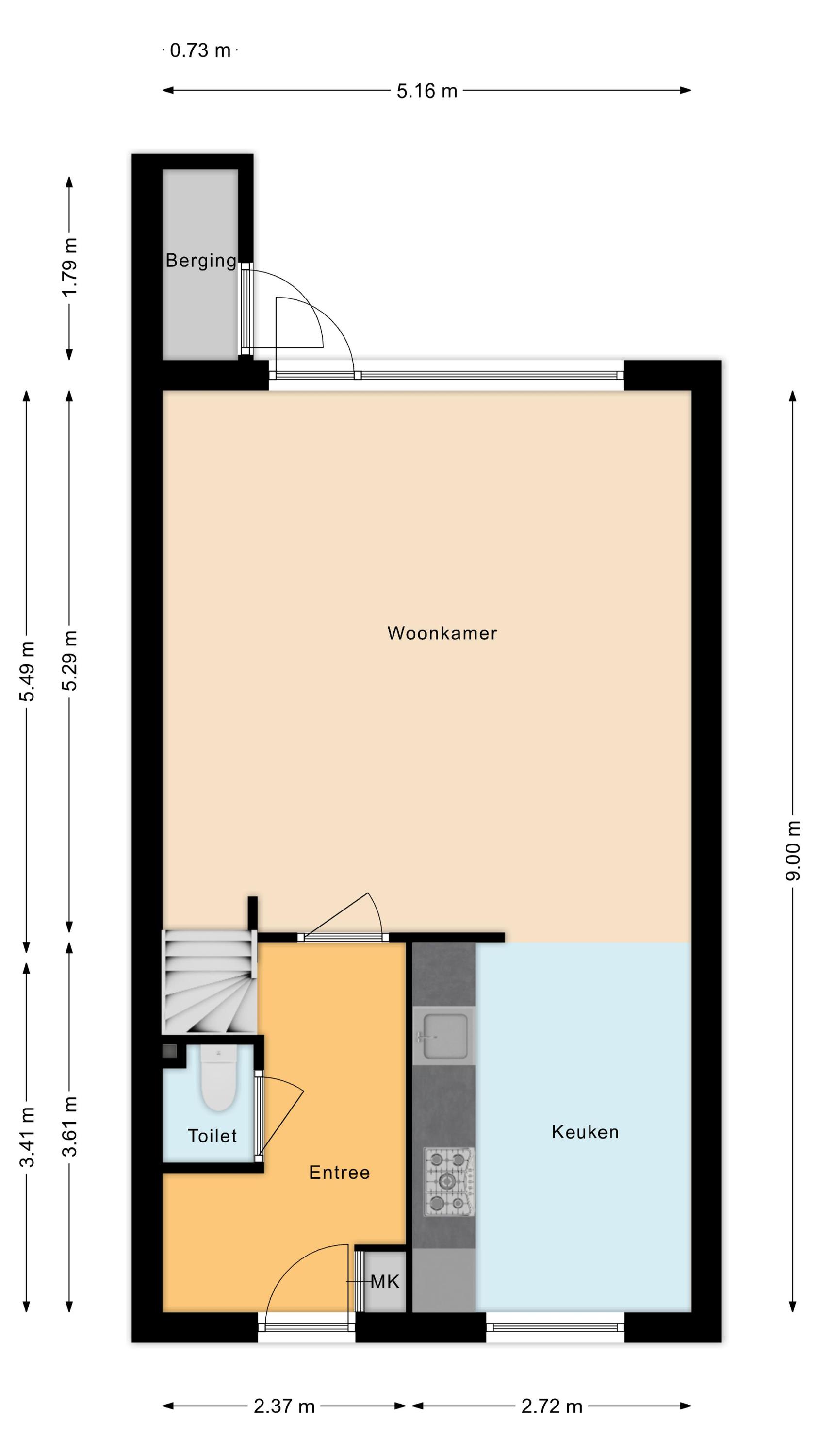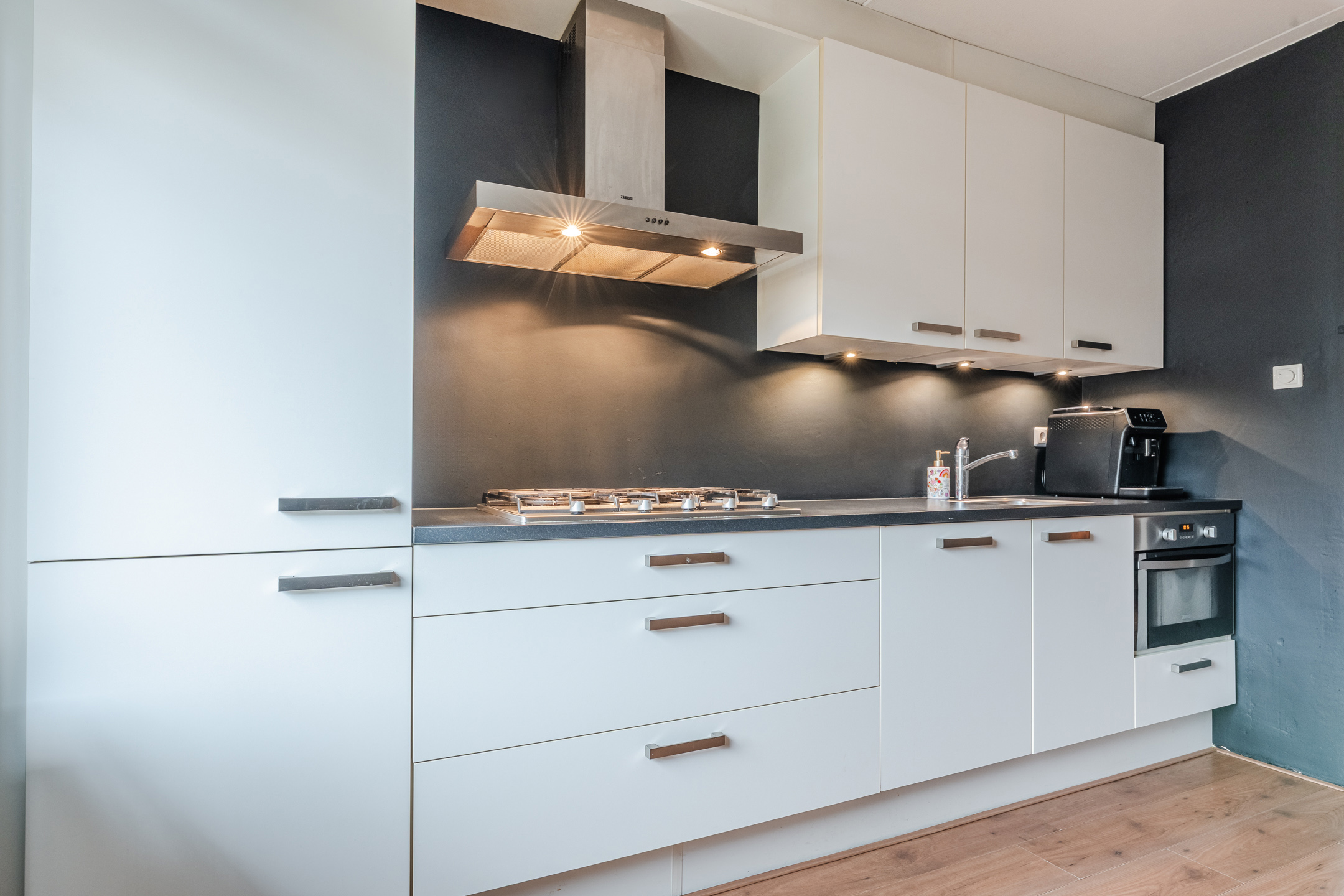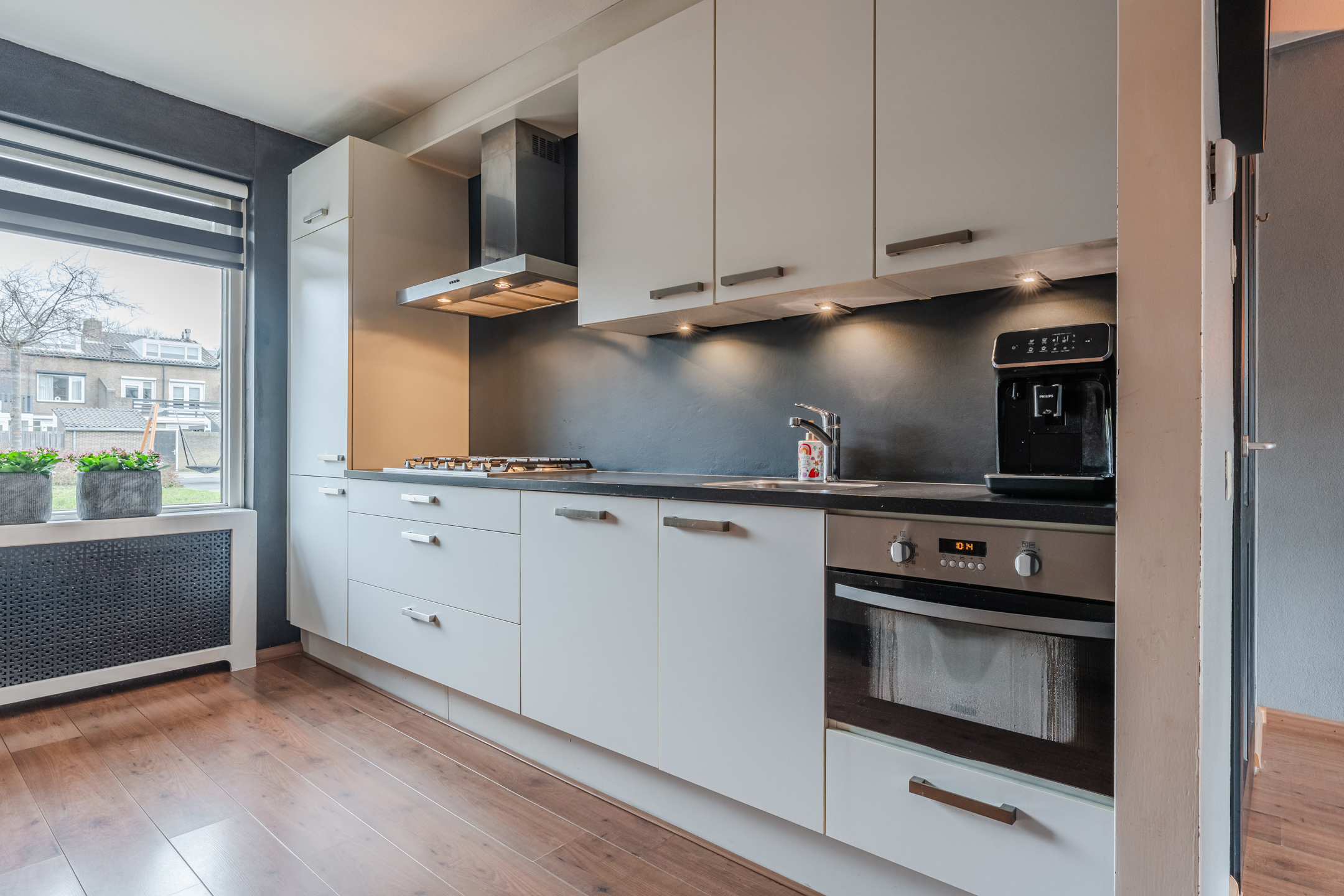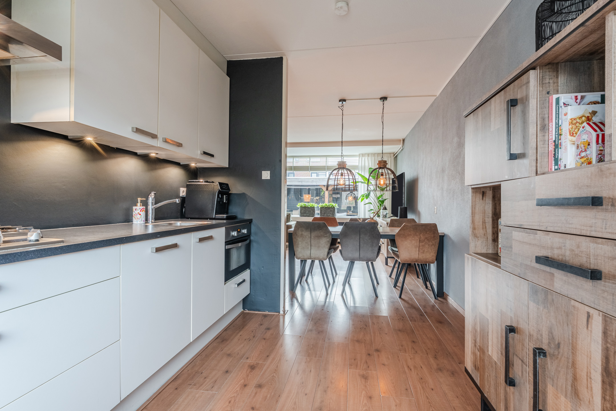 Via de ruime entree heeft u toegang tot het toilet, de meterkast en de trap naar de verdieping. De woonkamer is heerlijk licht vanwege de ligging op het zuiden en de grote raampartij. Aan de voorzijde van de woning bevindt zich de open keuken, voorzien van onder andere een combi-oven, Miele vaatwasmachine, 5-pits gasfornuis, afzuigkap, koelkast en vriezer.