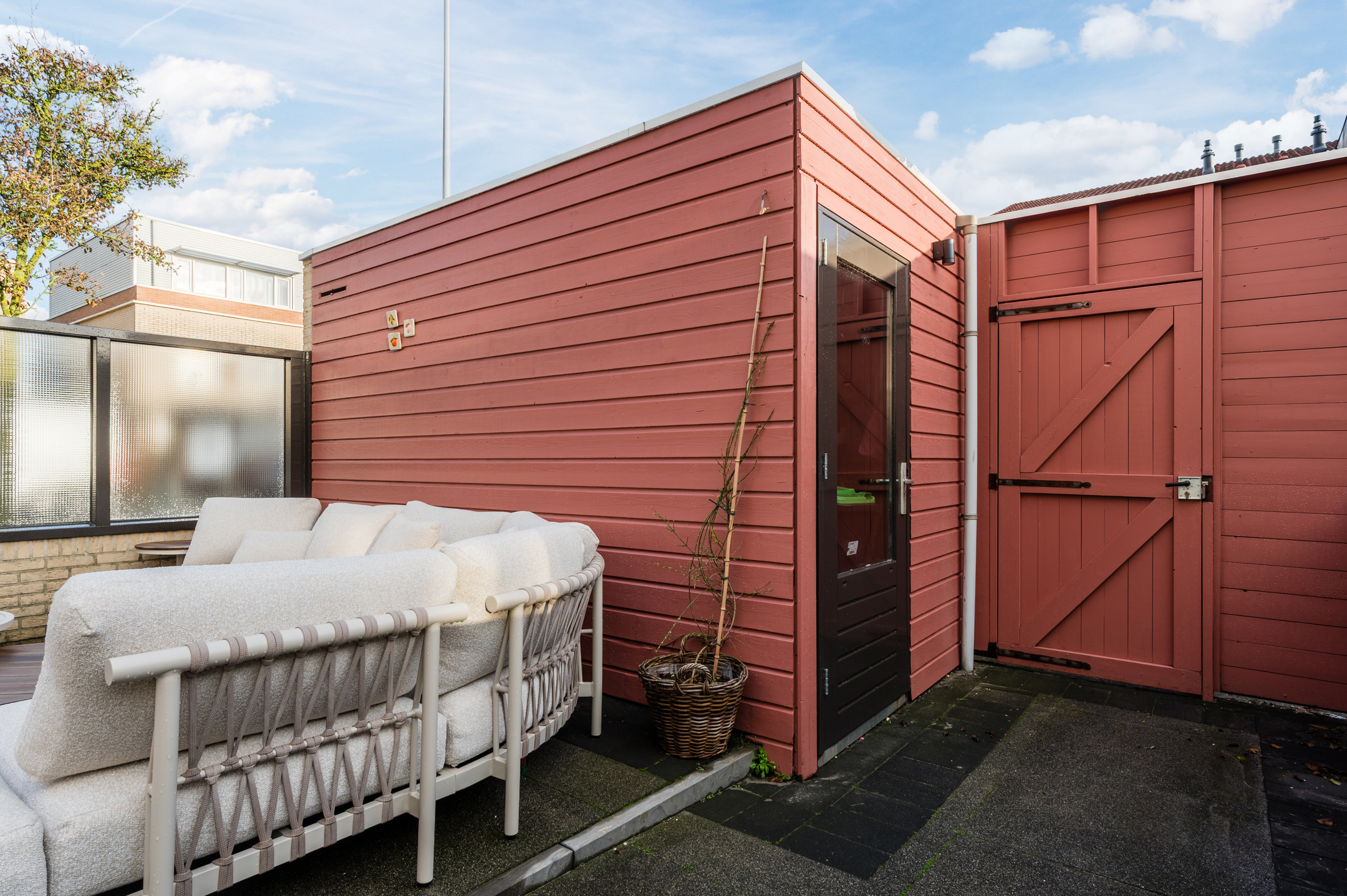 Aan de achterzijde van de woning bevindt zich een zeer diepe achtertuin met achterom en een houten berging (voorzien van elektra). De tuin is sfeervol ingericht en u kunt hier tot in de laat in de dag heerlijk genieten van de zon!