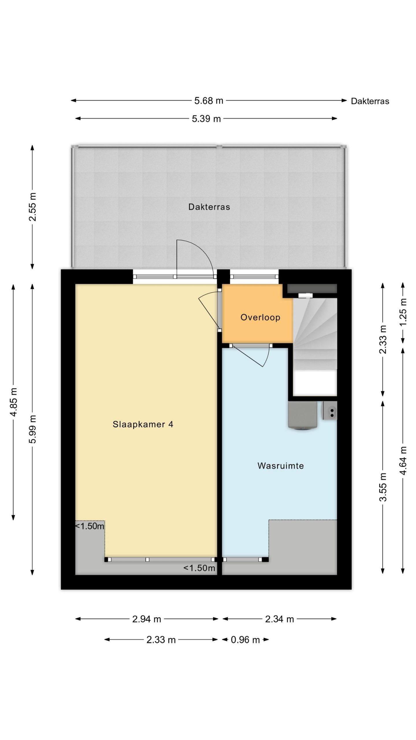 Via een vaste trap komt u op de zolderverdieping. Hier bevinden zich 2 ruime kamers. De eerste kamer is voorzien van een was/droogmachine aansluiting en cv-ketel (2014). De tweede kamer met dakkapel is een heerlijk ruime slaapkamer. Vanaf de overloop heeft u tevens toegang tot een zeer ruim dakterras.