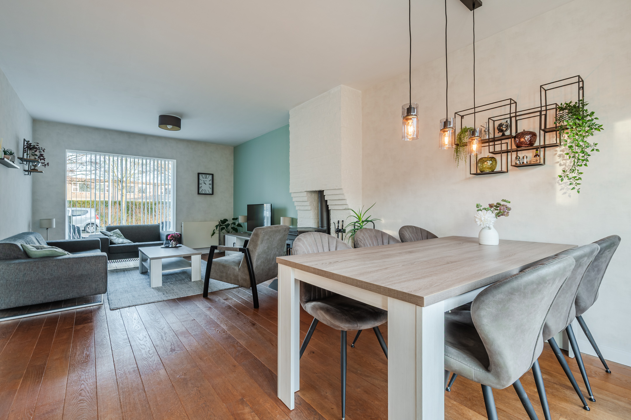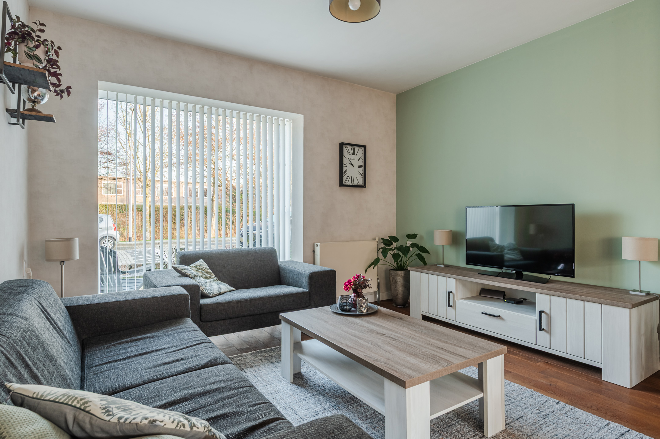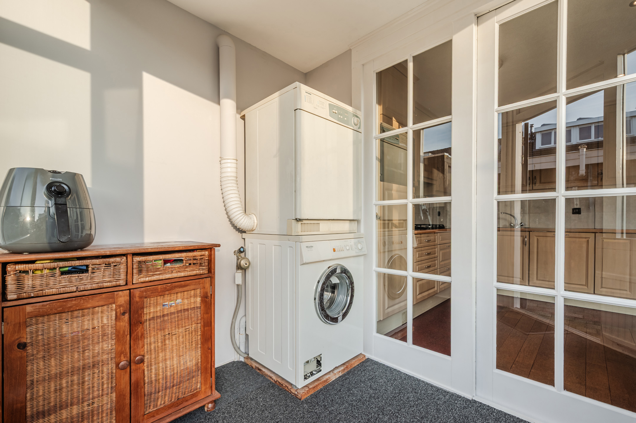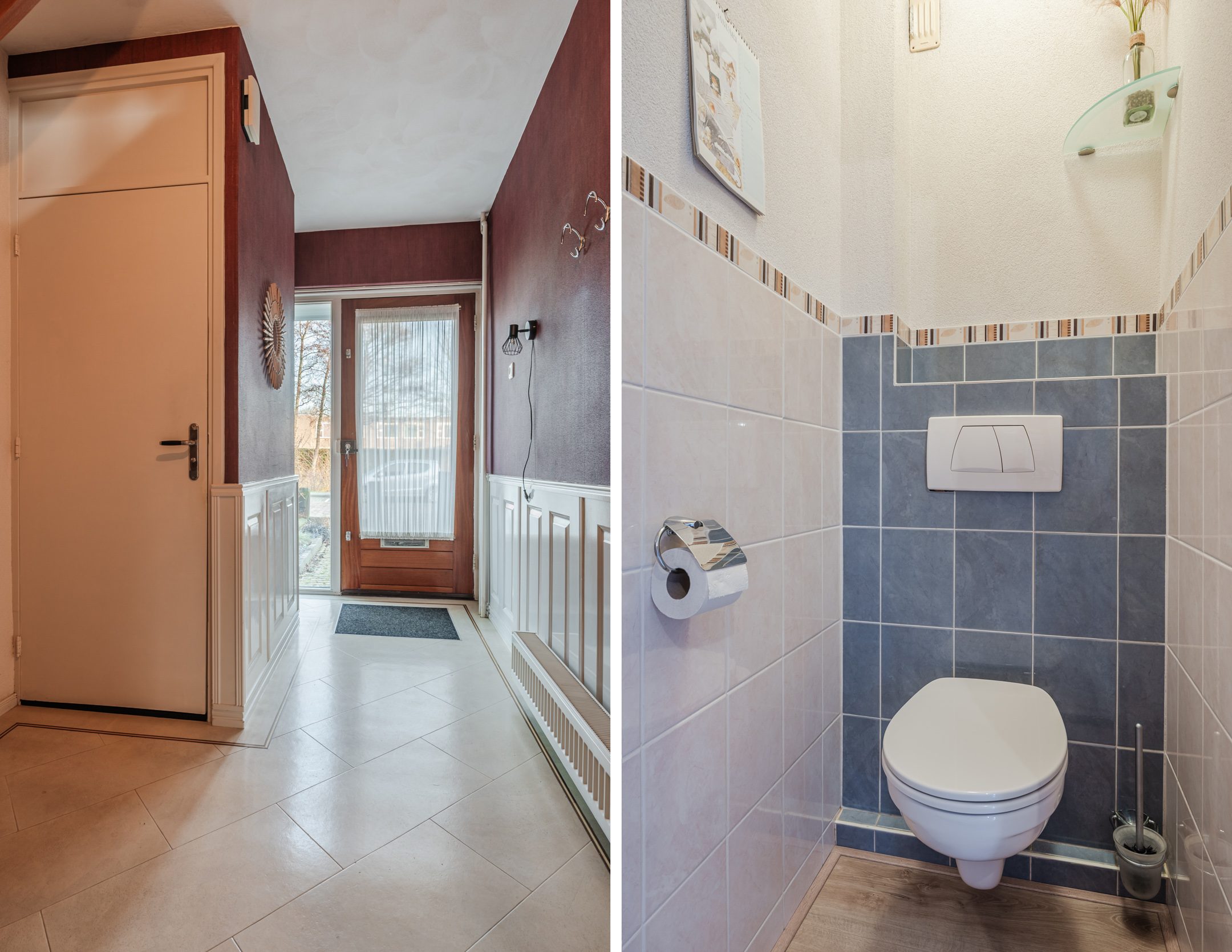 Via de voortuin komt u binnen in de ruime entree met toilet en garderobe. De lichte doorzonwoonkamer geeft direct een warm en huiselijk gevoel, versterkt door de fraaie houten vloer en de sfeervolle houtkachel. De openslaande deuren aan de achterzijde maken de tuin tot een verlengstuk van de woonkamer. In de zomermaanden zorgt het zonnescherm voor aangename schaduw. De open keuken is voorzien van diverse inbouwapparatuur en staat in verbinding met de praktische bijkeuken, waar aansluitingen voor wasmachine en droger aanwezig zijn.