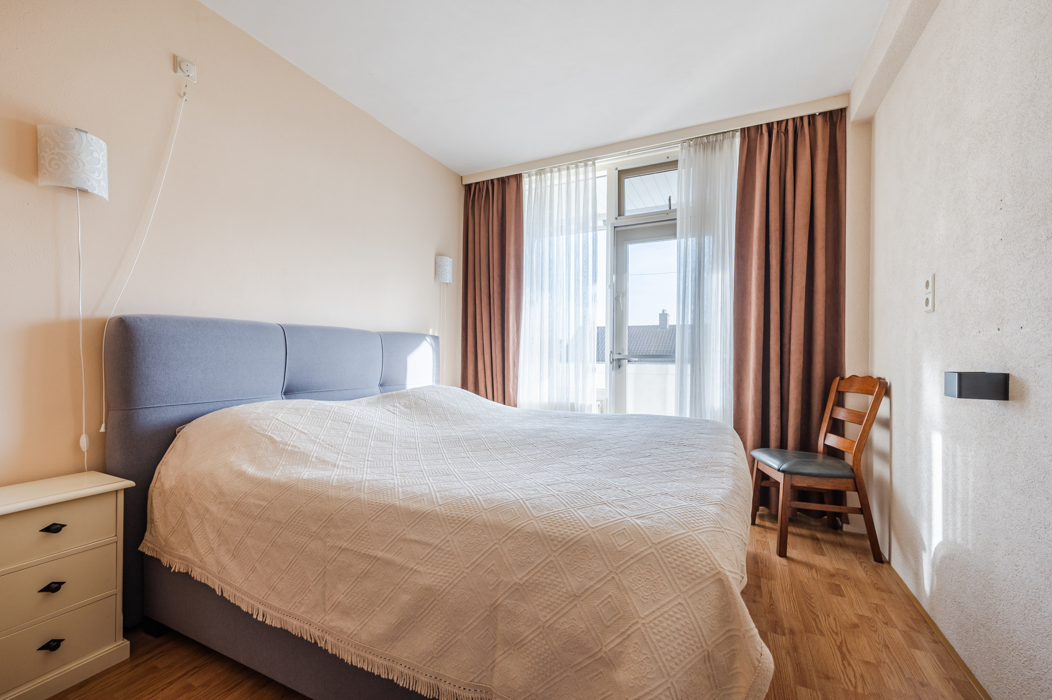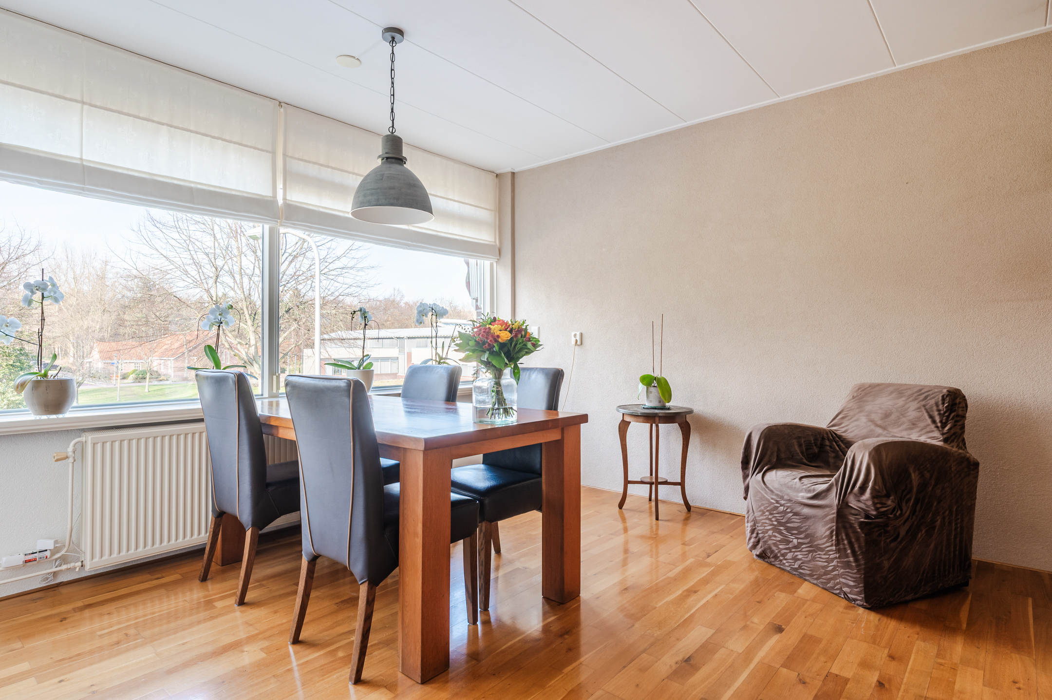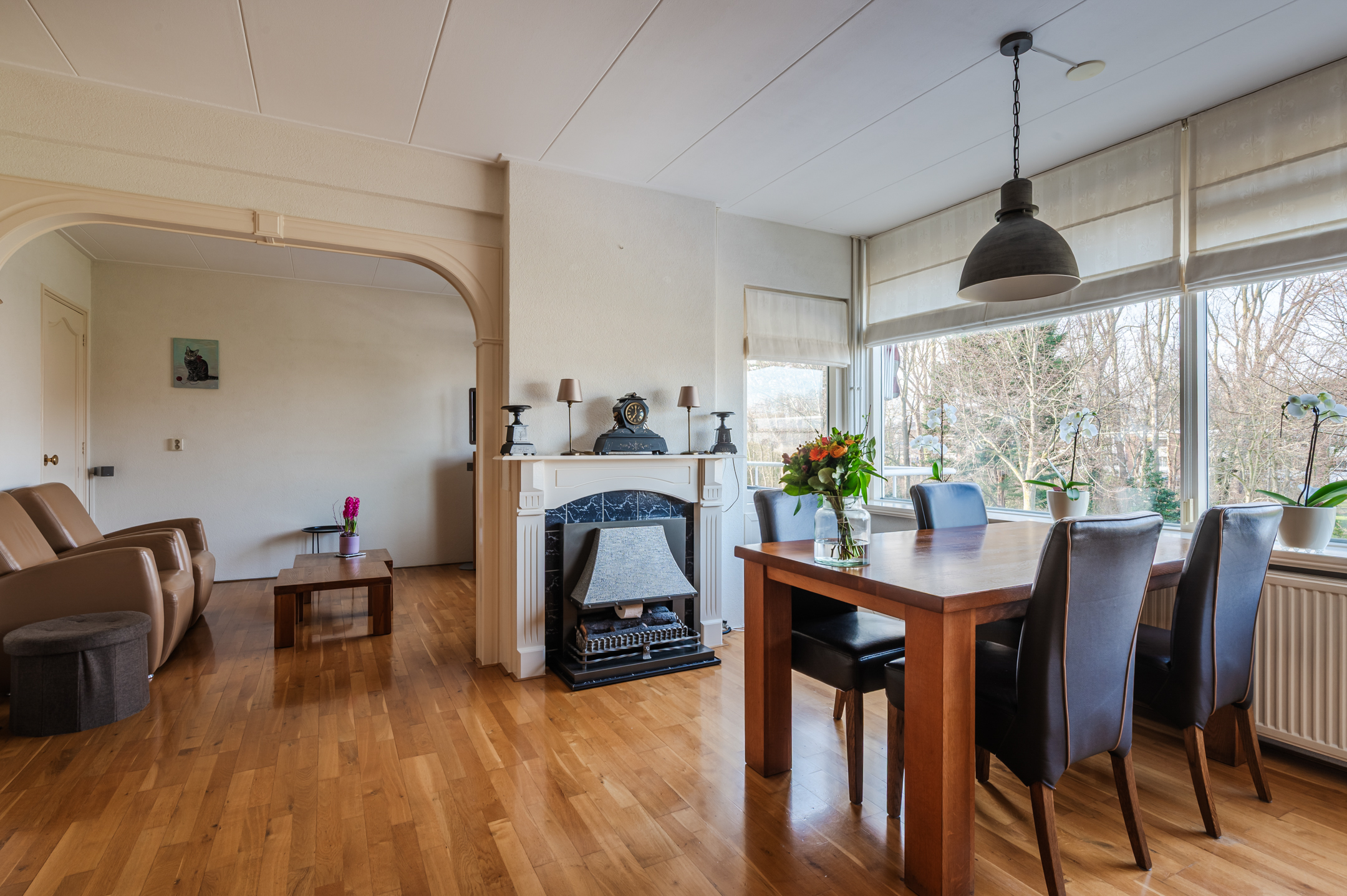 De royale woonkamer is gelegen aan de voorzijde van de woning en biedt een vrij uitzicht richting het park. Ook aan deze zijde is een balkon aanwezig. Tevens beschikt de woonkamer over een vaste kast met toegang tot de ruime vliering.