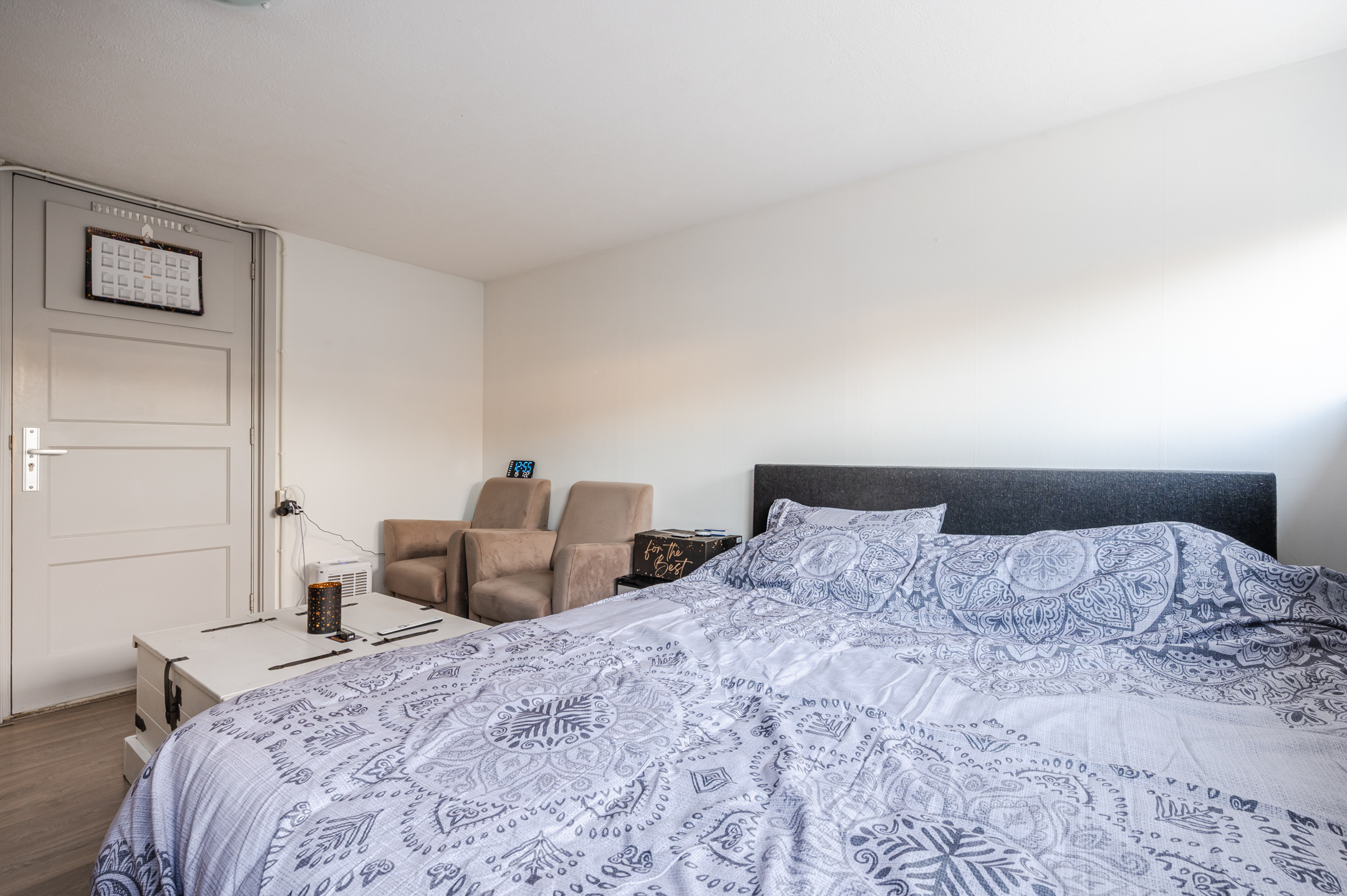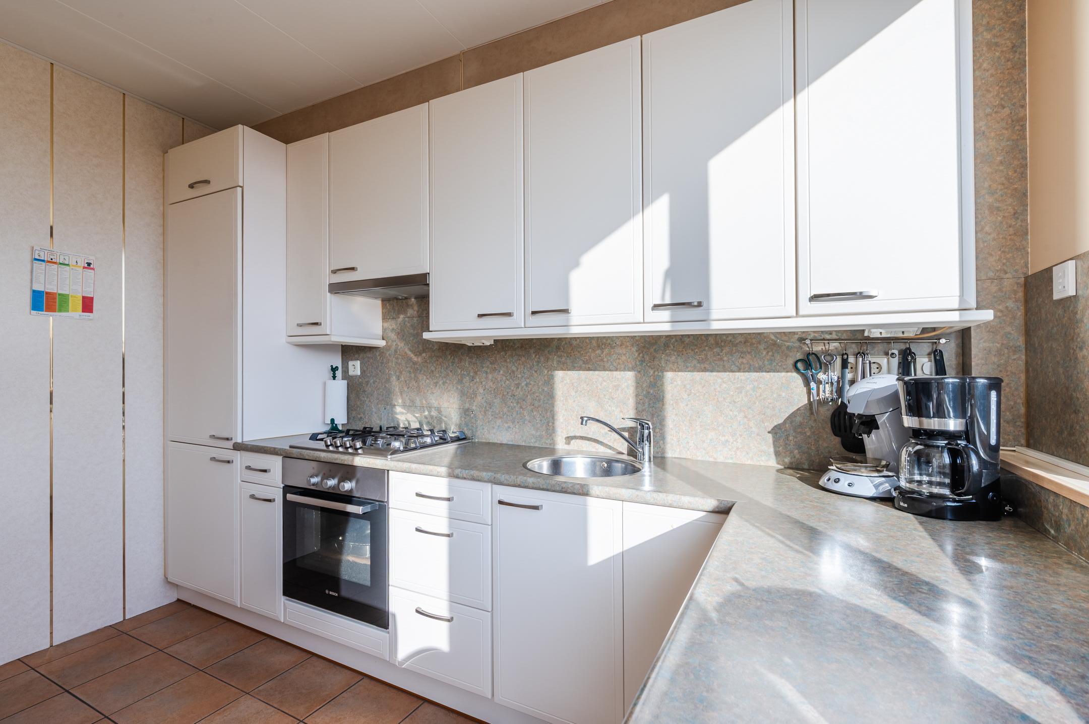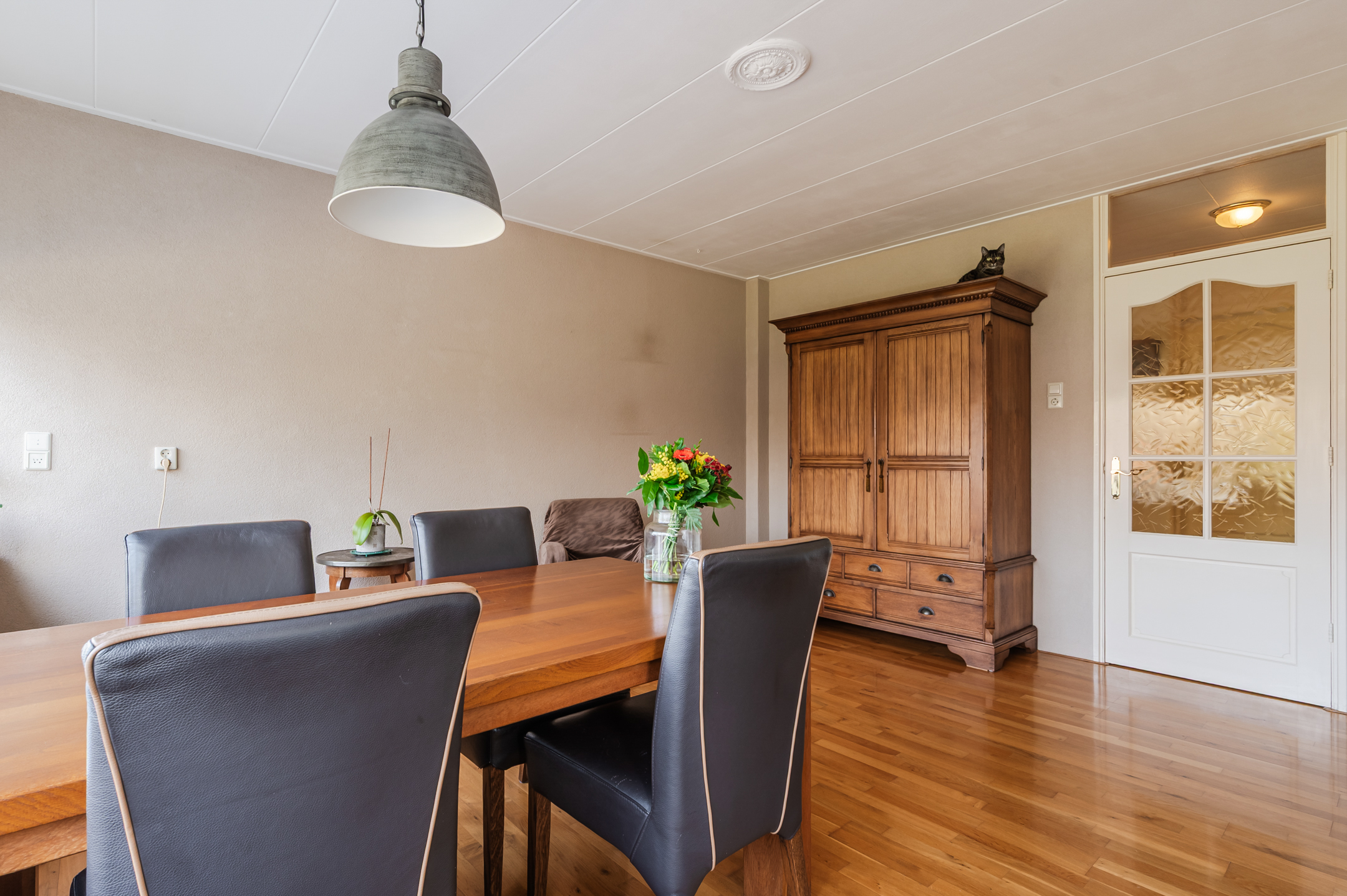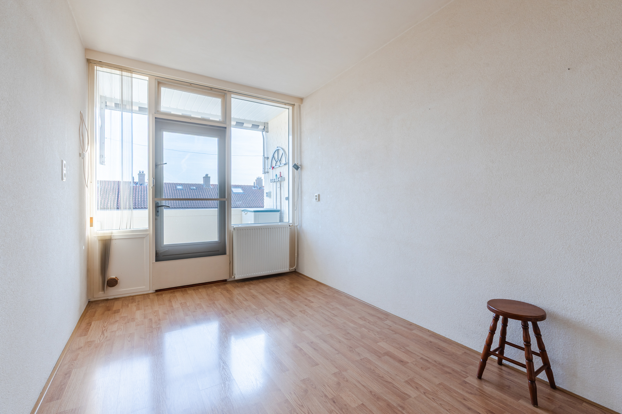 De royale woonkamer is gelegen aan de voorzijde van de woning en biedt een vrij uitzicht richting het park. Ook aan deze zijde is een balkon aanwezig. Tevens beschikt de woonkamer over een vaste kast met toegang tot de ruime vliering.