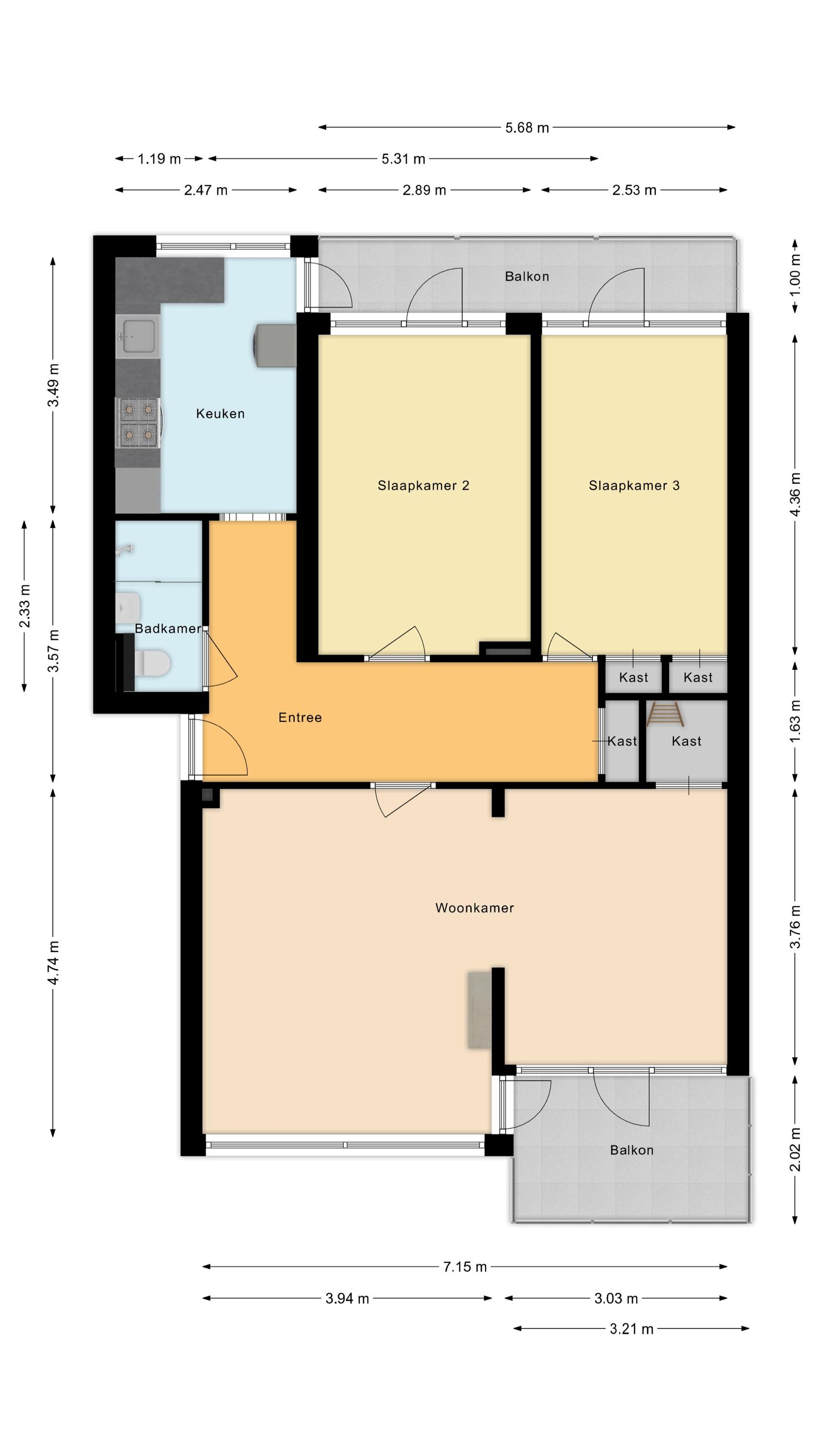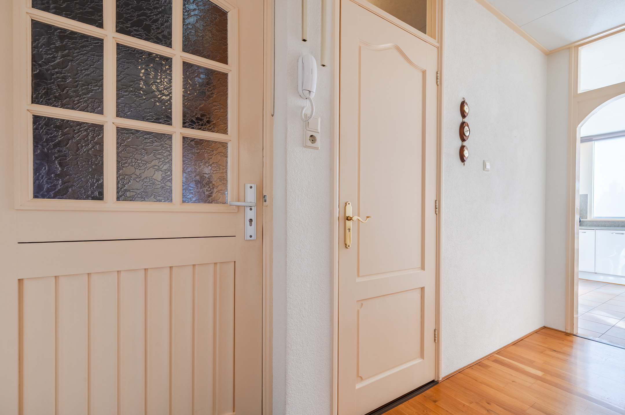 Entree, ruime hal met toilet en nette badkamer voorzien van douche en wastafel. Aan de achterzijde bevindt zich de dichte keuken met toegang tot een breed balkon. De keuken is van alle gemakken voorzien en beschikt over voldoende kastruimte. De twee slaapkamers liggen eveneens aan de achterzijde en bieden beide toegang tot het balkon.