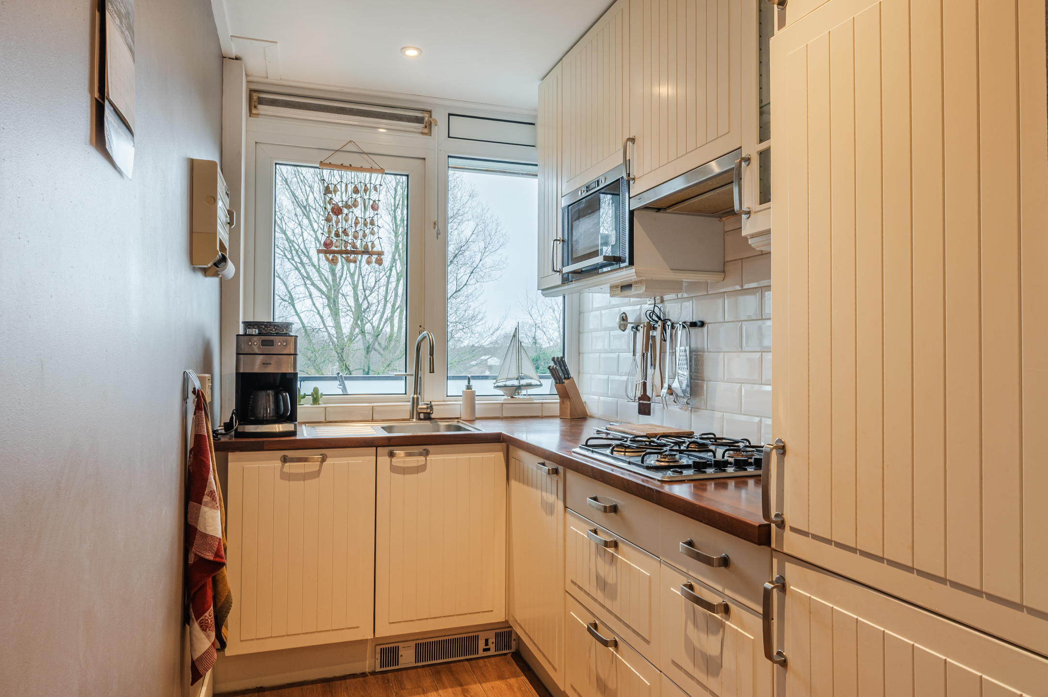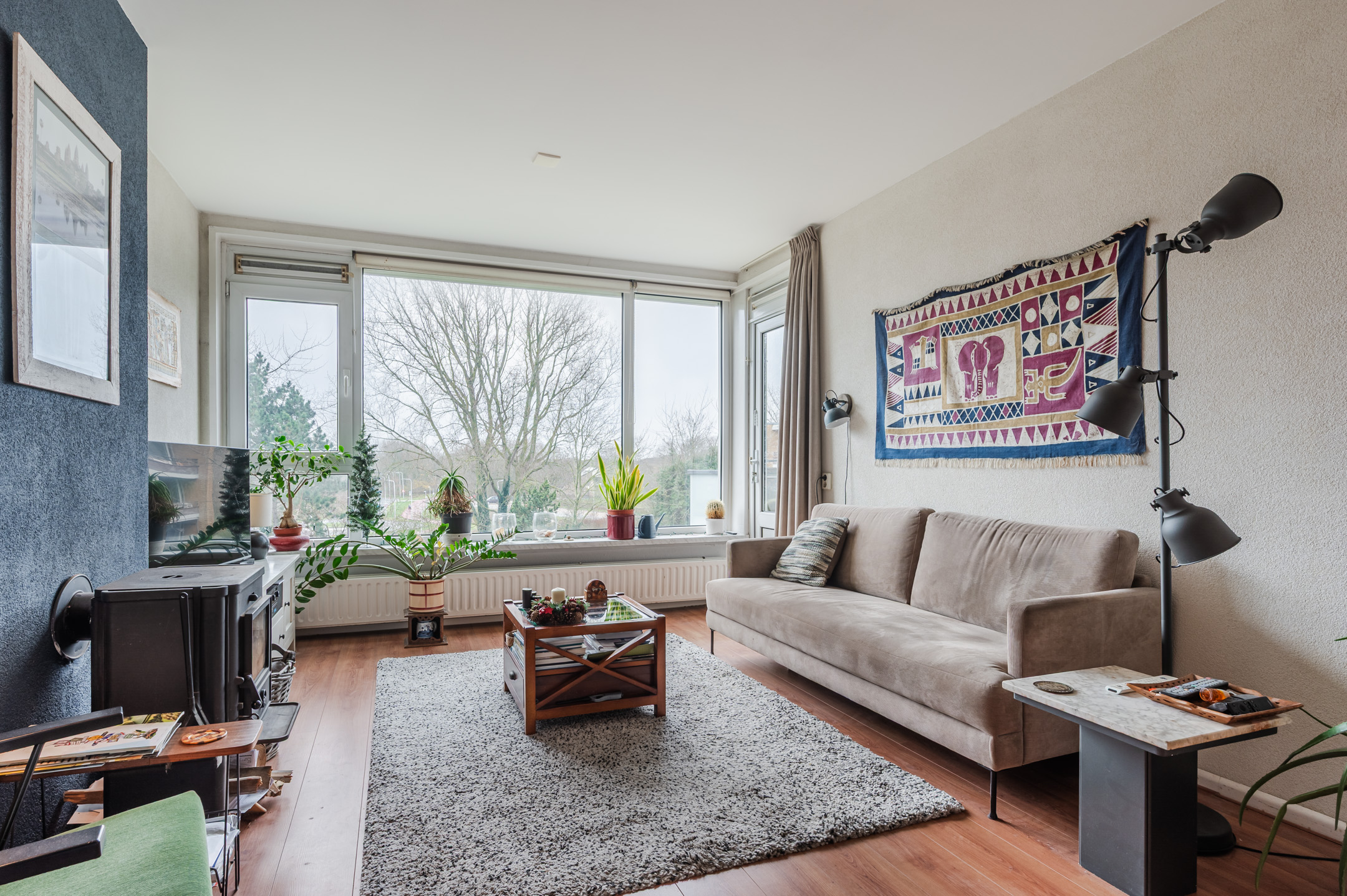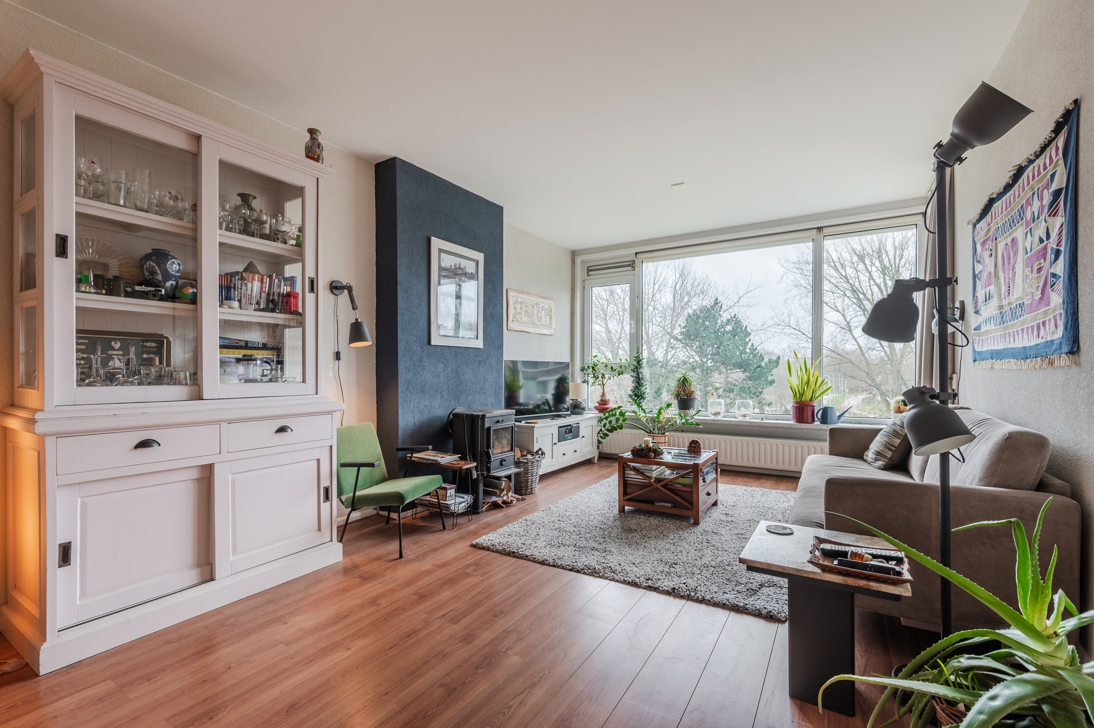 Via de afgesloten entree met bellentableau bereikt u het appartement. Bij binnenkomst komt u in een royale hal. De lichte woonkamer biedt een vrij uitzicht, beschikt over een sfeervolle houtkachel en geeft toegang tot het uitgebouwde balkon. De woning telt drie slaapkamers, waarvan één eventueel bij de woonkamer kan worden betrokken. De nette keuken is voorzien van diverse inbouwapparatuur. Verder beschikt het appartement over een moderne badkamer met douche en wastafelmeubel, een separaat toilet en een praktische bergkast met cv-opstelling en aansluiting voor de wasmachine.