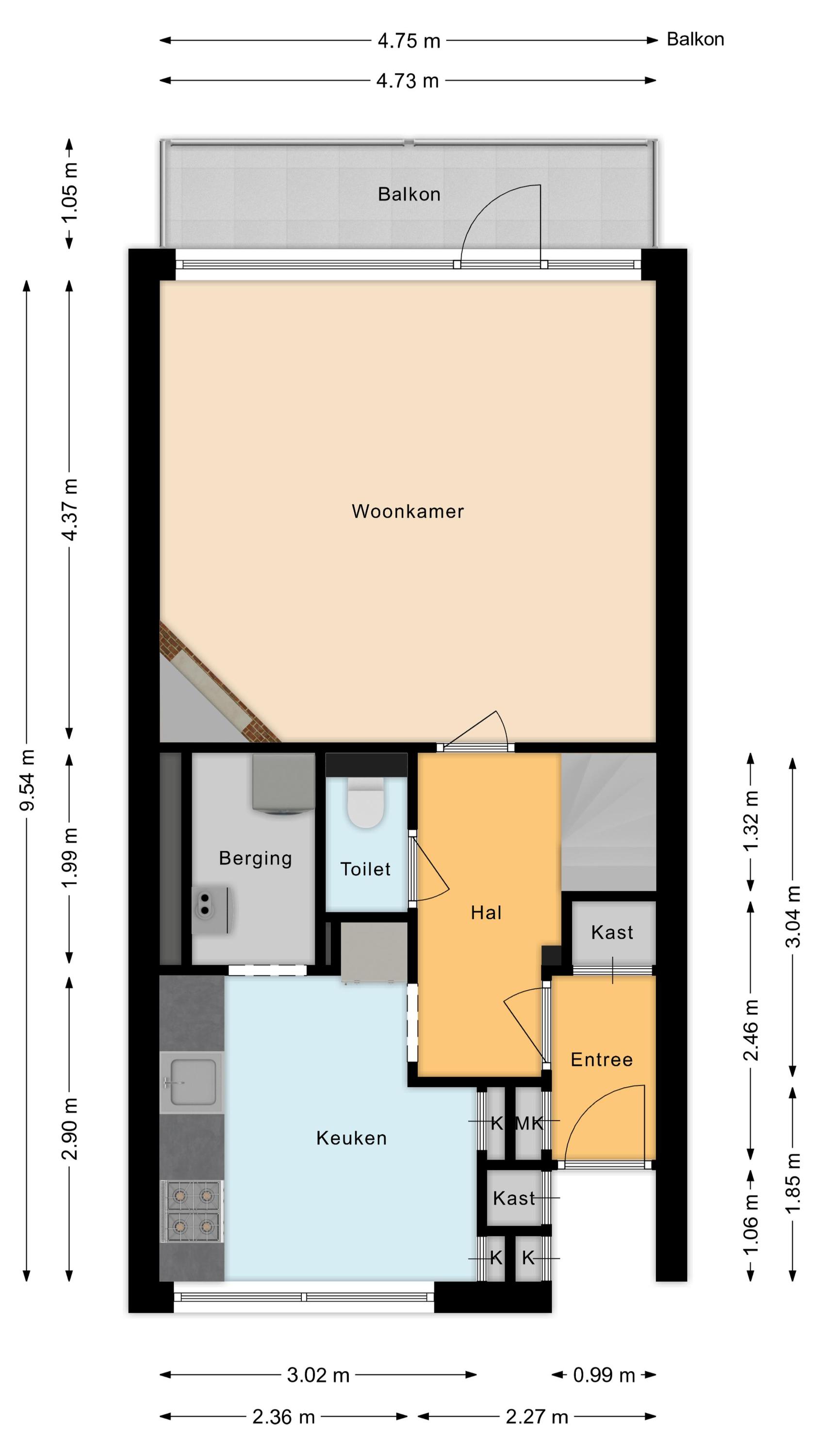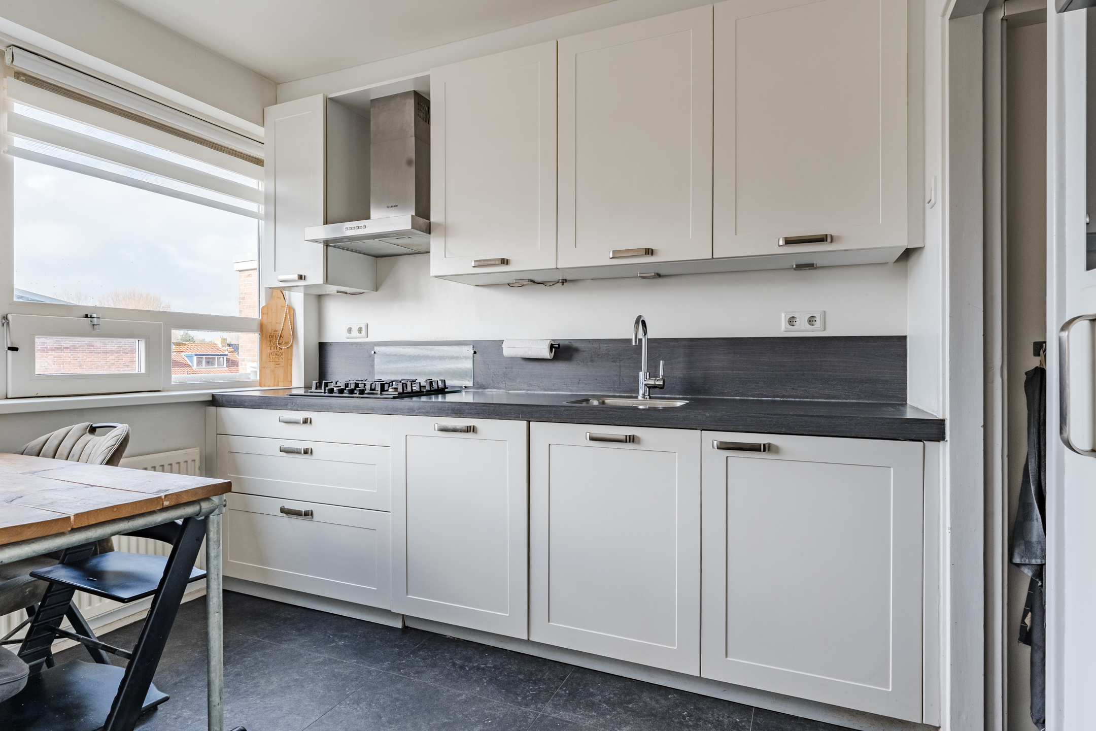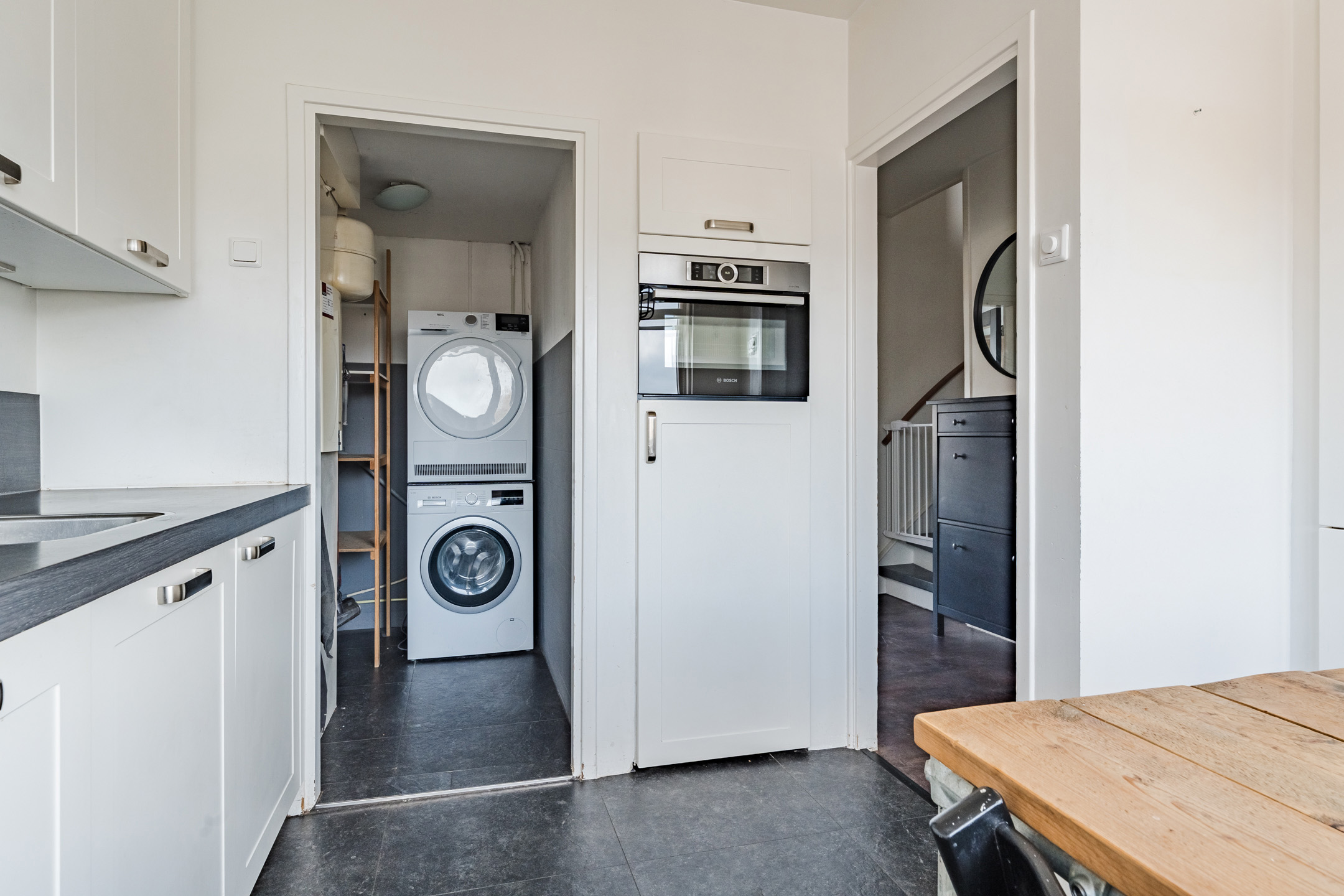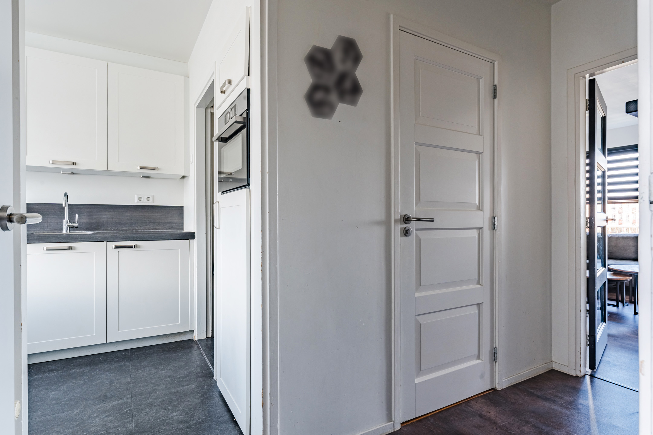 Via de galerij bereikt u de entree van de woning. Vanuit het tochtportaal met praktische garderobekast komt u in de hal met toilet. De woonkeuken bevindt zich aan de voorzijde van de woning. Deze nette, licht uitgevoerde keuken is voorzien van diverse inbouwapparatuur en biedt voldoende ruimte voor een eethoek. Aansluitend aan de keuken treft u een praktische bijkeuken met veel bergruimte, aansluitingen voor wasmachine en droger en de cv-ketelopstelling.