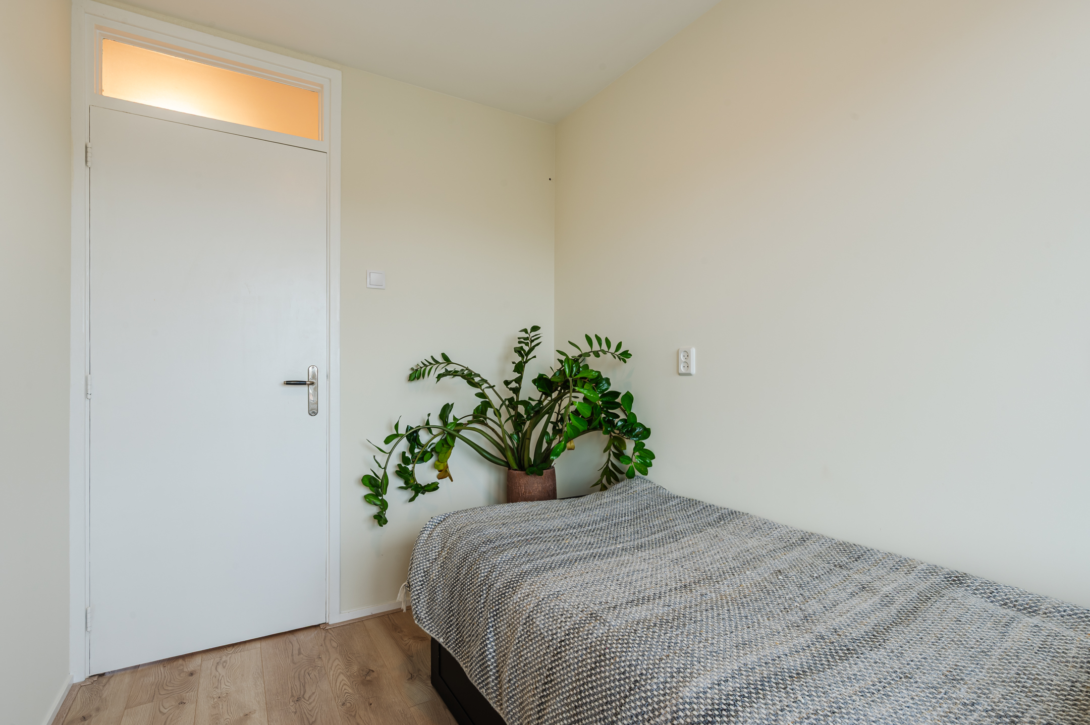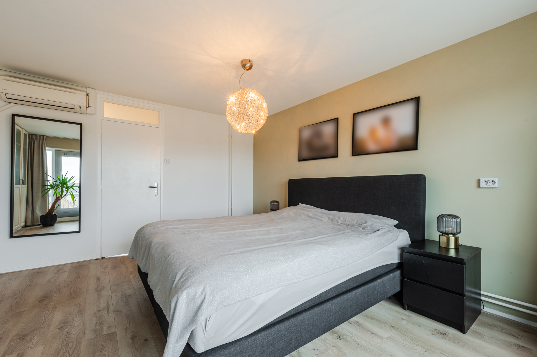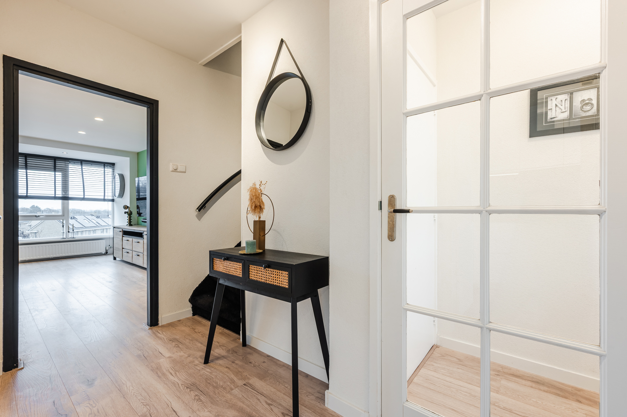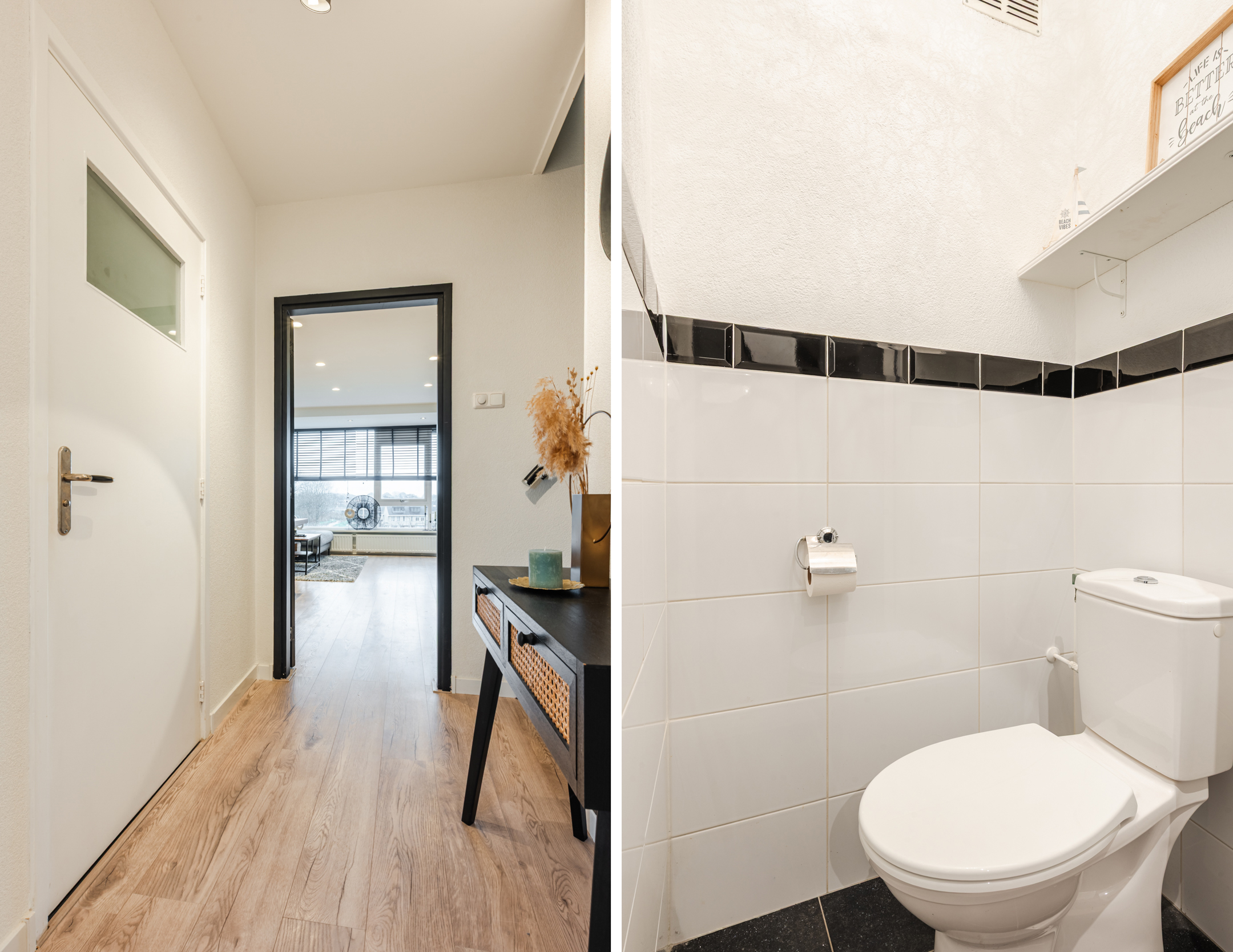 De ruime woonkeuken (2021) is gelegen aan de voorzijde van het appartement, voorzien van inbouwapparatuur en biedt toegang tot de bijkeuken met aansluitingen voor wasmachine en droger en de cv-installatie. De uitgebouwde woonkamer is dankzij de grote raampartij heerlijk licht en biedt een vrij uitzicht. De in het plafond verwerkte spots zorgen voor sfeervolle verlichting.