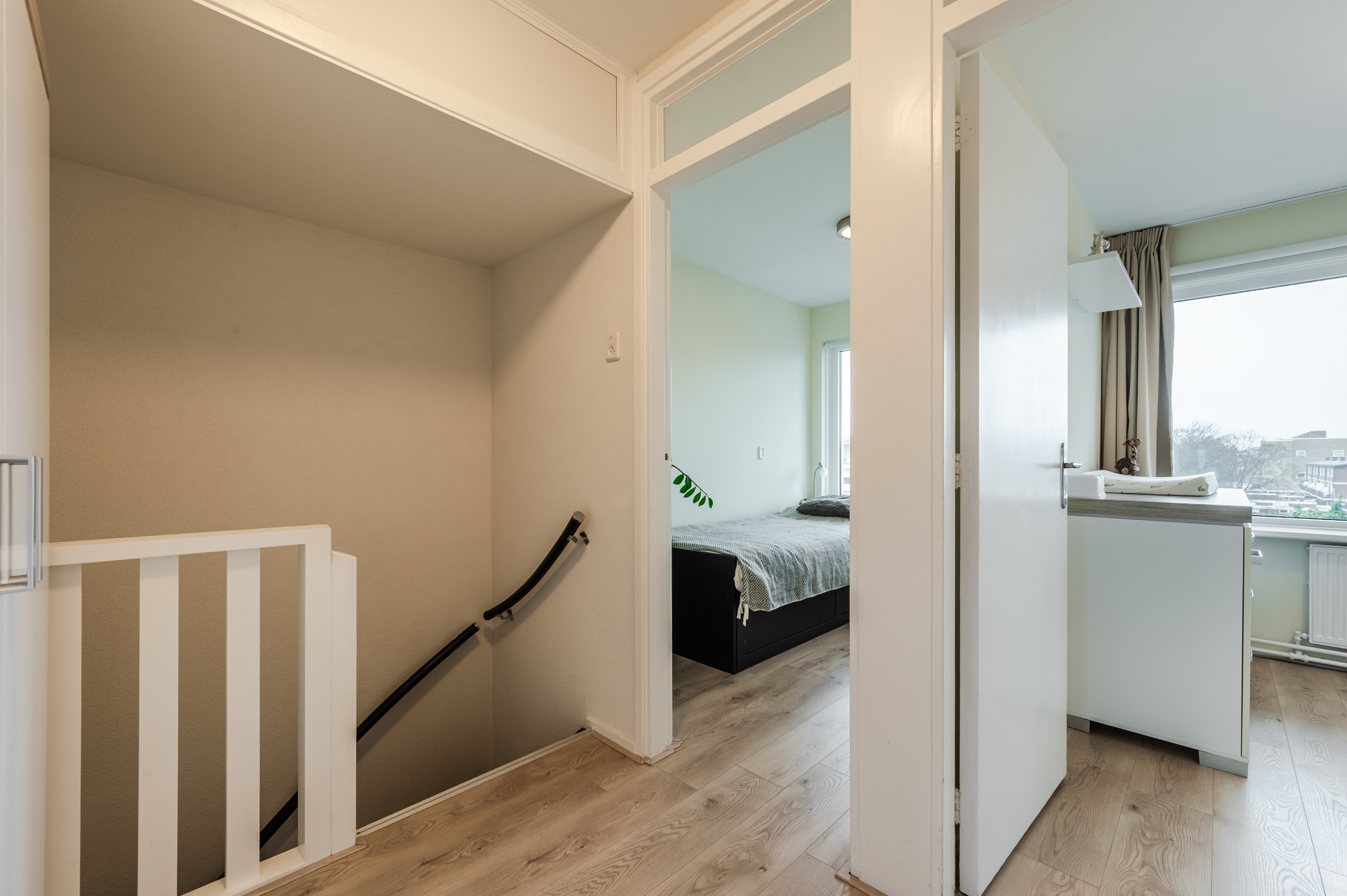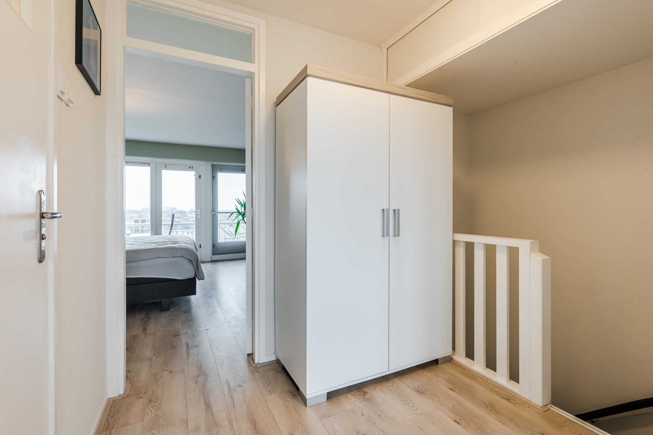 Tot in de puntjes verzorgde, ruime en lichte maisonnettewoning, gelegen op de derde en vierde woonlaag, met een uitgebouwde woonkamer en een schitterend vrij uitzicht.