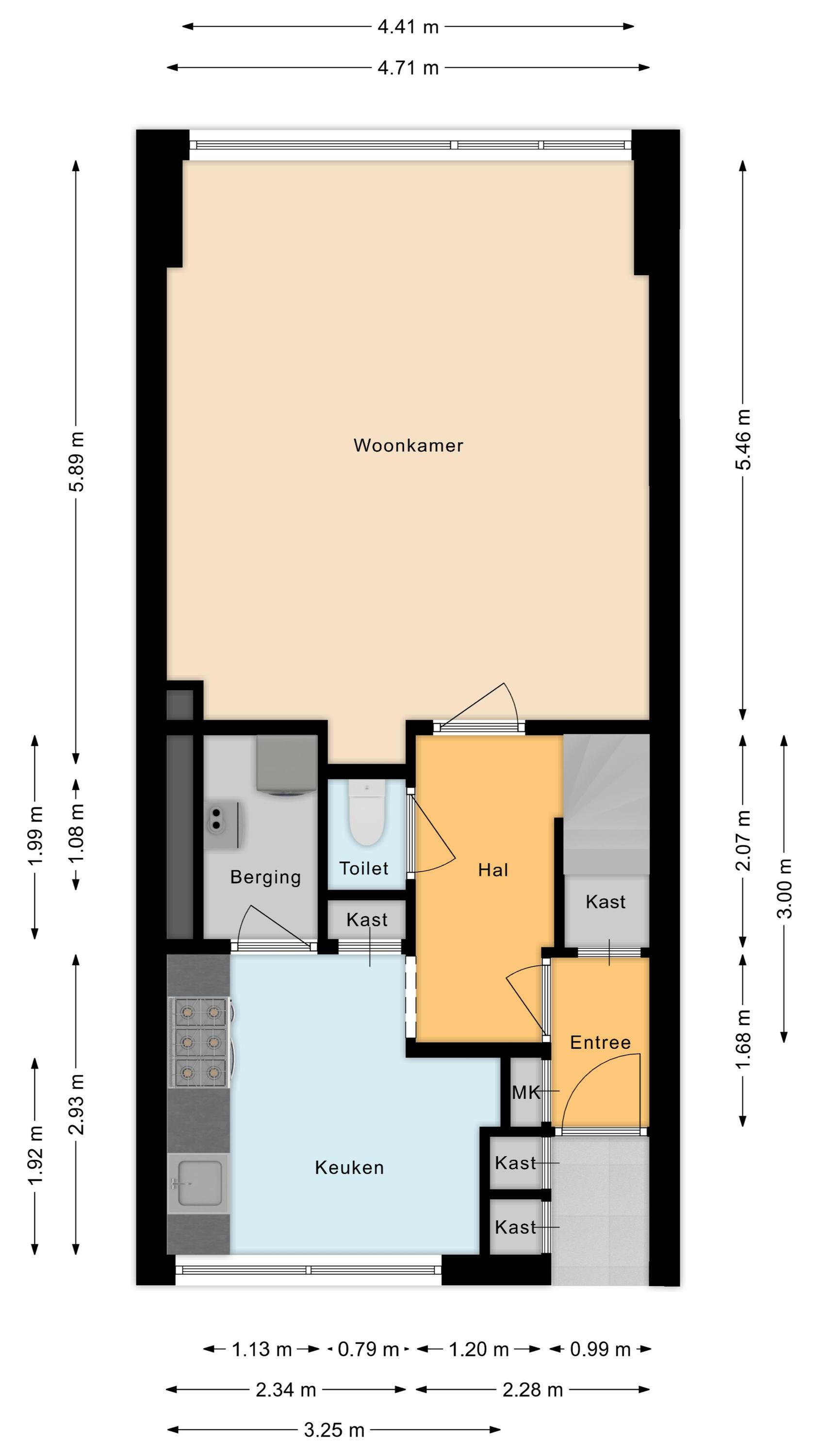 Via de galerij bereikt u de entree van de woning. Vanuit het tochtportaal met bergkast komt u in de hal.