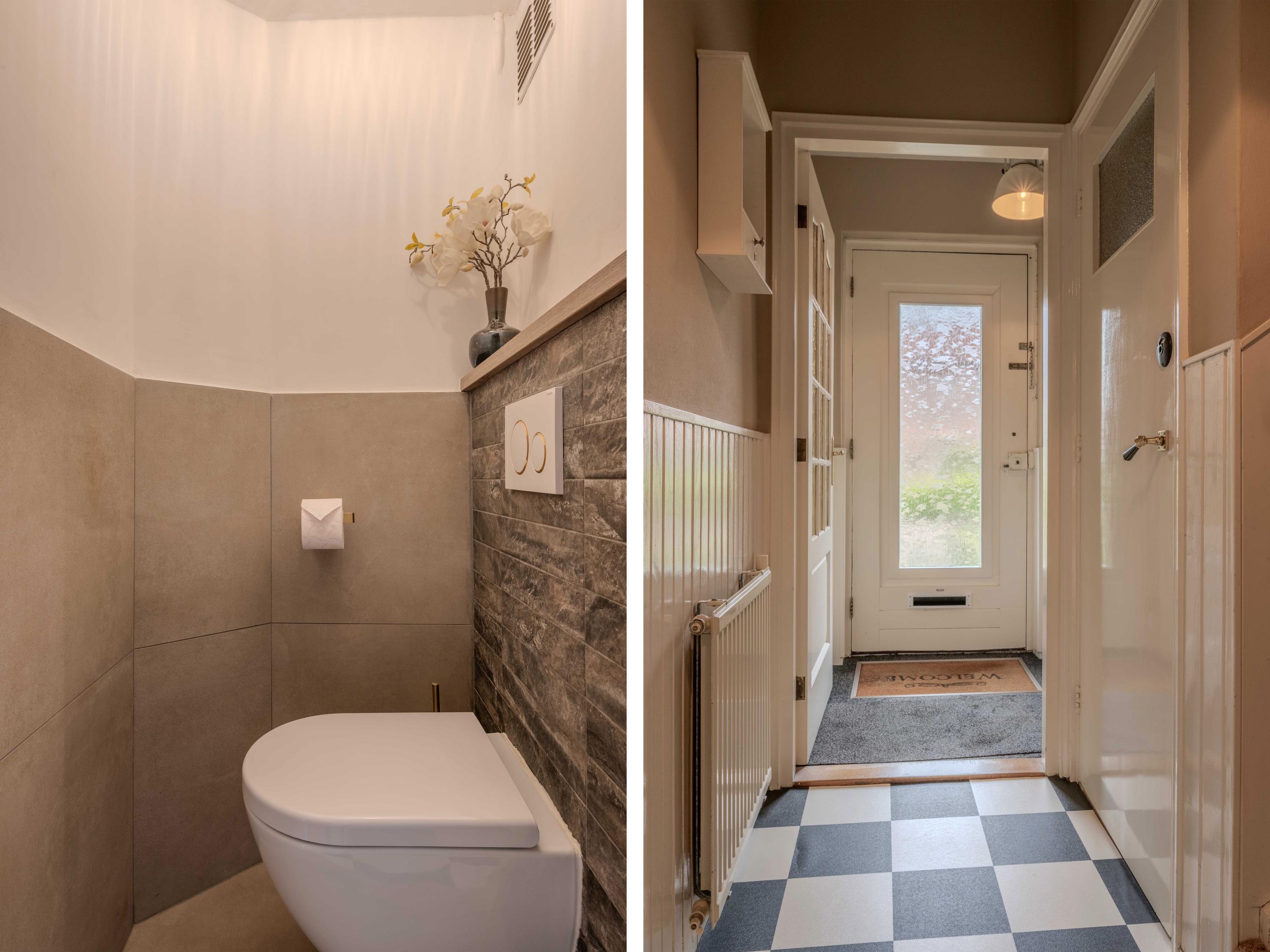 De woning wordt bereikt via de op het Zuiden gelegen tuin en daar vind u de volgende indeling: