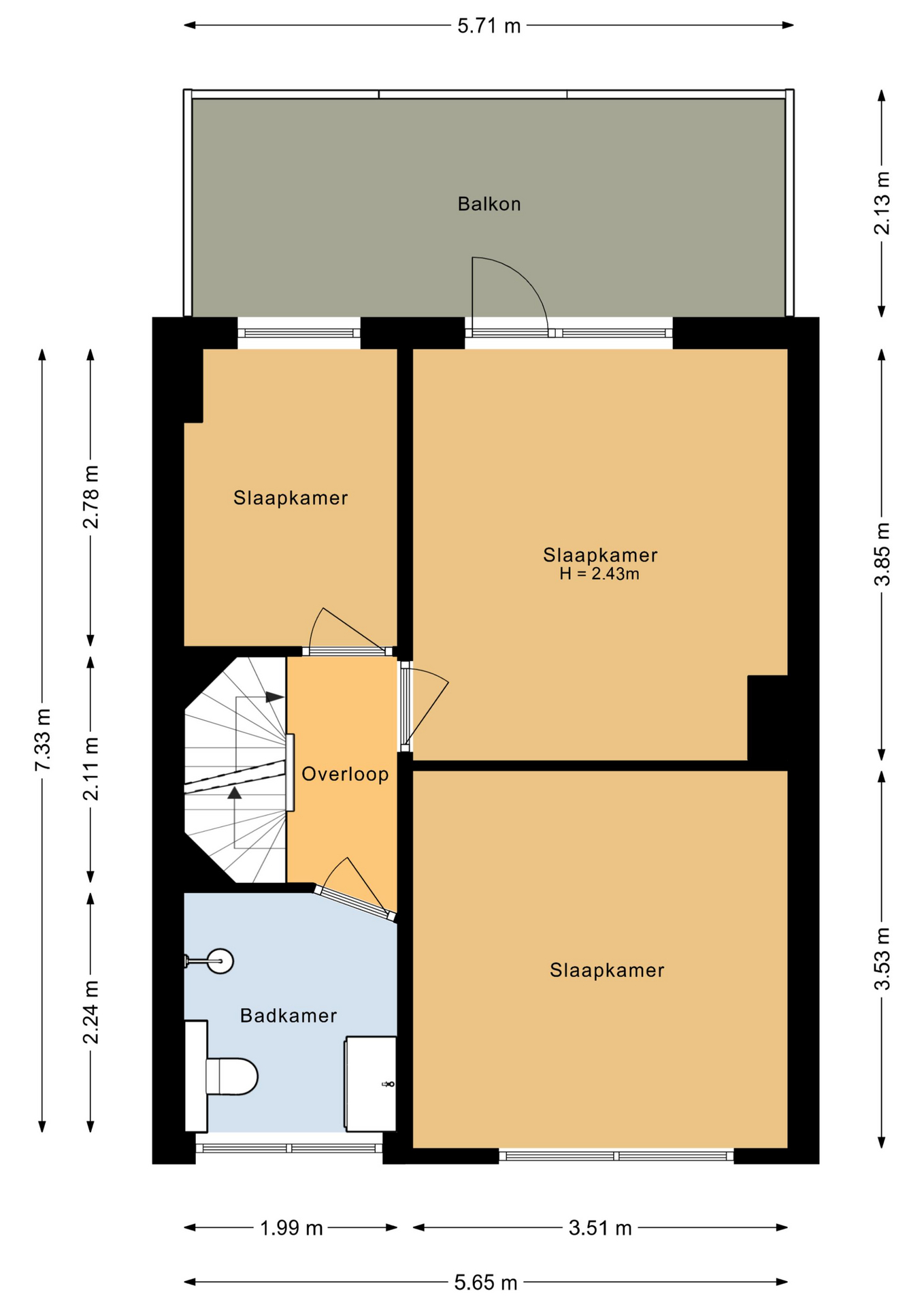 Via de vaste trap komt u op de verdieping. Vanaf de overloop zijn alle kamers bereikbaar. Aan de voorzijde van de woning bevindt zich de vernieuwde badkamer (2015) die is voorzien van een nette douche, toilet en wastafel. Verder zijn er nog drie nette slaapkamers, waarvan de ouderkamer aan de achterzijde toegang heeft tot het balkon.