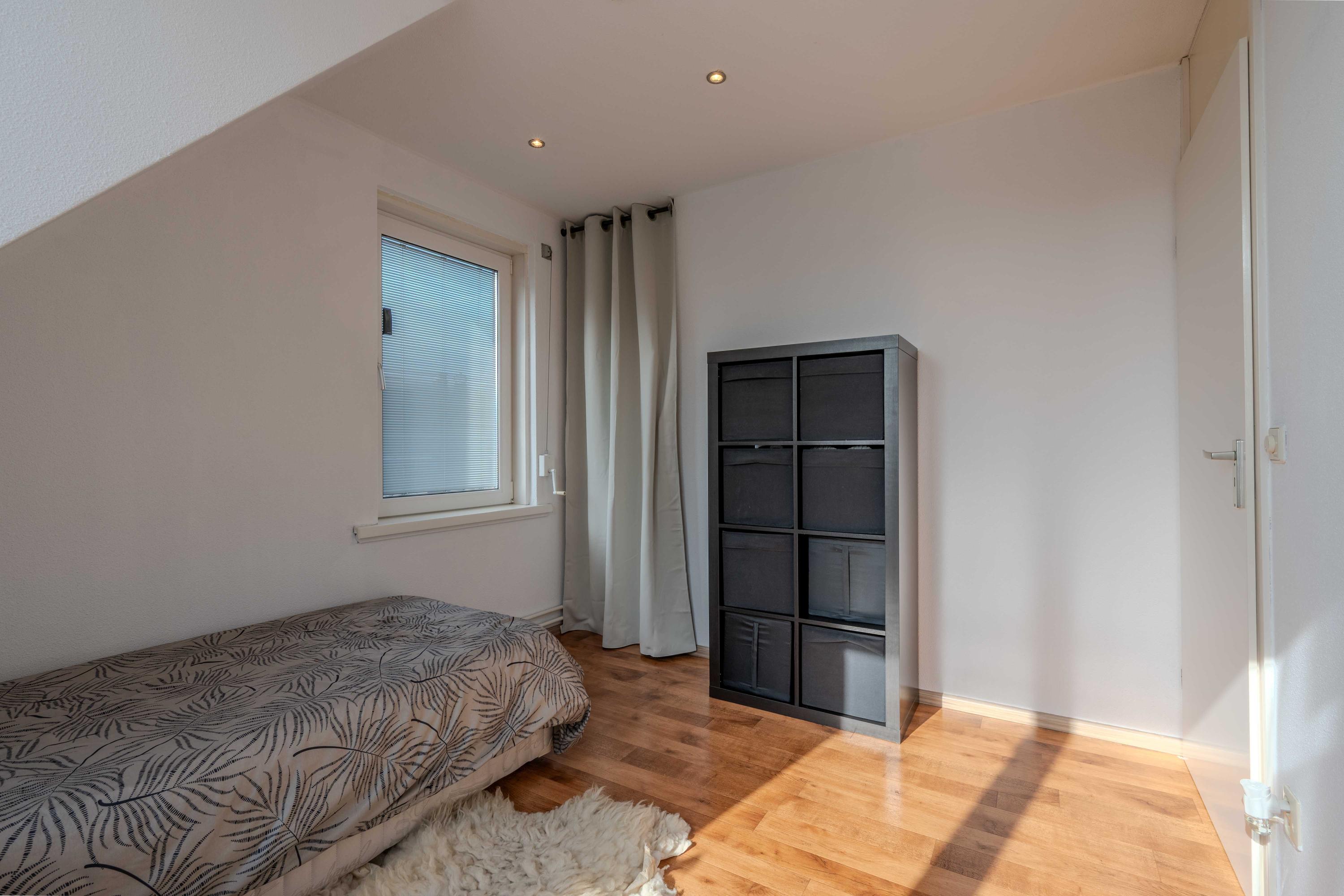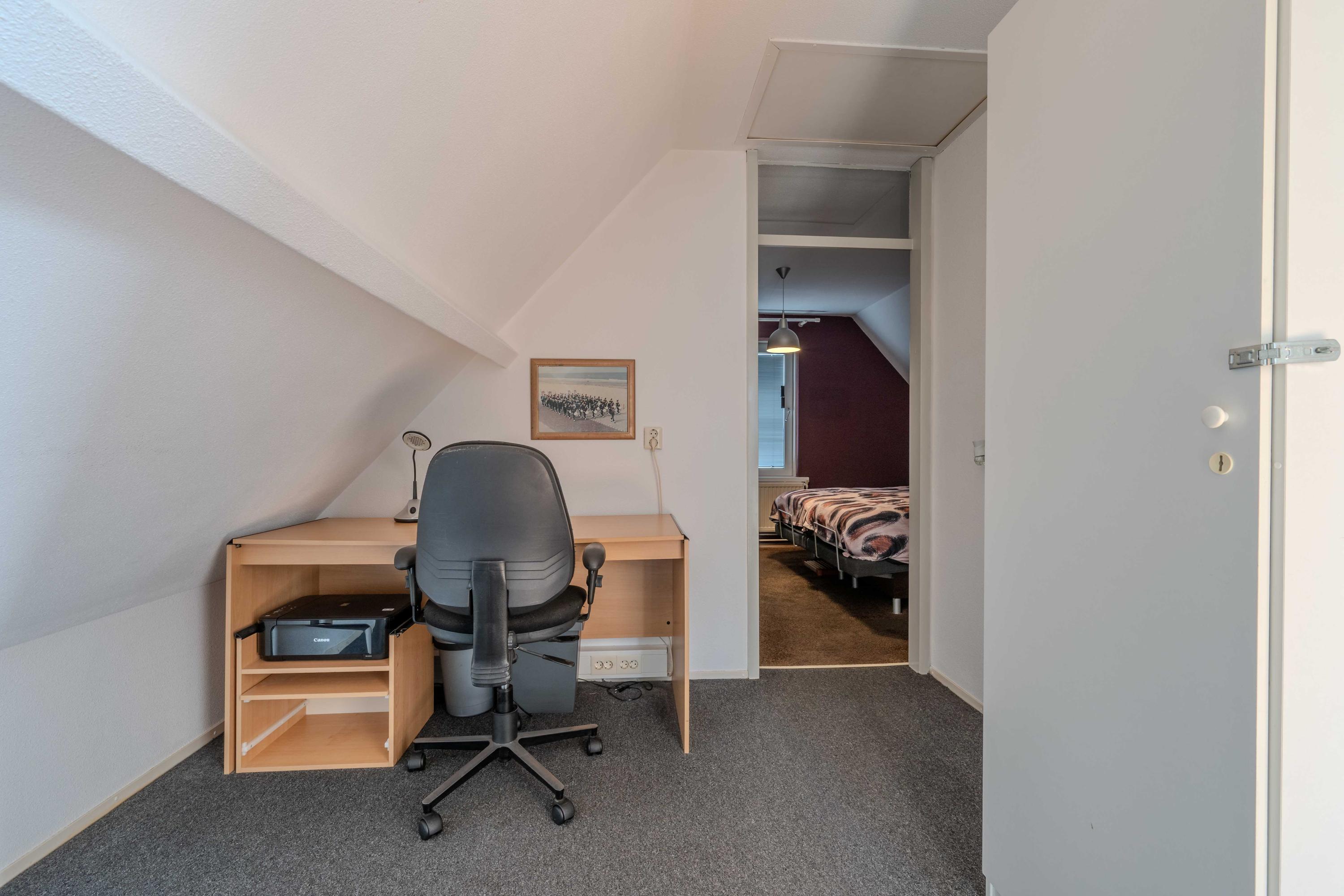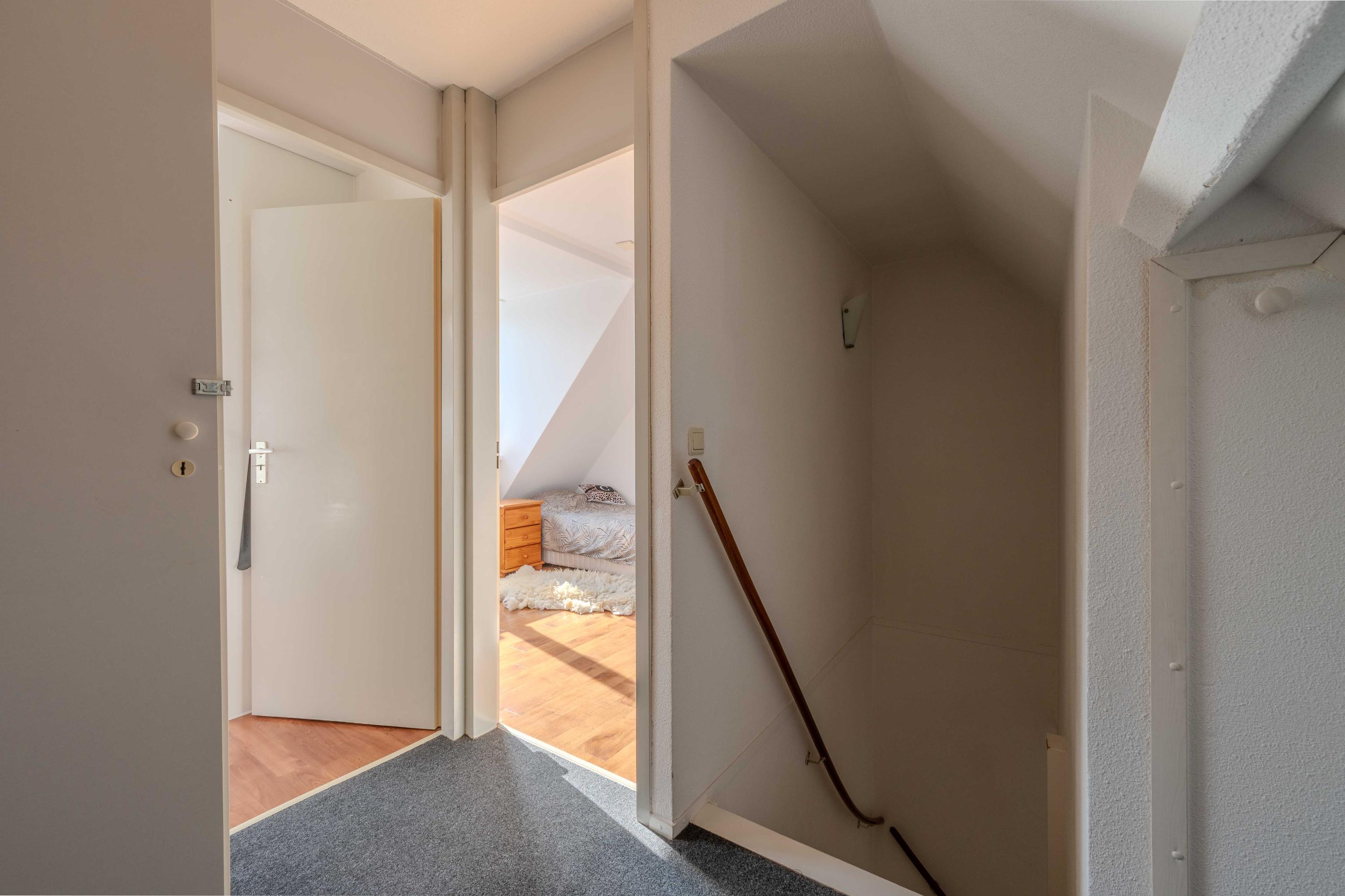 Via de vaste trap komt u op de ruime overloop. Hiervandaan heeft u toegang tot de drie slaapkamers en een extra bergruimte (met expansievat). De slaapkamer aan de voorzijde is voorzien van een rolluik en airconditioning.