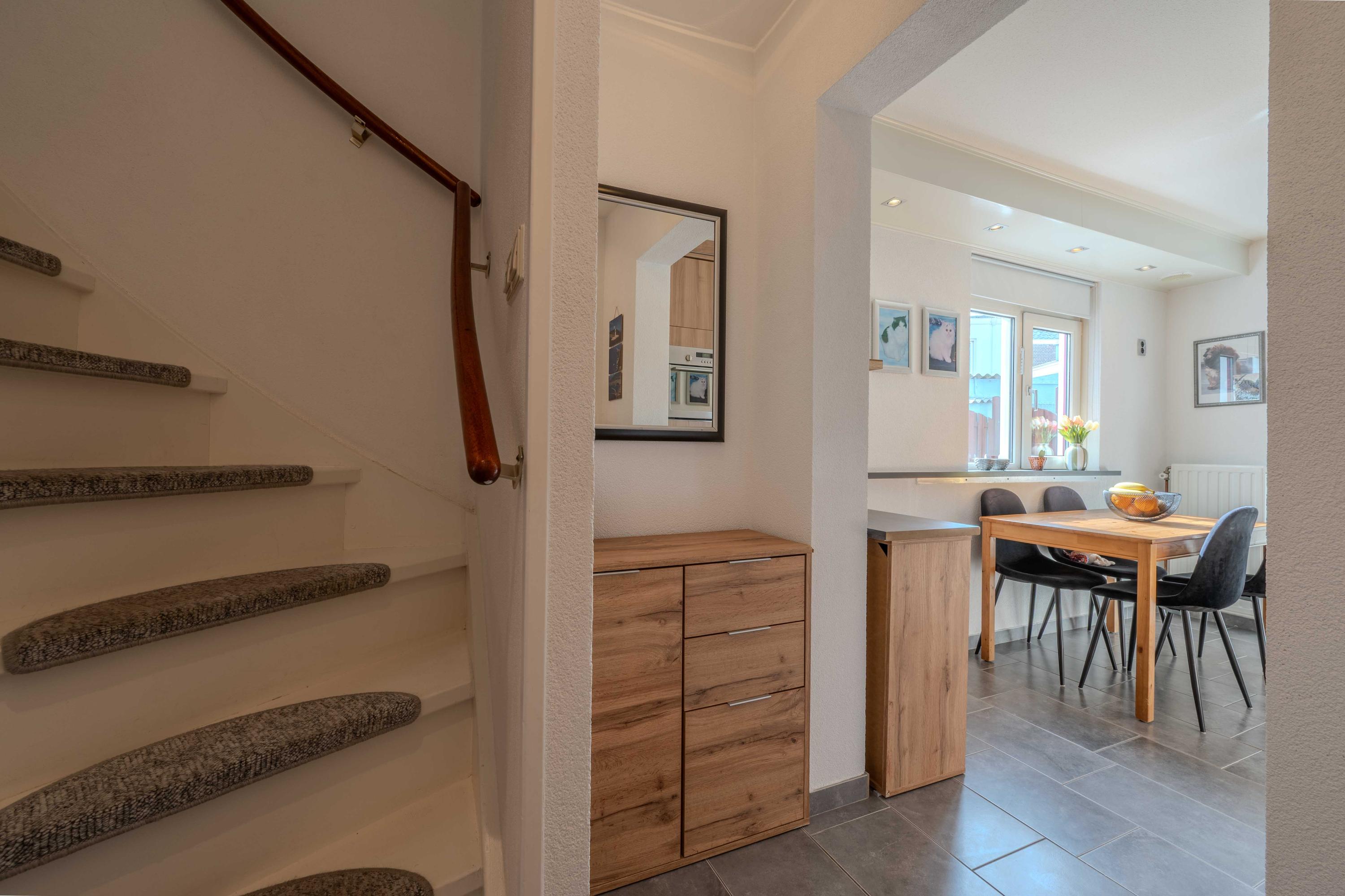 Via de entree komt u in de gang (voorzien van vloerverwarming). Hiervandaan heeft u toegang tot de woonkamer, de keuken en de trap naar de verdieping. De riante woonkamer is voorzien van een nette houten vloer en openslaande deuren naar de achtergelegen plaats.