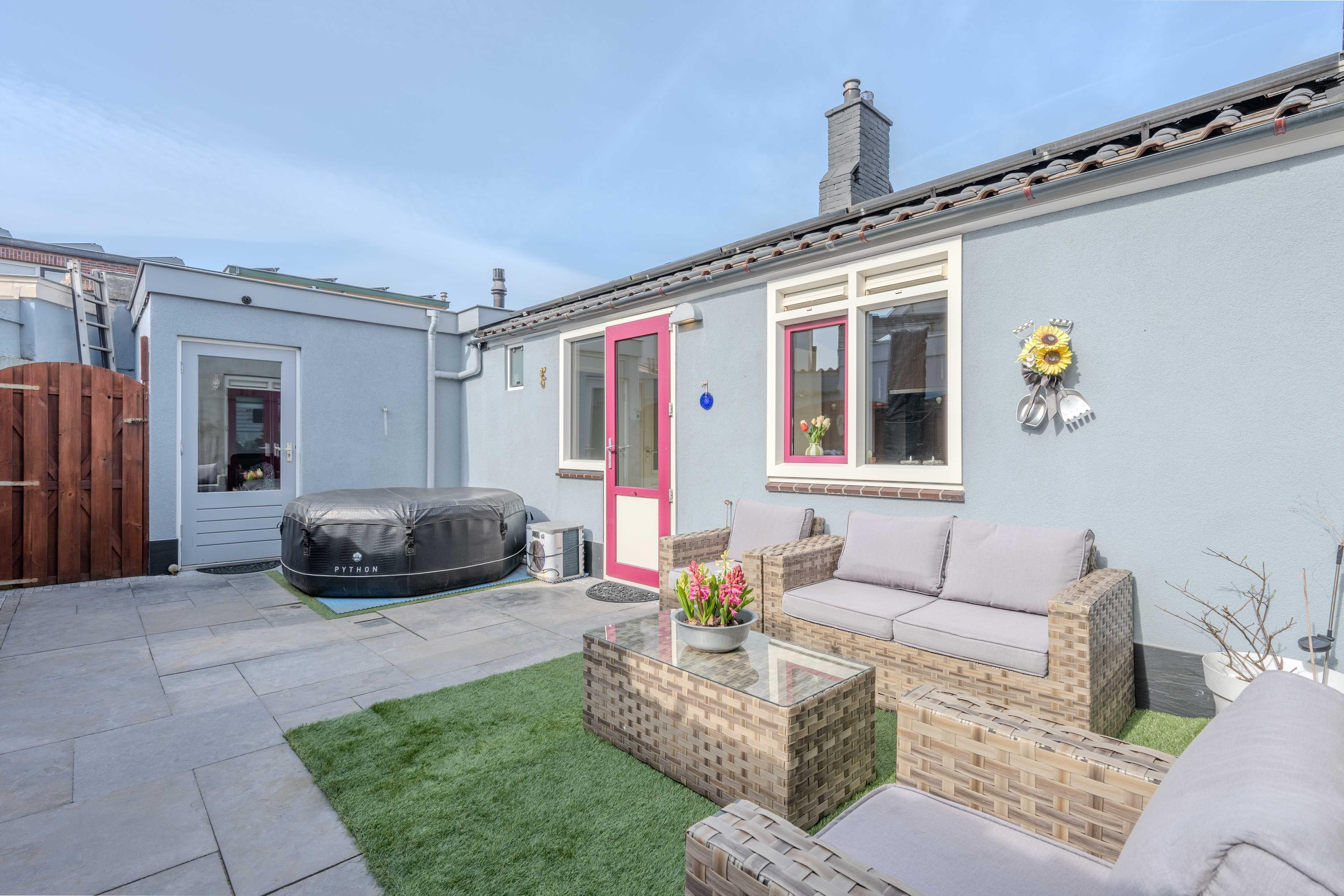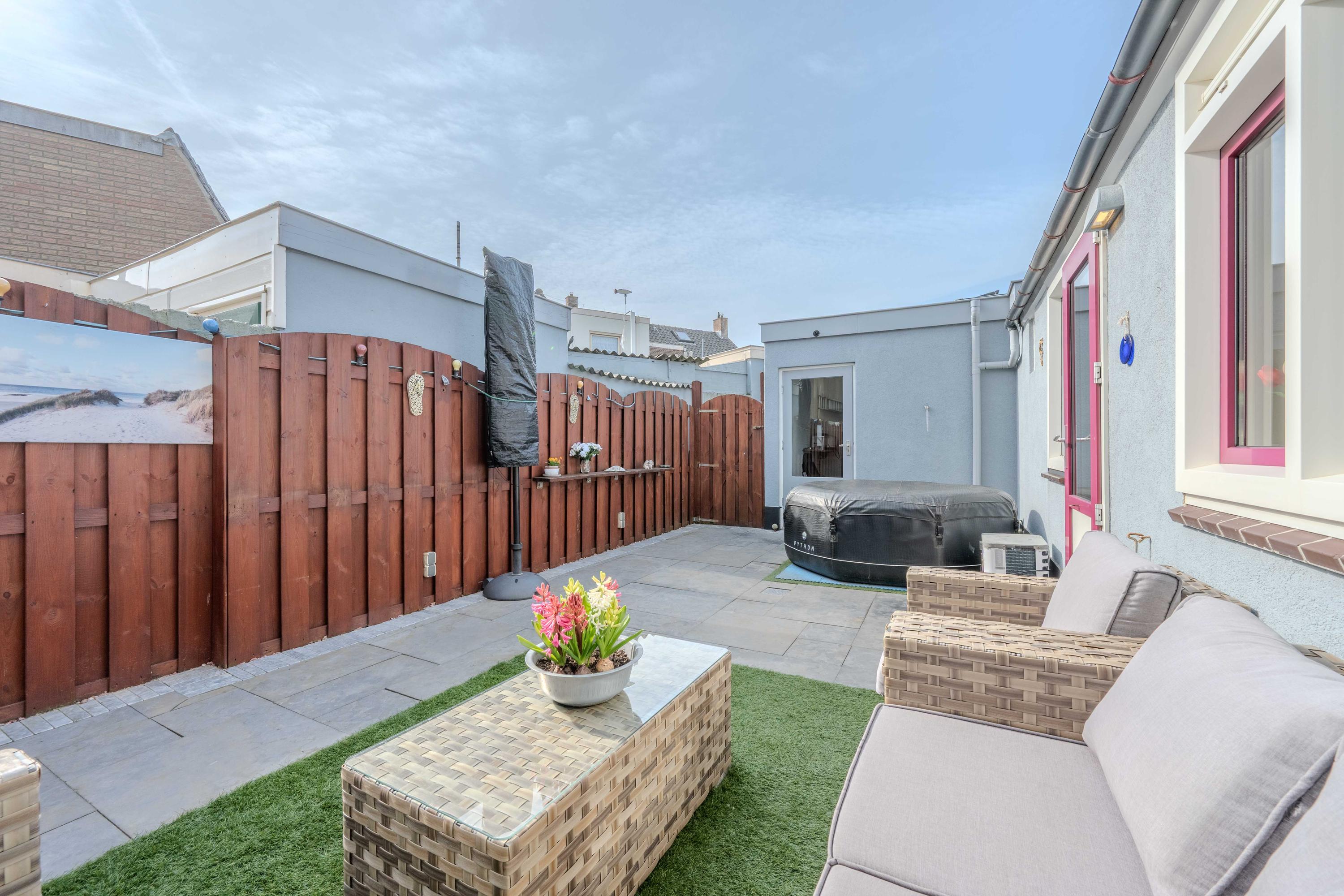 Via de plaats (bereikbaar via de zijkant van de woning) komt u bij de berging. Deze is voorzien van elektra en gas.