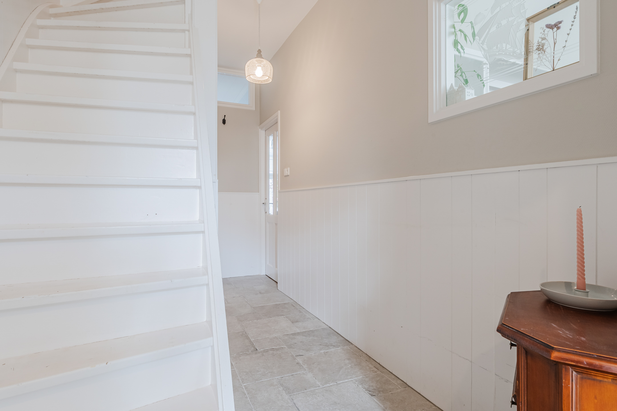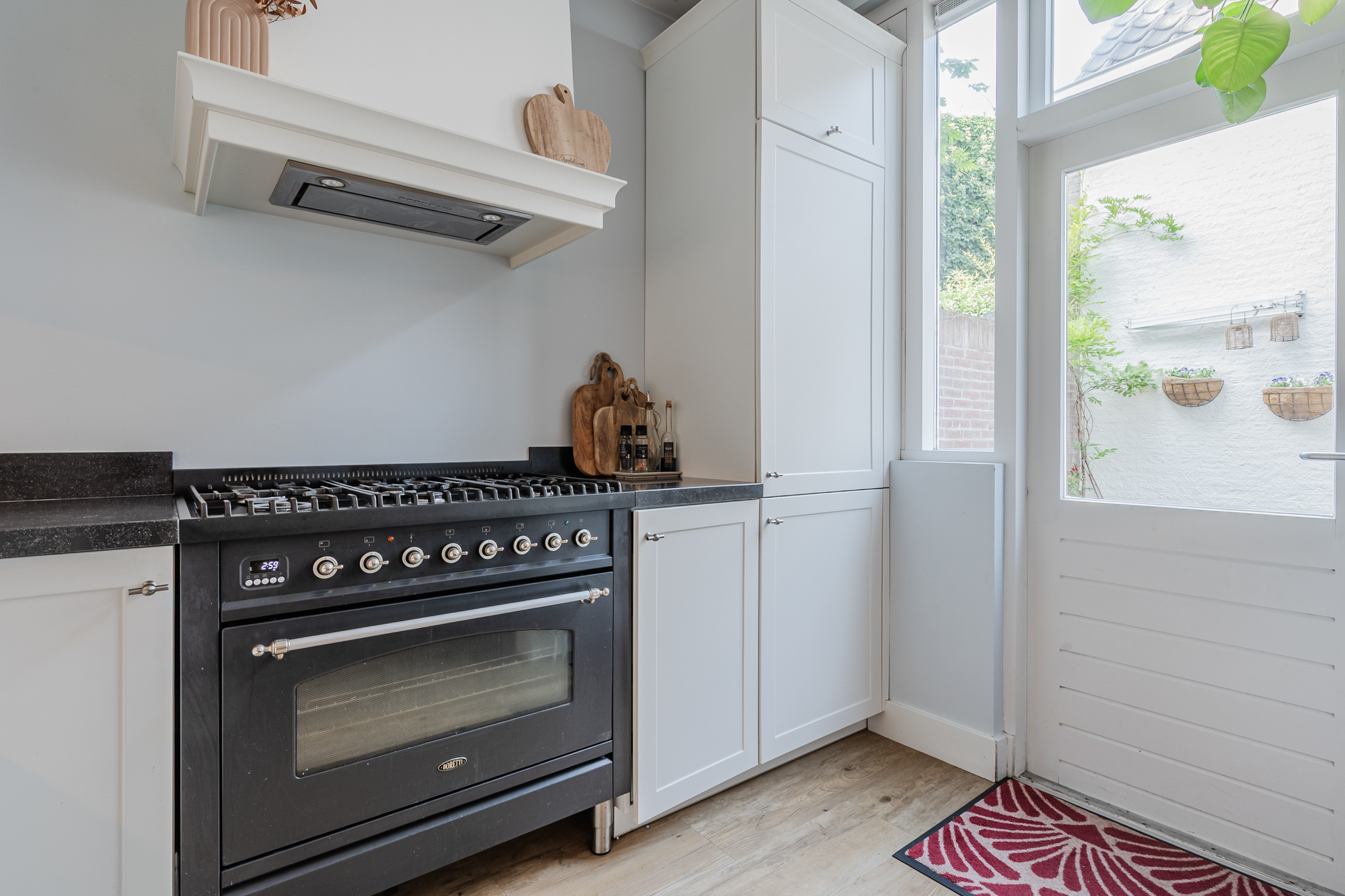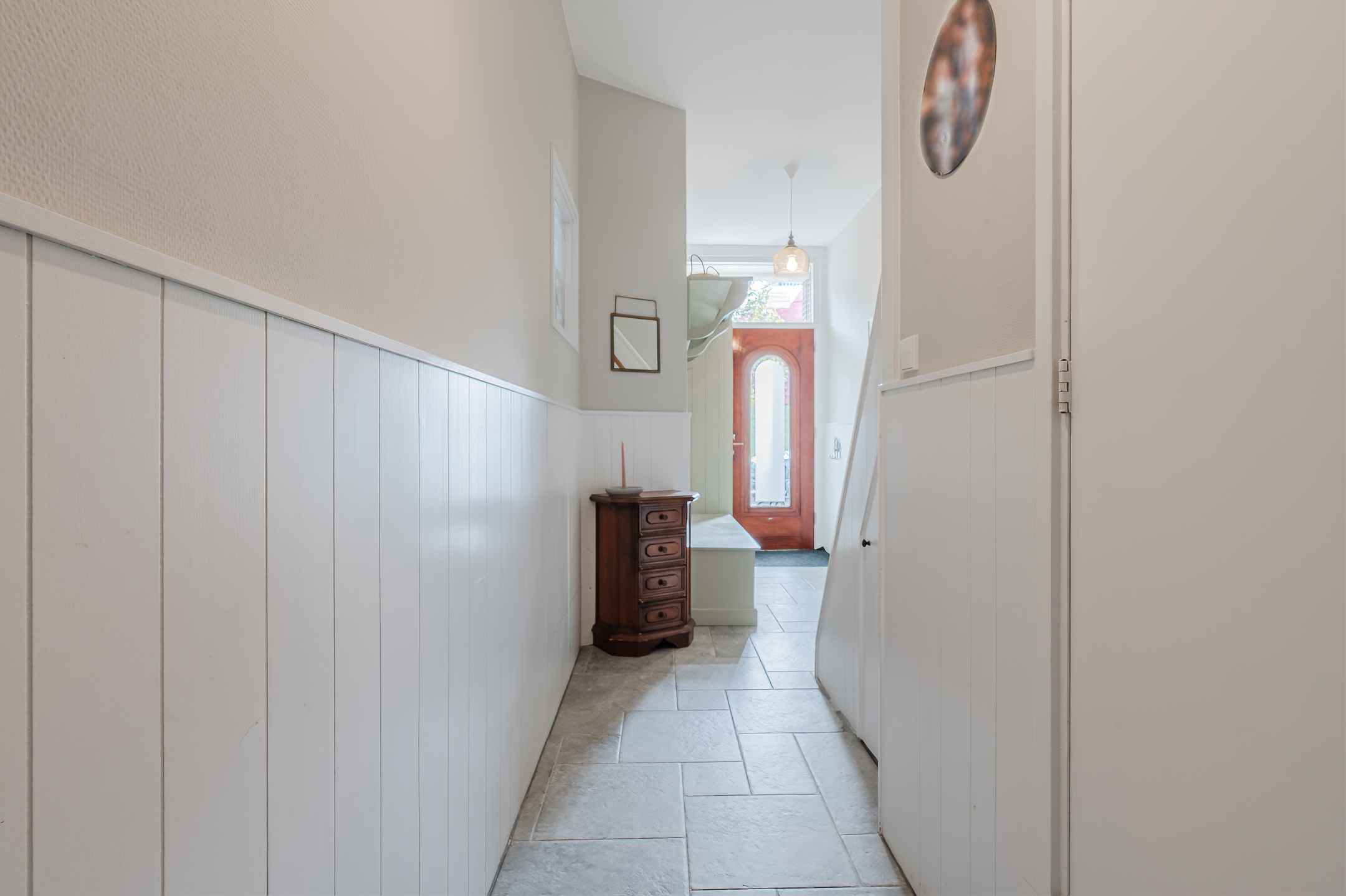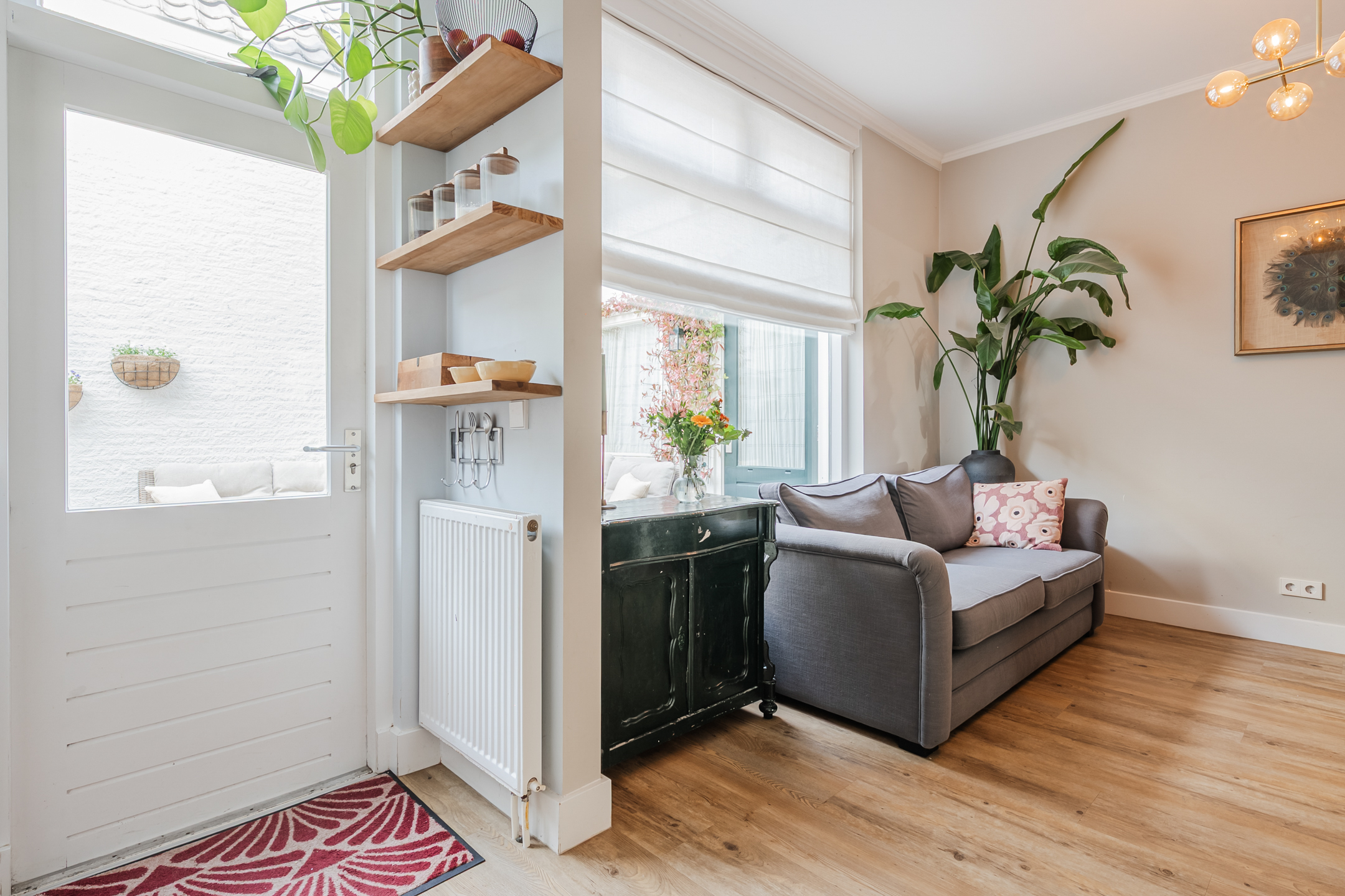 Via de karakteristieke voordeur komt u binnen in de hal met toilet en trapkast. De sfeervolle kamer en suite is voorzien van hoge plafonds en grote raampartijen. Aan de achterzijde bevindt zich de moderne open keuken met diverse inbouwapparatuur, waaronder een luxe Boretti fornuis. Via de keuken bereikt u de beschutte achtertuin met achterom en berging.