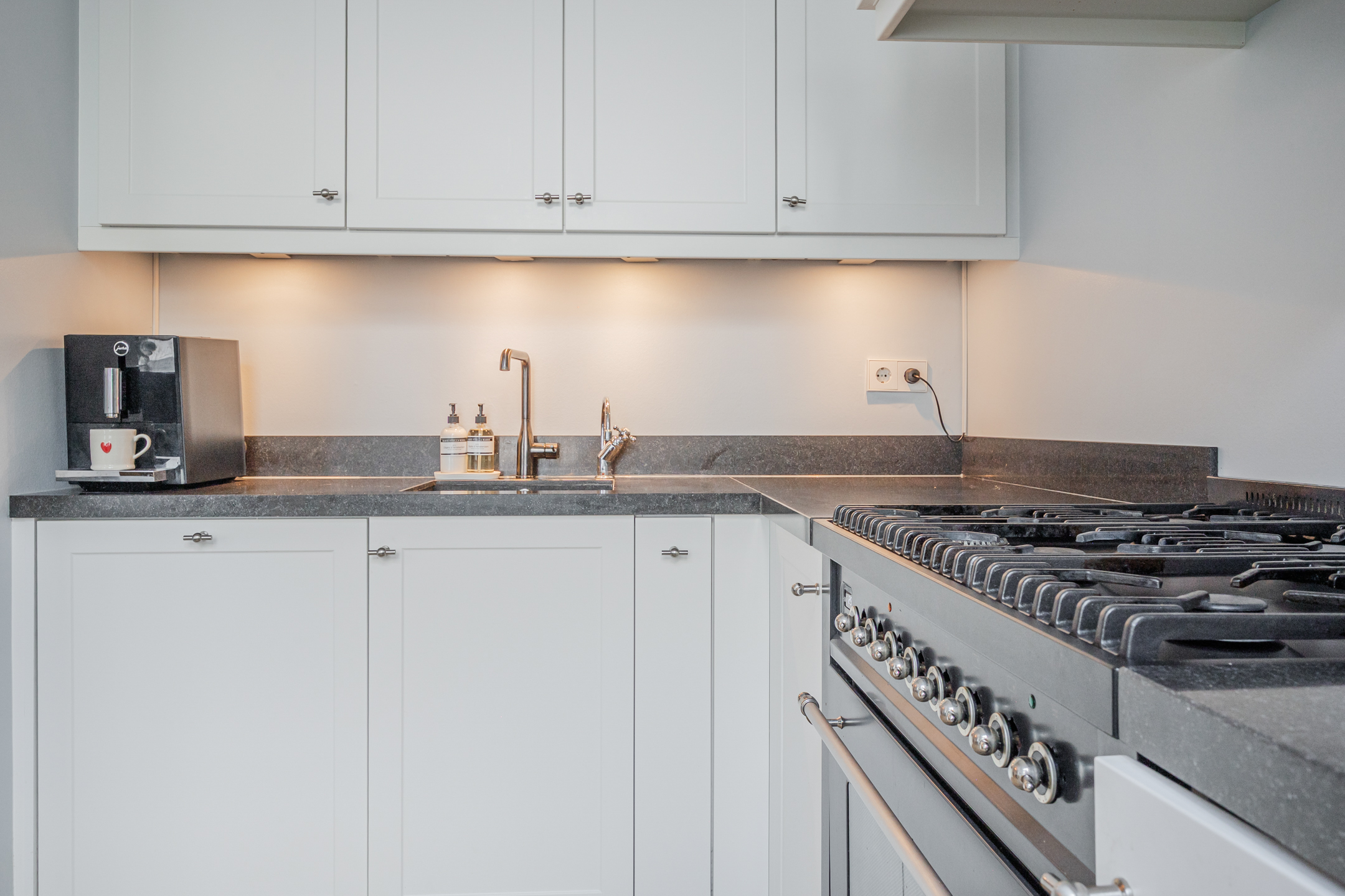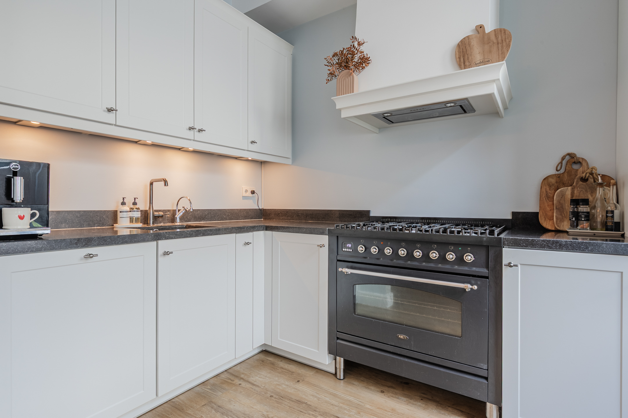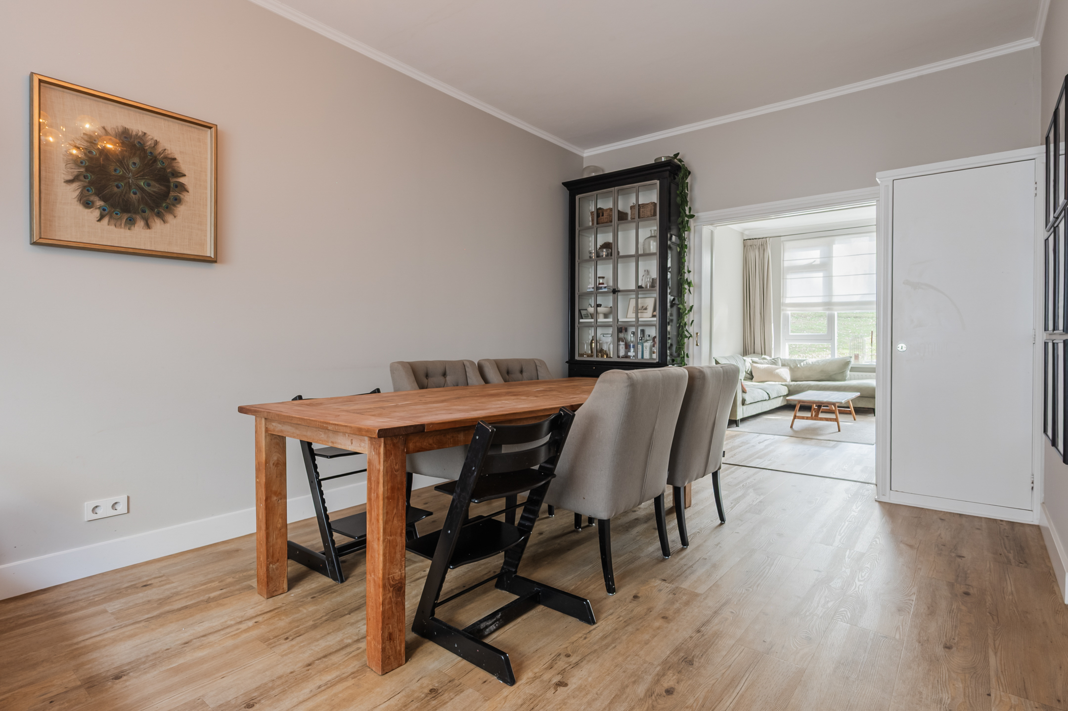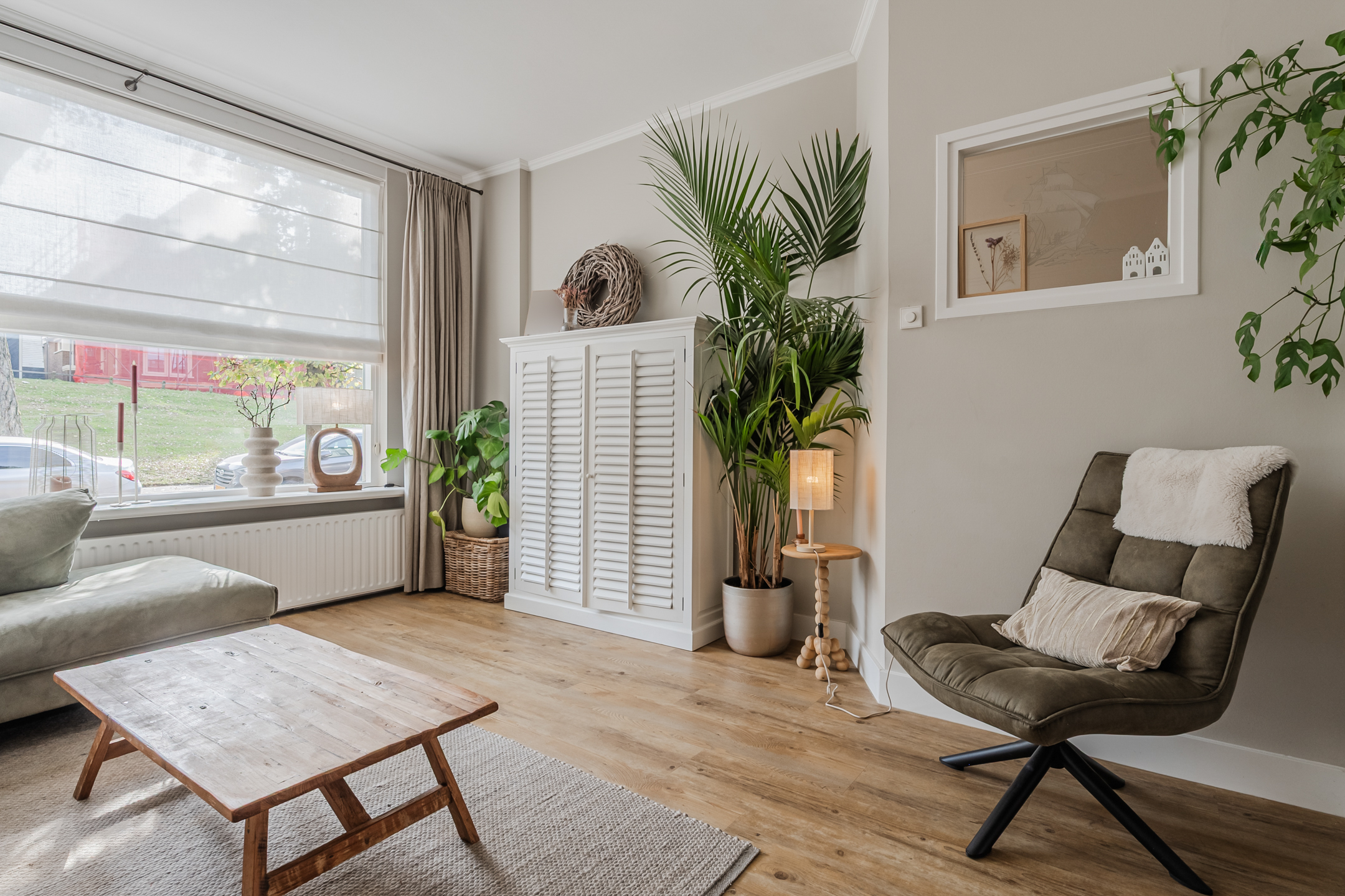 Via de karakteristieke voordeur komt u binnen in de hal met toilet en trapkast. De sfeervolle kamer en suite is voorzien van hoge plafonds en grote raampartijen. Aan de achterzijde bevindt zich de moderne open keuken met diverse inbouwapparatuur, waaronder een luxe Boretti fornuis. Via de keuken bereikt u de beschutte achtertuin met achterom en berging.