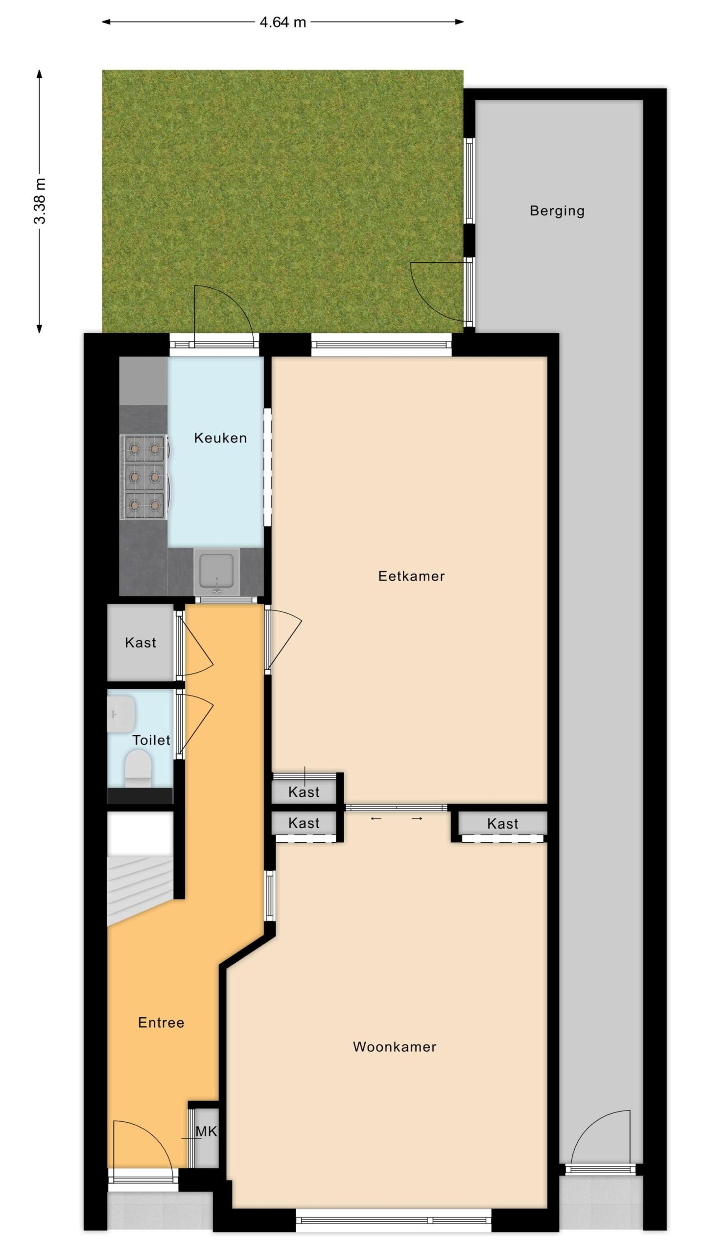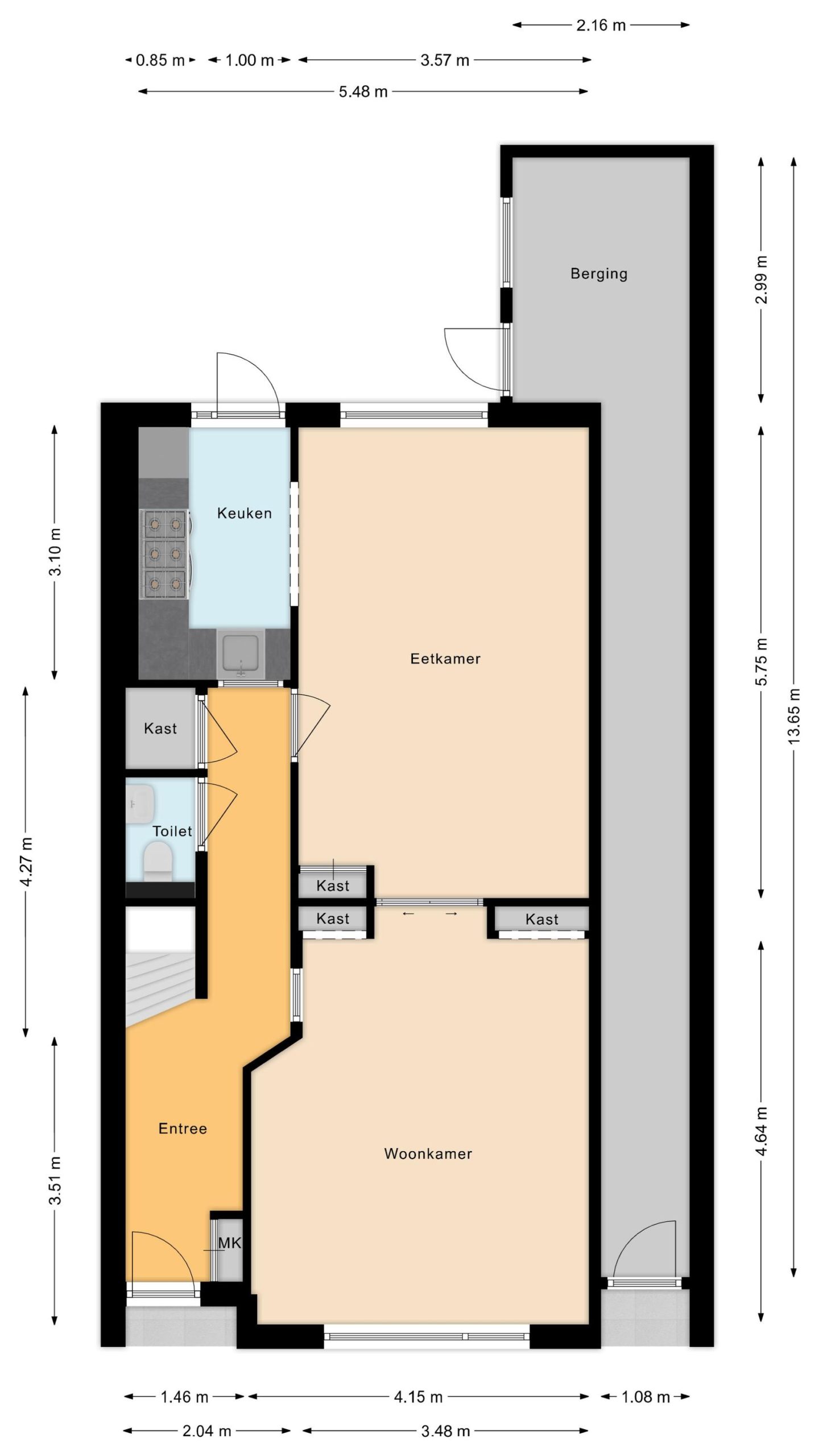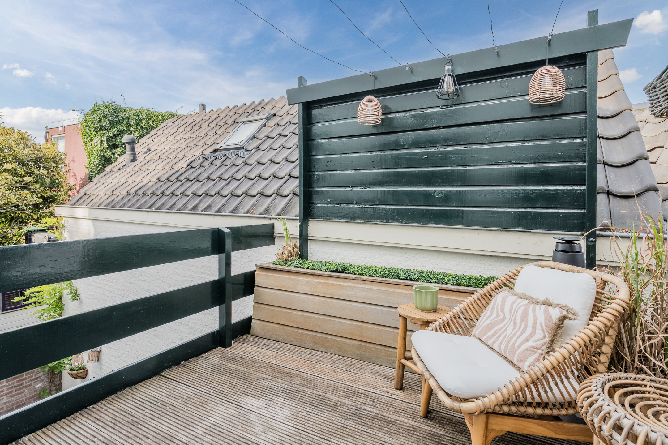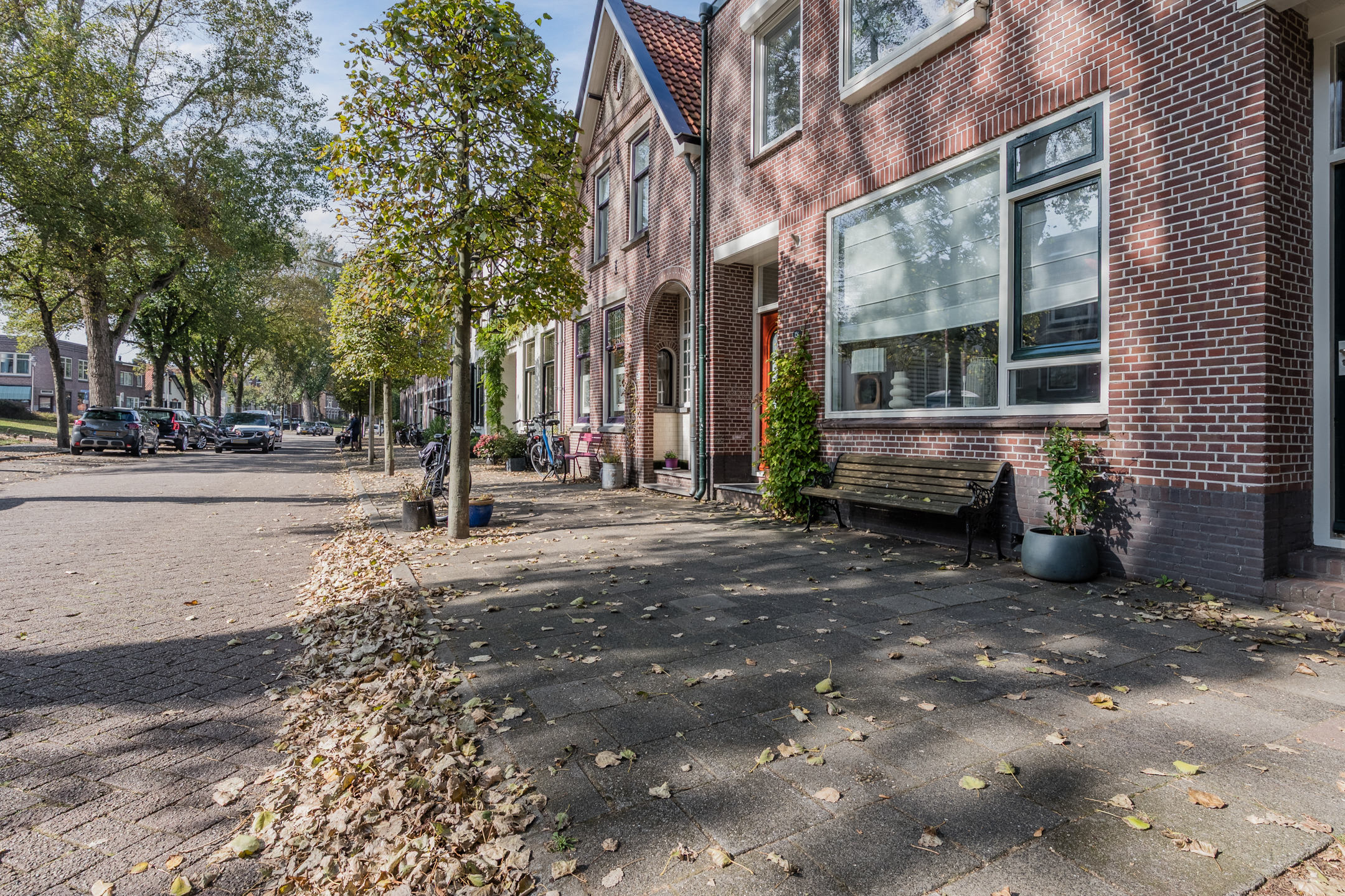 Via de karakteristieke voordeur komt u binnen in de hal met toilet en trapkast. De sfeervolle kamer en suite is voorzien van hoge plafonds en grote raampartijen. Aan de achterzijde bevindt zich de moderne open keuken met diverse inbouwapparatuur, waaronder een luxe Boretti fornuis. Via de keuken bereikt u de beschutte achtertuin met achterom en berging.