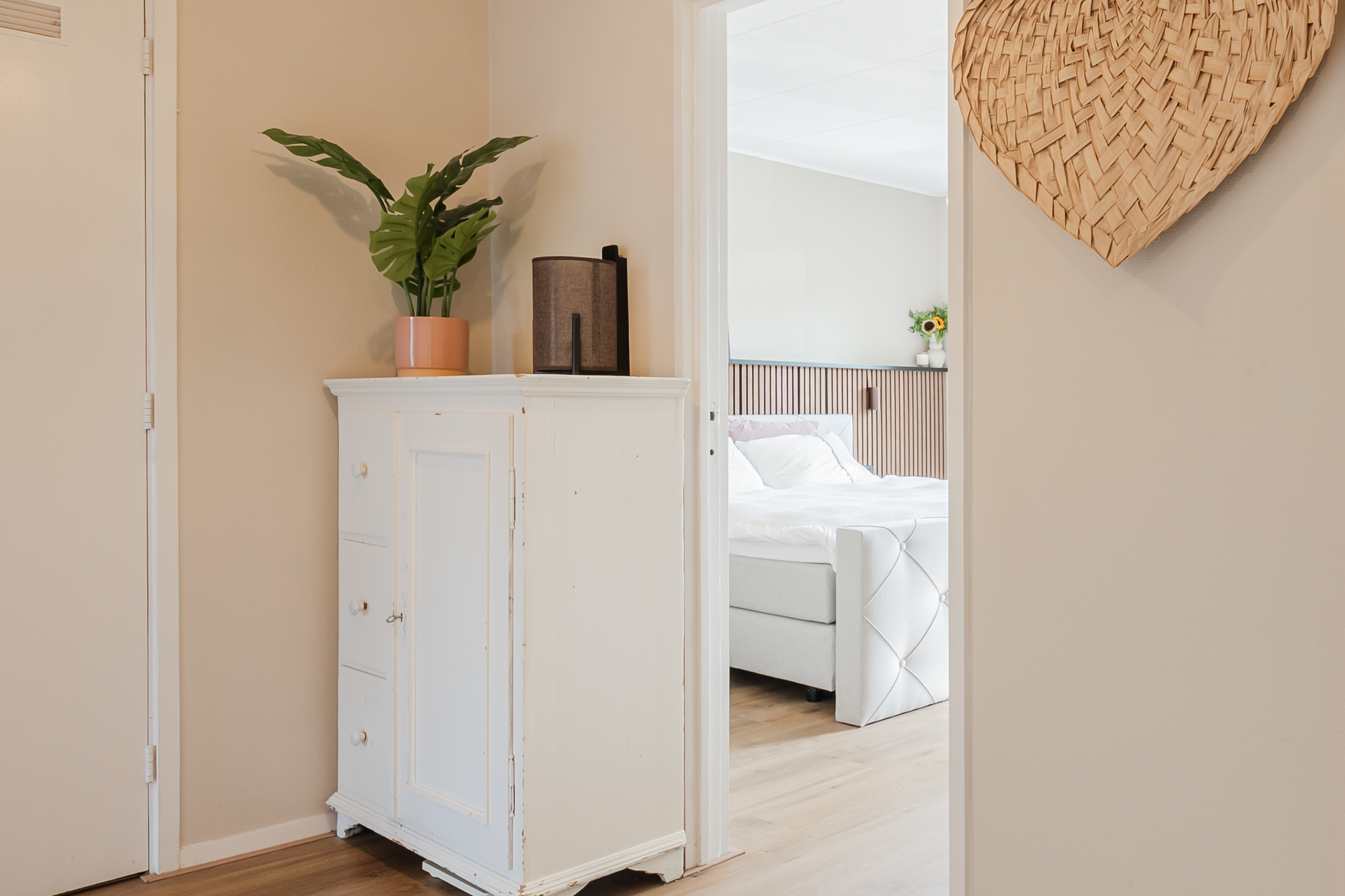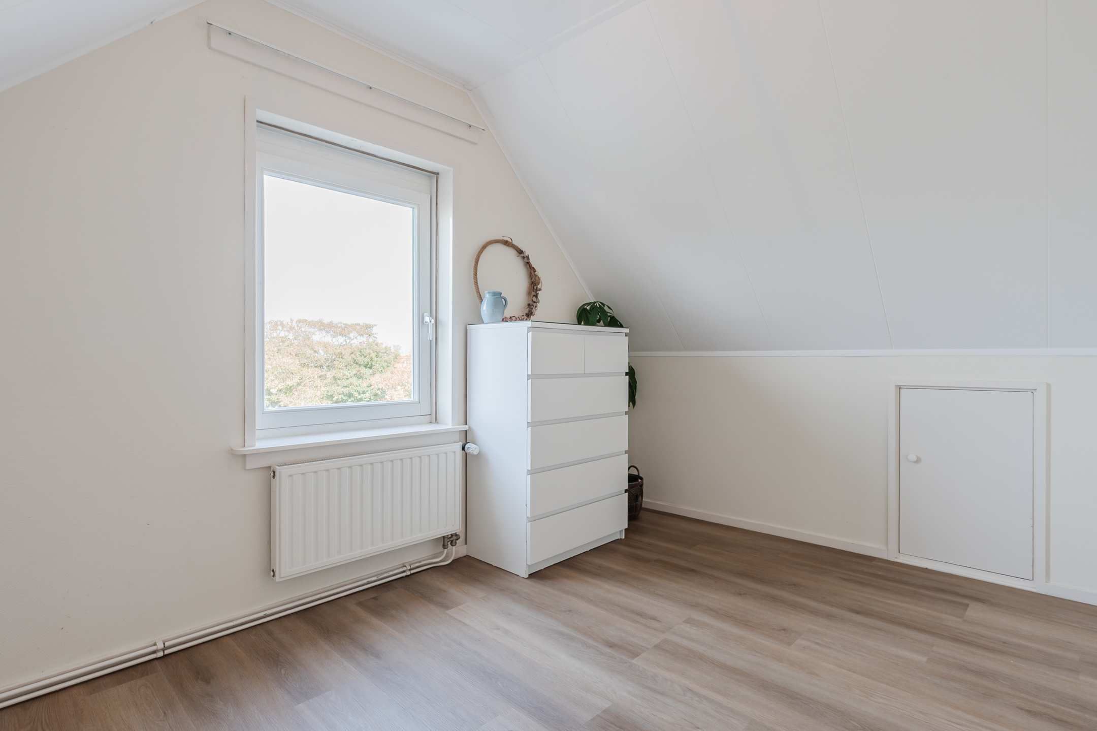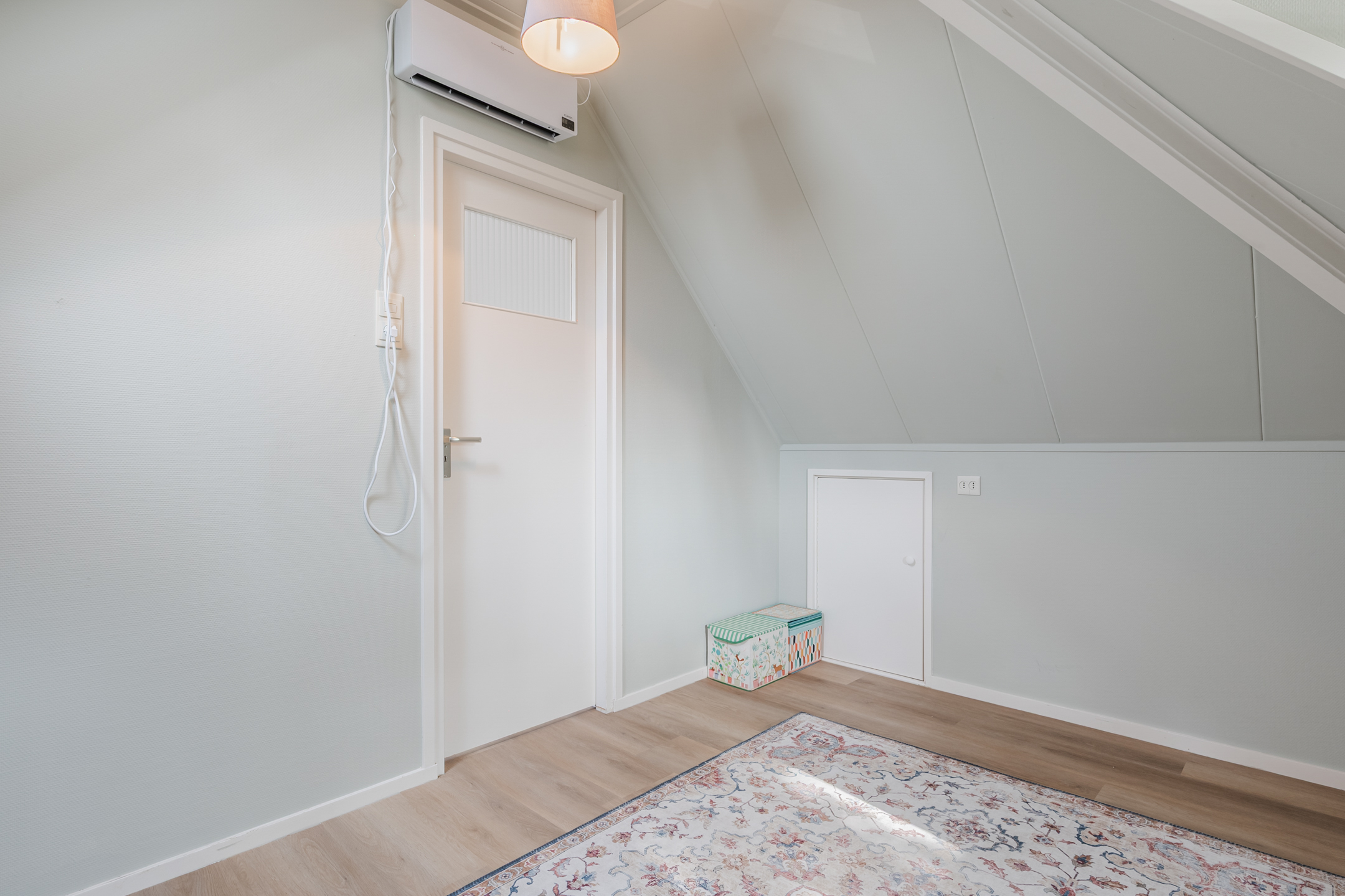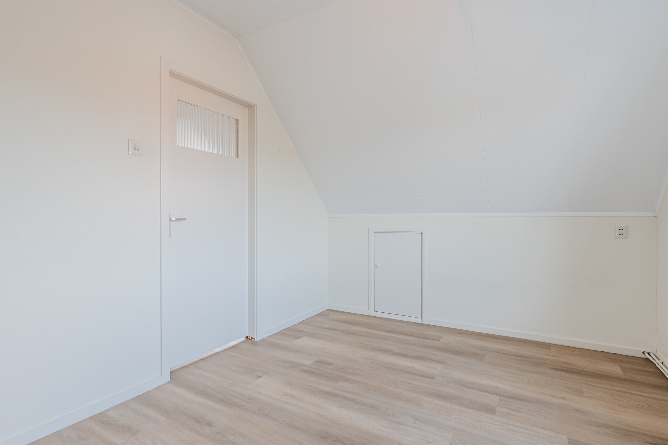 Via een vaste trap bereikt u de verrassend ruime zolderverdieping met overloop, twee volwaardige slaapkamers en veel bergruimte. Ook deze verdieping is voorzien van een onderhoudsvriendelijke PVC-vloer.
