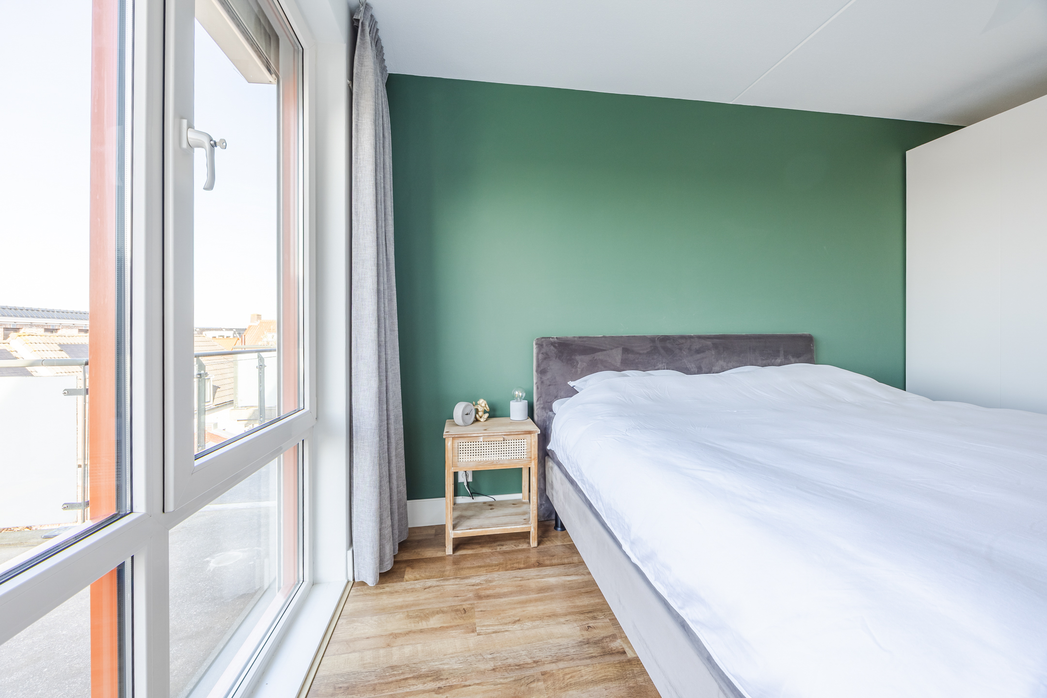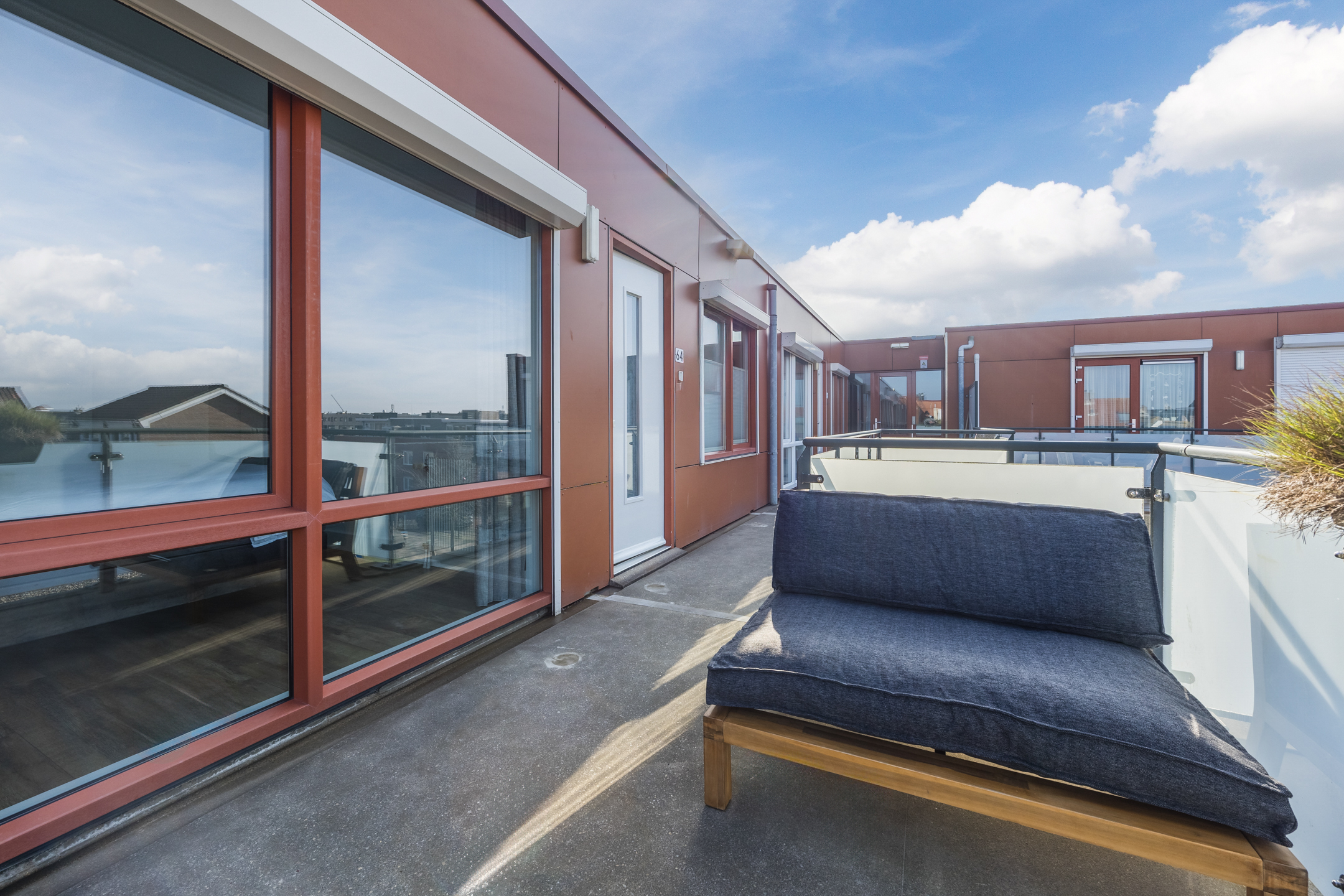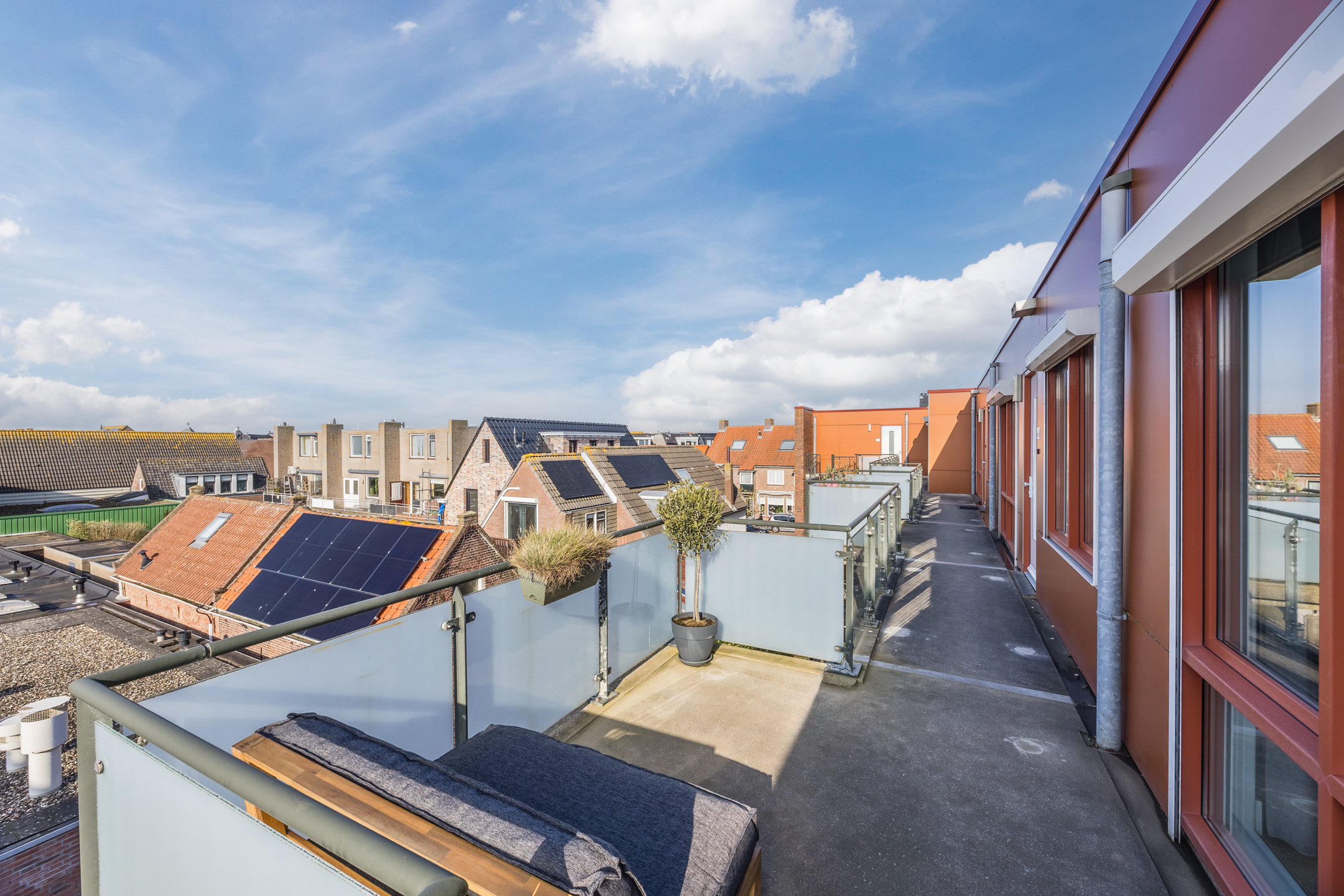 Aan de galerijzijde op het westen bevindt zich een heerlijk eigen balkon waar u tot in de late uurtjes van de zon kunt genieten. Zit u toch liever met uw voeten in het zand, dan bereikt u het strand en de boulevard al binnen 5 minuten lopen. Ook scholen, supermarkten, winkels en sportfaciliteiten bevinden zich op korte afstand.