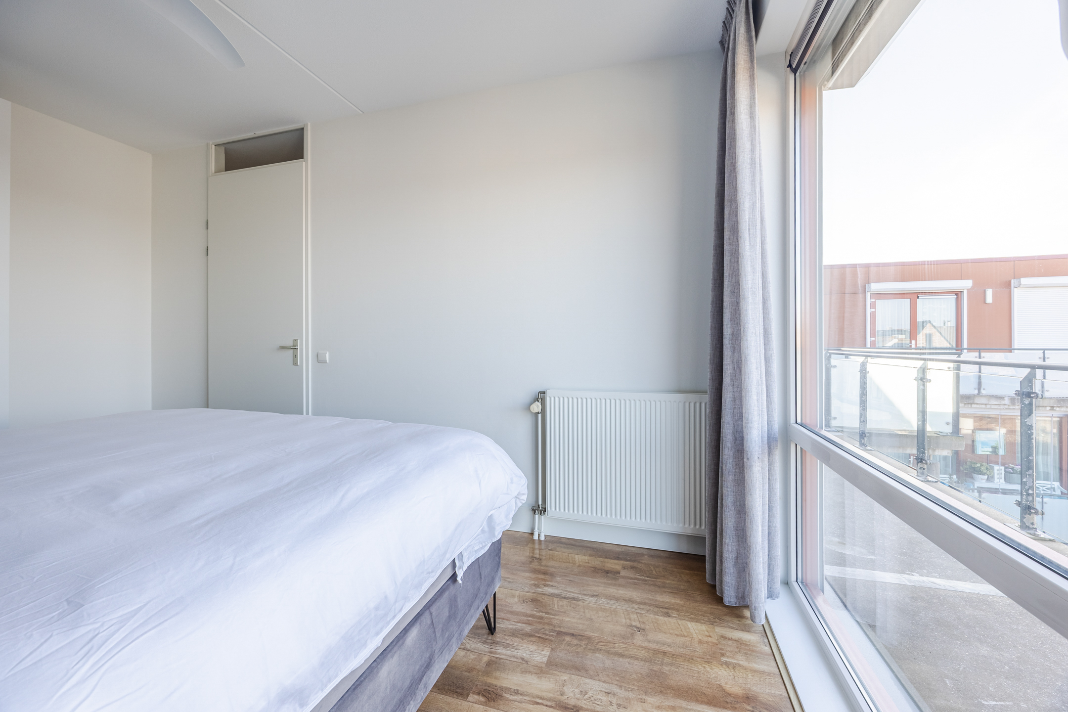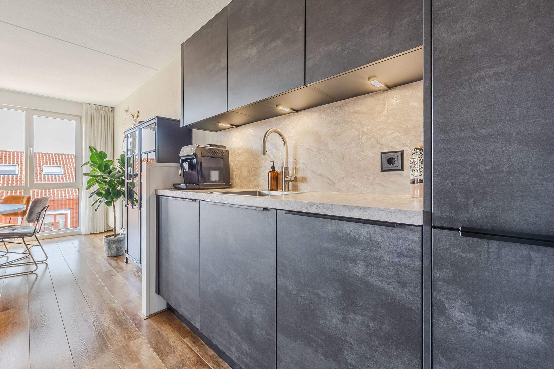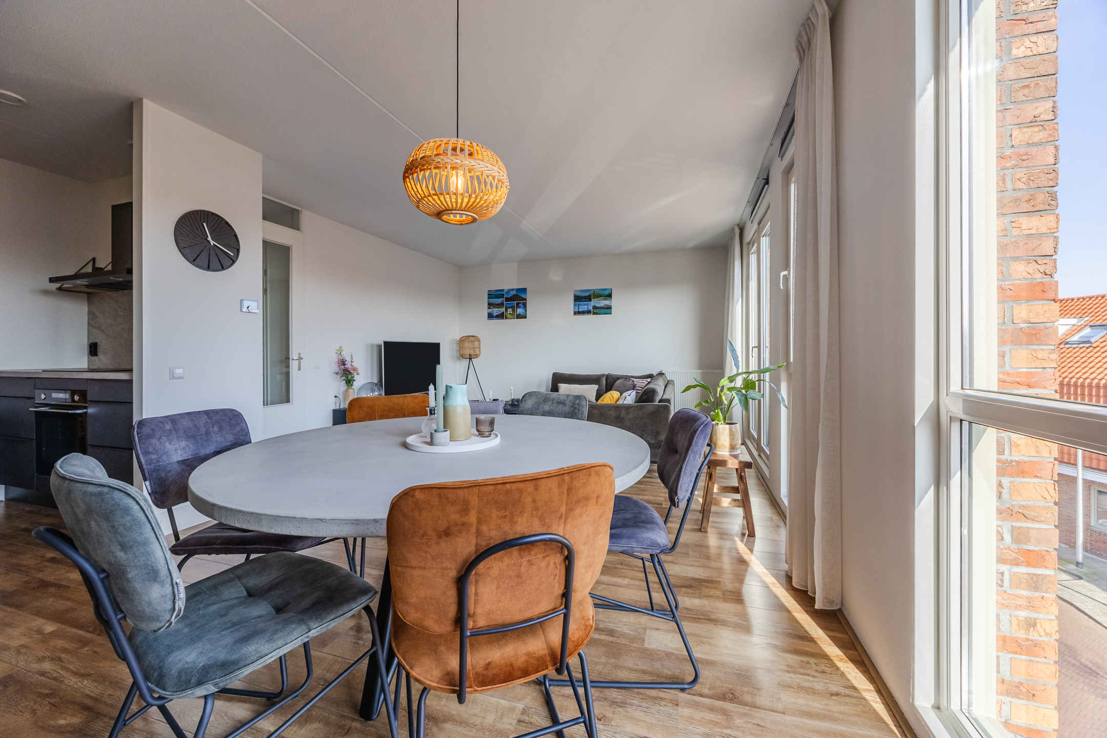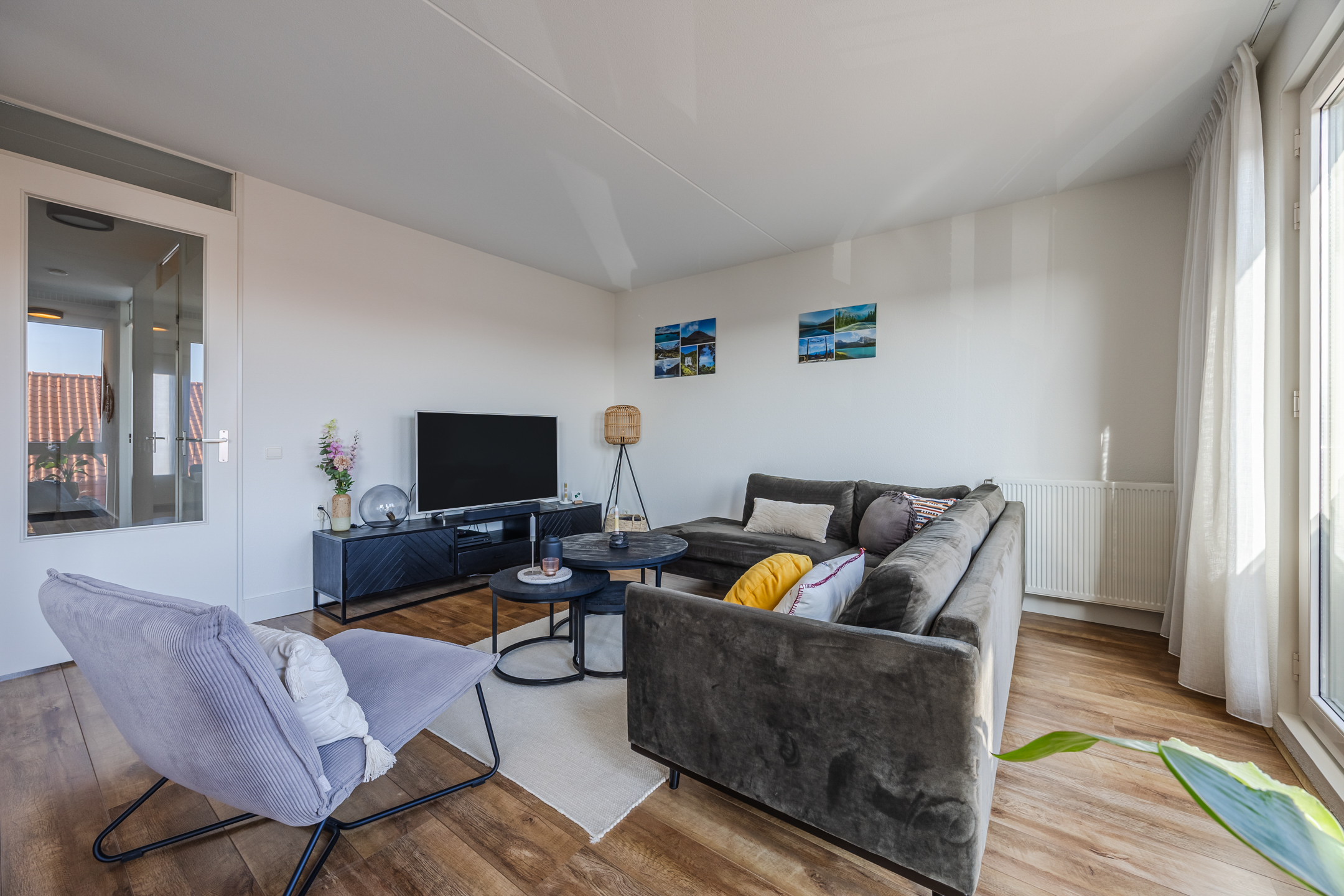 De woonkamer beschikt over grote raampartijen en een Frans balkon, waardoor er veel natuurlijk licht binnenvalt. De open keuken (bouwjaar 2023) is voorzien van diverse inbouwapparatuur, waaronder een inductiekookplaat, oven, afzuigkap, Quooker, vaatwasser, vriezer en koelkast.