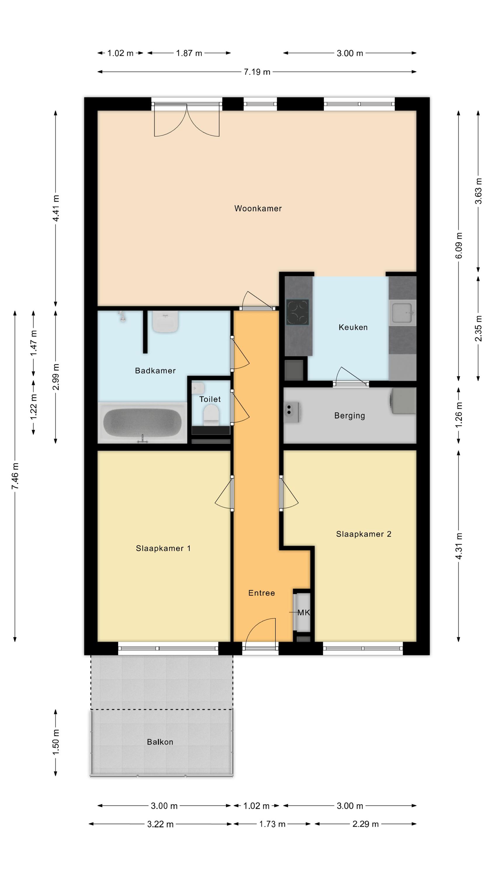 Via de galerij bereikt u de entree van de woning. Voor de entree beschikt u over een eigen balkon op het zonnige westen.