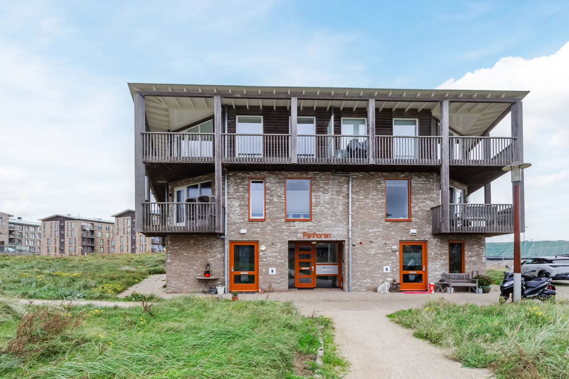 De woning heeft een schitterend vrij uitzicht op zee en een balkon over de gehele breedte van het appartement, welke vanuit alle kamers toegankelijk is. Het kleinschalige gebouw “de Penhoren” is voorzien van een lift en een centrale fietsenberging op de begane grond.