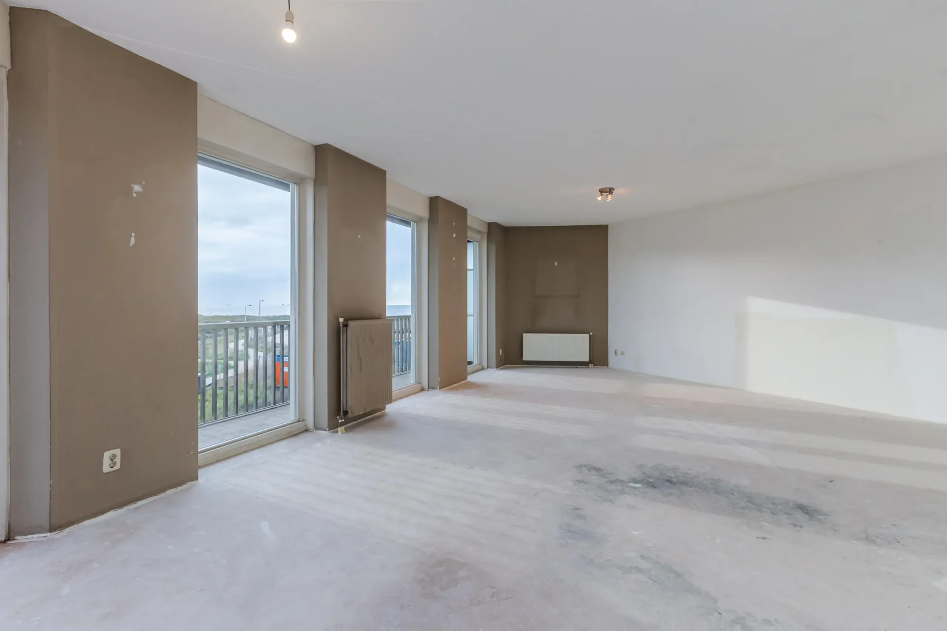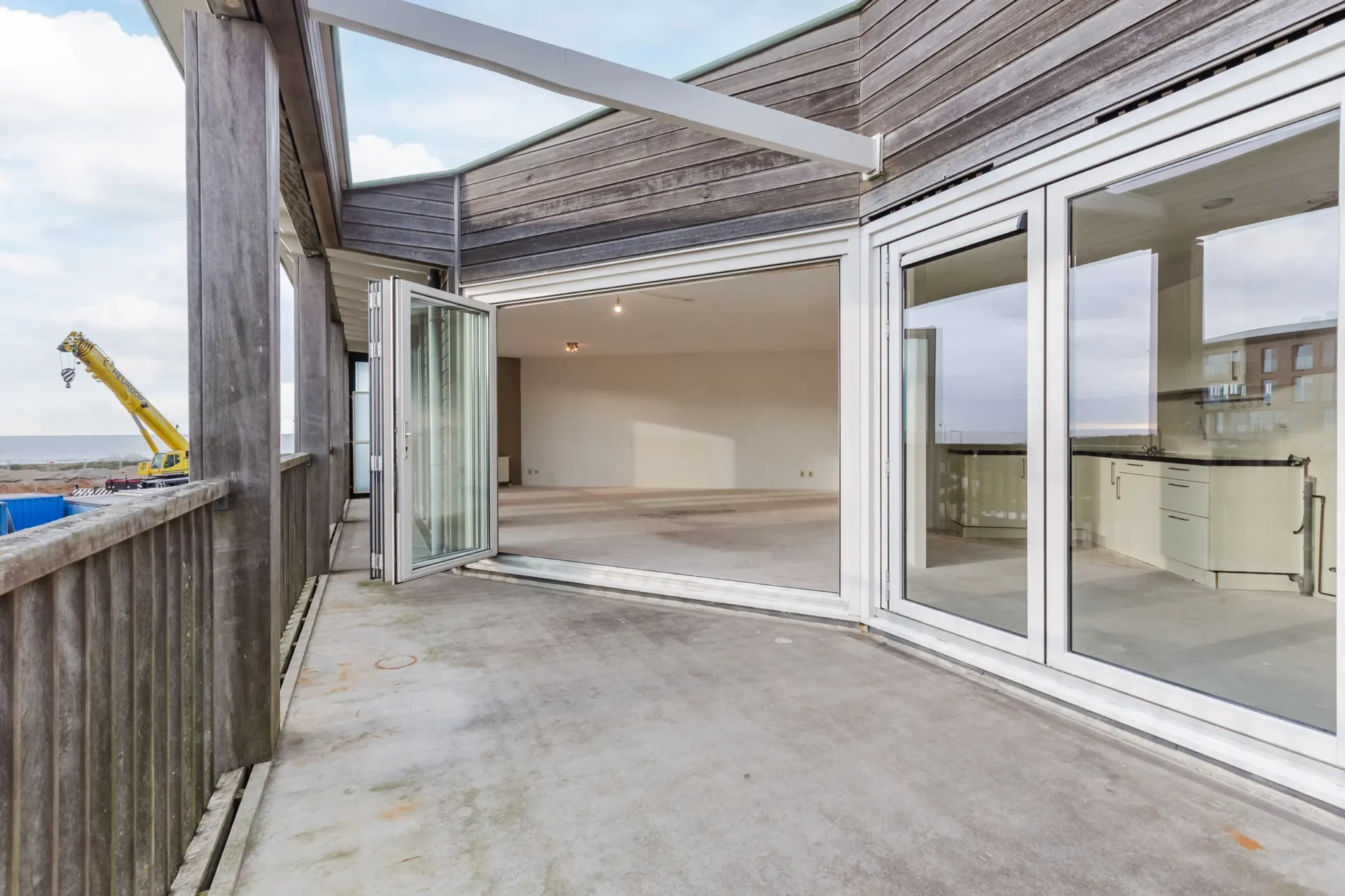 2e verdieping (3e bouwlaag): Vanuit de lift is er toegang tot de twee appartementen op deze verdieping. Via de voordeur betreedt u de woning en bereikt u de centrale entree vanwaar u toegang heeft tot alle ruimtes. Aan de Westkant bevindt zich de riante woonkamer met op keuken. Door de grote raampartijen heeft u fantastische lichttoetreding in de woning en een magistraal uitzicht richting het strand en de zee! Ook heeft u vanuit de woonkamer toegang tot een zeer ruim en zonnig balkon.