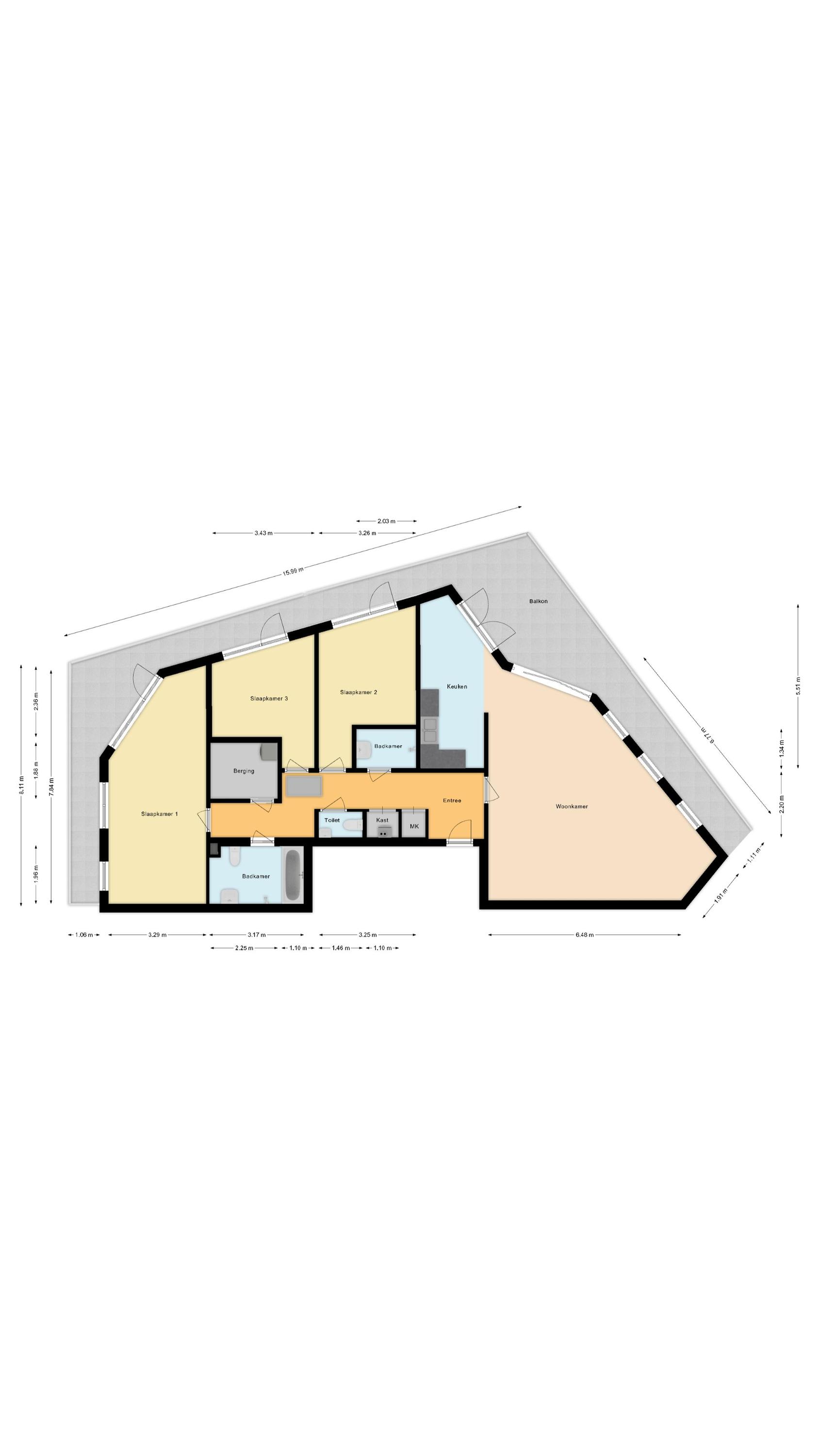 Verder zijn er nog drie goed formaat slaapkamers die allemaal een eigen toegang hebben tot het balkon dat om het gehele appartement loopt. Tevens heeft dit appartement twee badkamers, waarvan één met ligbad, inloopdouche én toilet. Ook is er naast de ruime CV-ruimte en meterkast nog een goed formaat berging met was/droogmachine aansluiting.