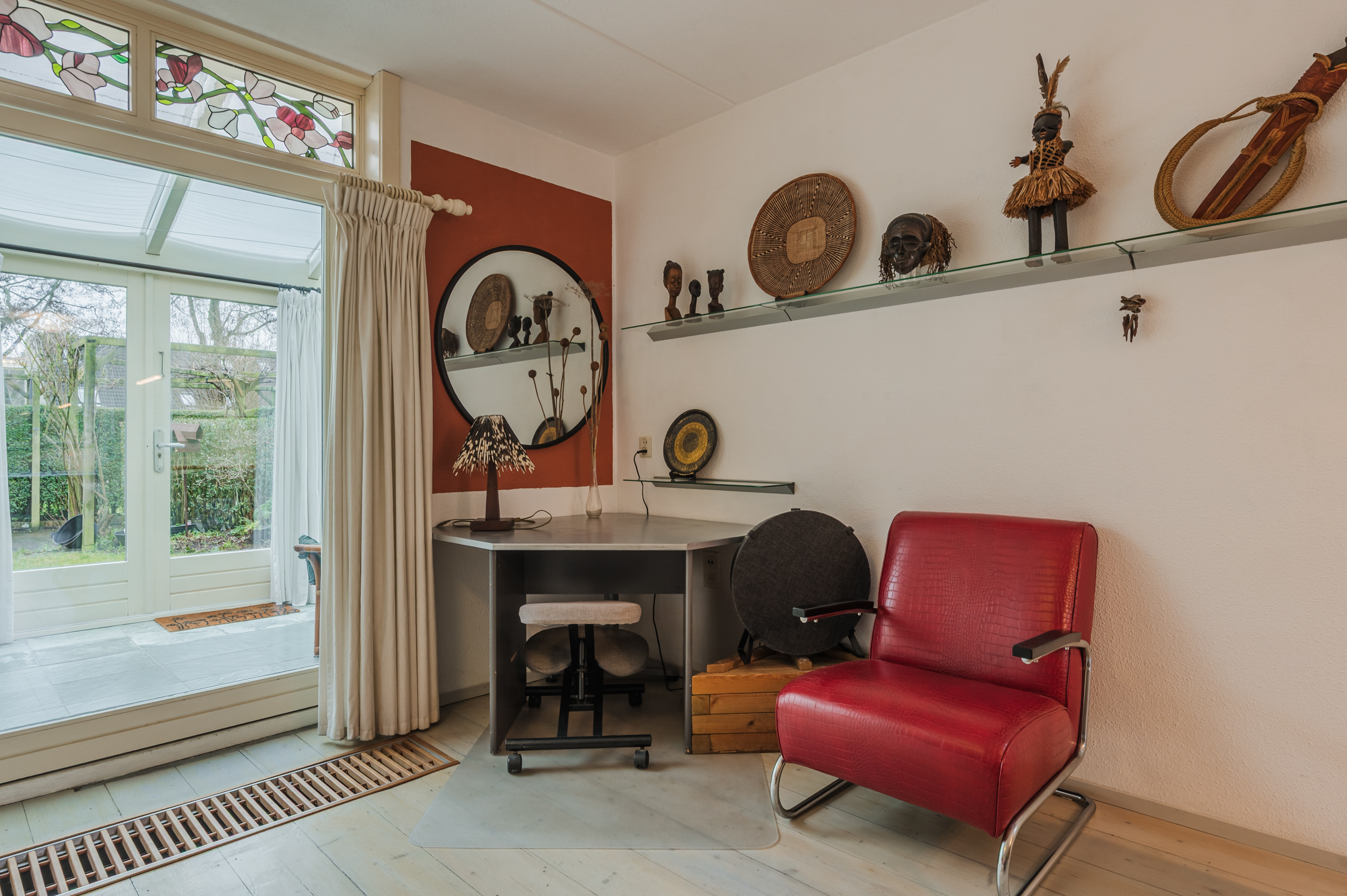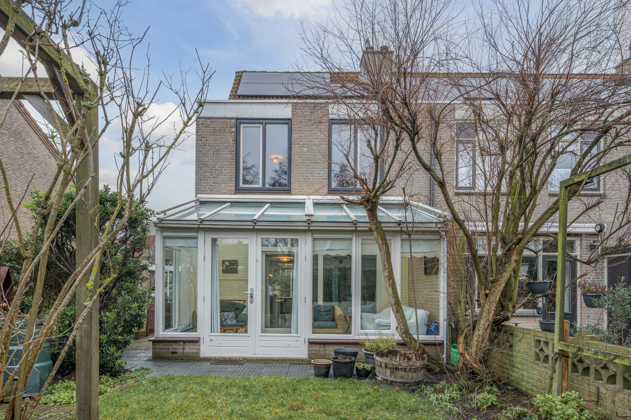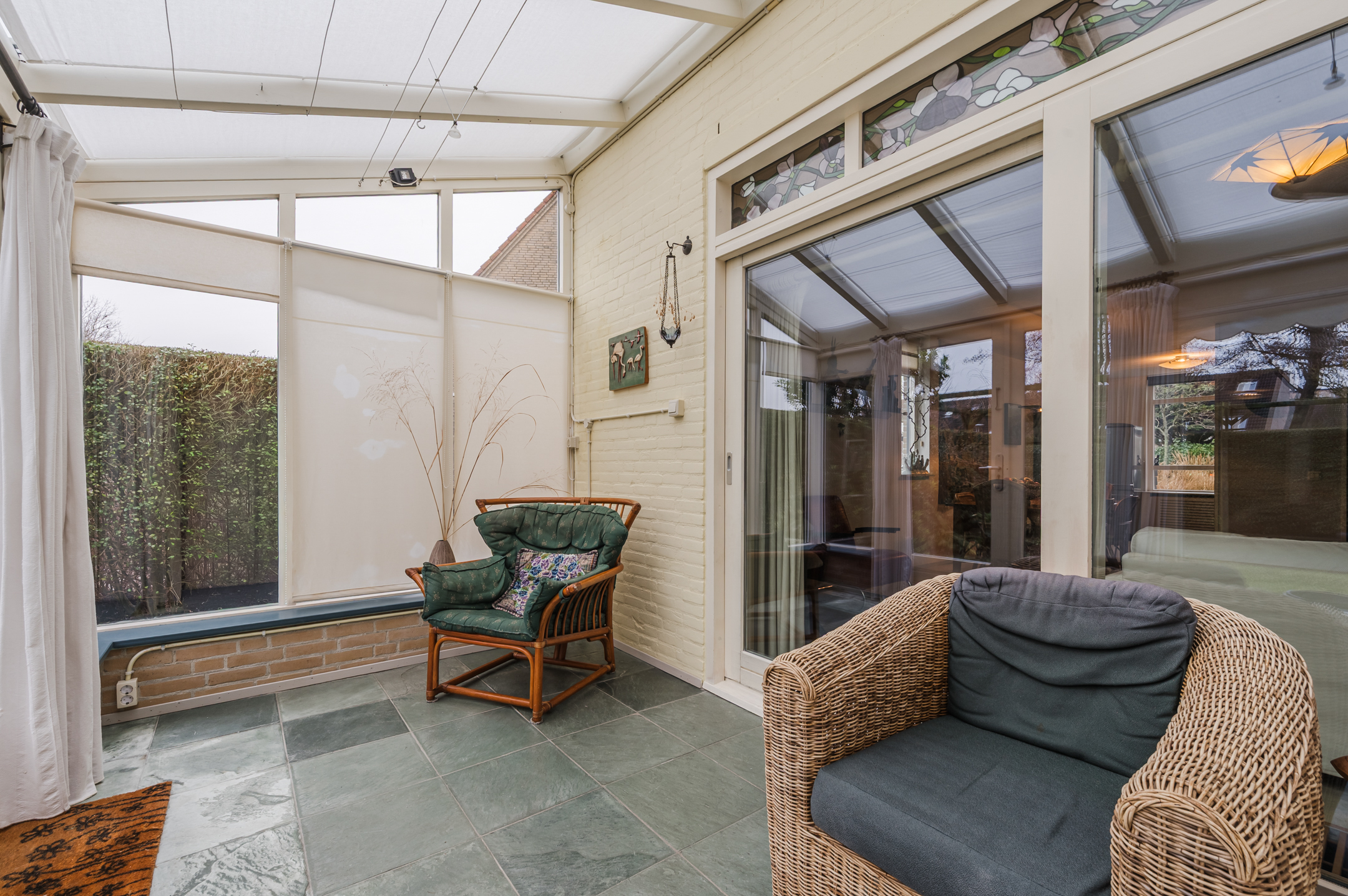 Begane grond: Via de voortuin bereikt u de entree van de woning. De brede hal is voorzien van een toilet en een bergkast en biedt tevens toegang tot de binnendoor bereikbare berging. De heerlijk lichte woonkamer is gesitueerd op het zuidwesten, beschikt over een zijraam en staat in open verbinding met de keuken, die is eveneens uitgerust met een zijraam en diverse inbouwapparatuur. Een echte eyecatcher is de kwalitatief hoogwaardige aangebouwde serre, die via een schuifpui vanuit de woonkamer bereikbaar is. De serre is gefundeerd, voorzien van elektra, elektrische zonwering en een plavuizenvloer met vloerverwarming en vormt een prachtige verlenging van de leefruimte. De zonnige achtertuin is in de zomermaanden een groene oase.