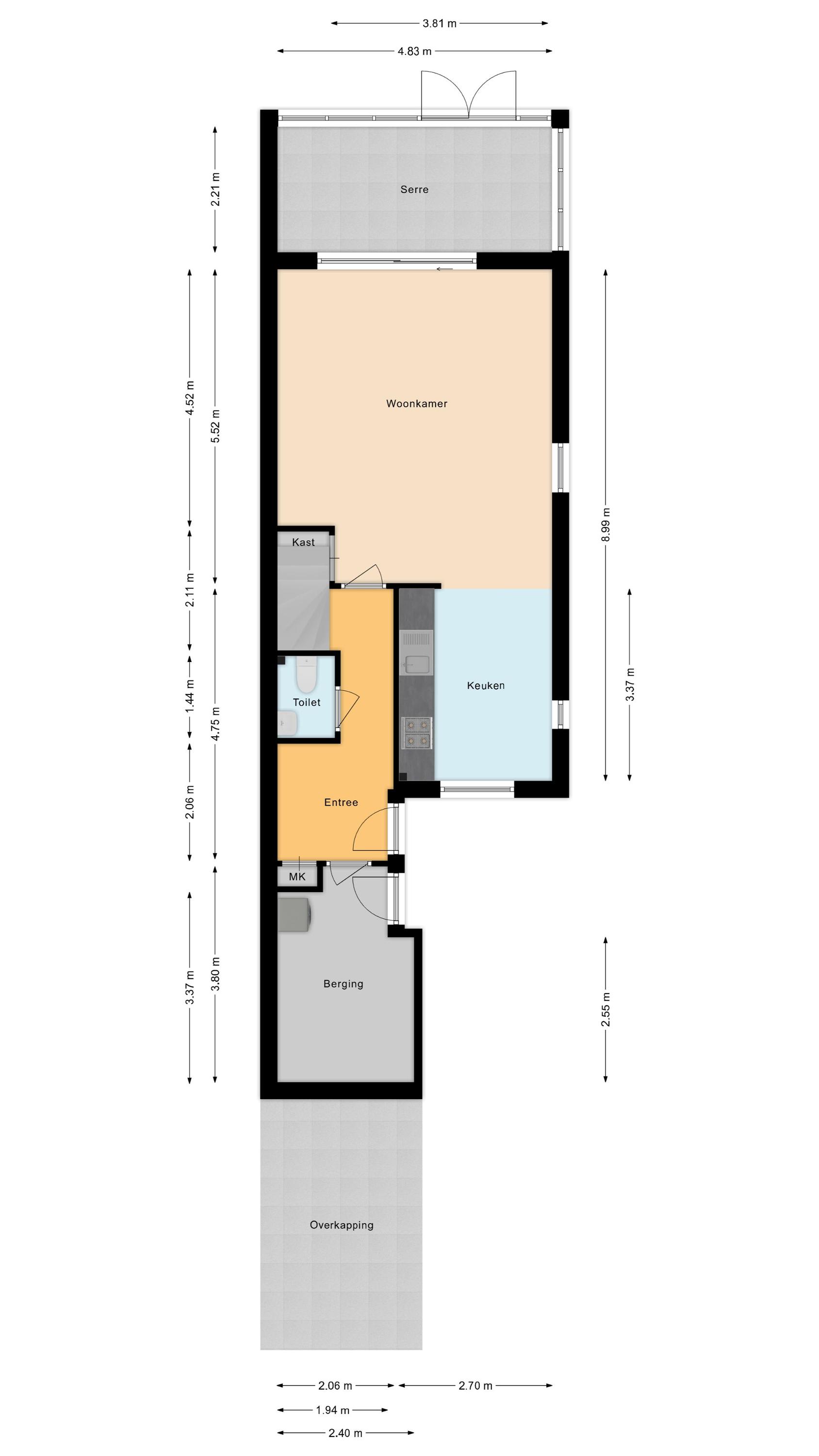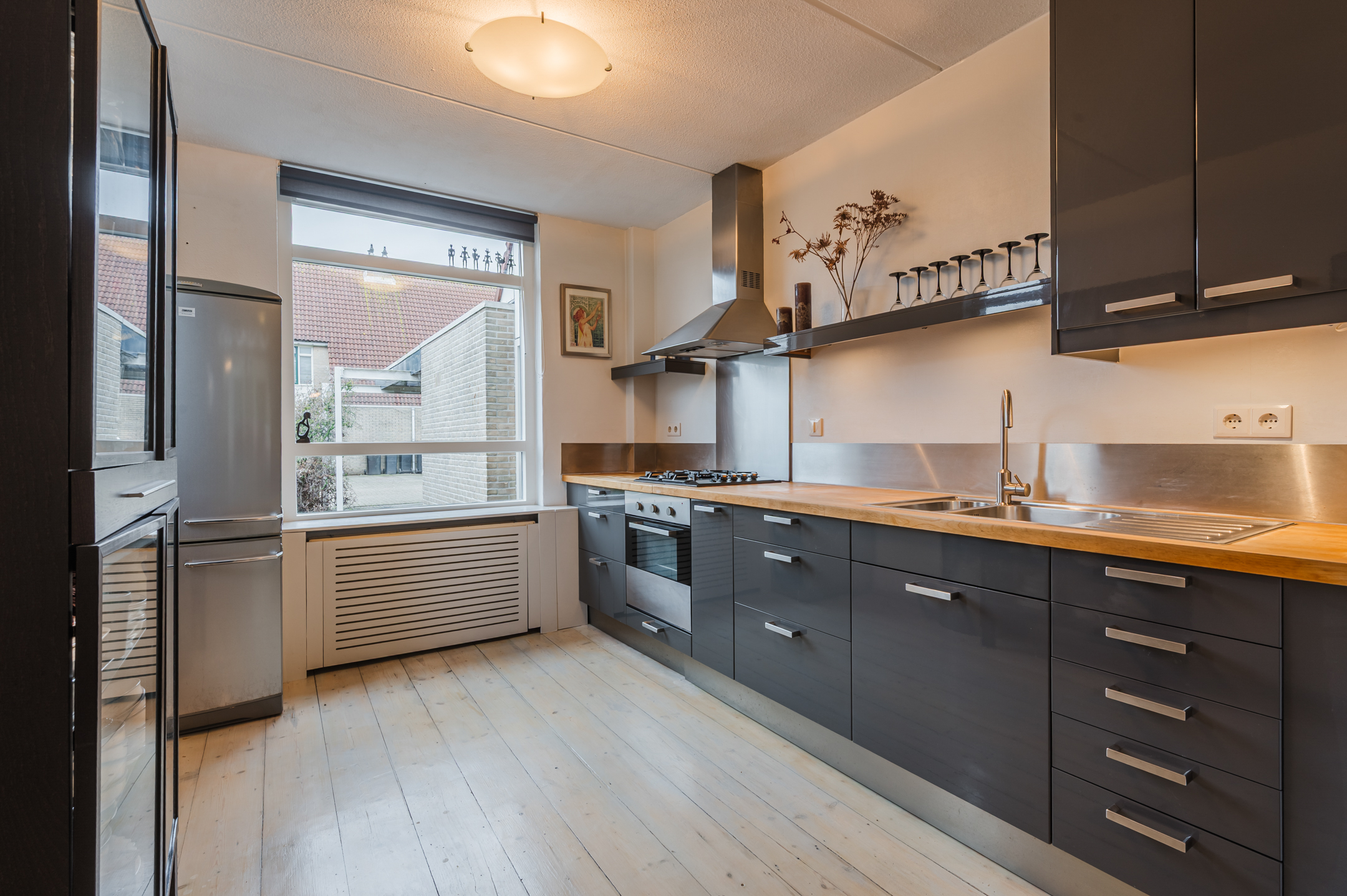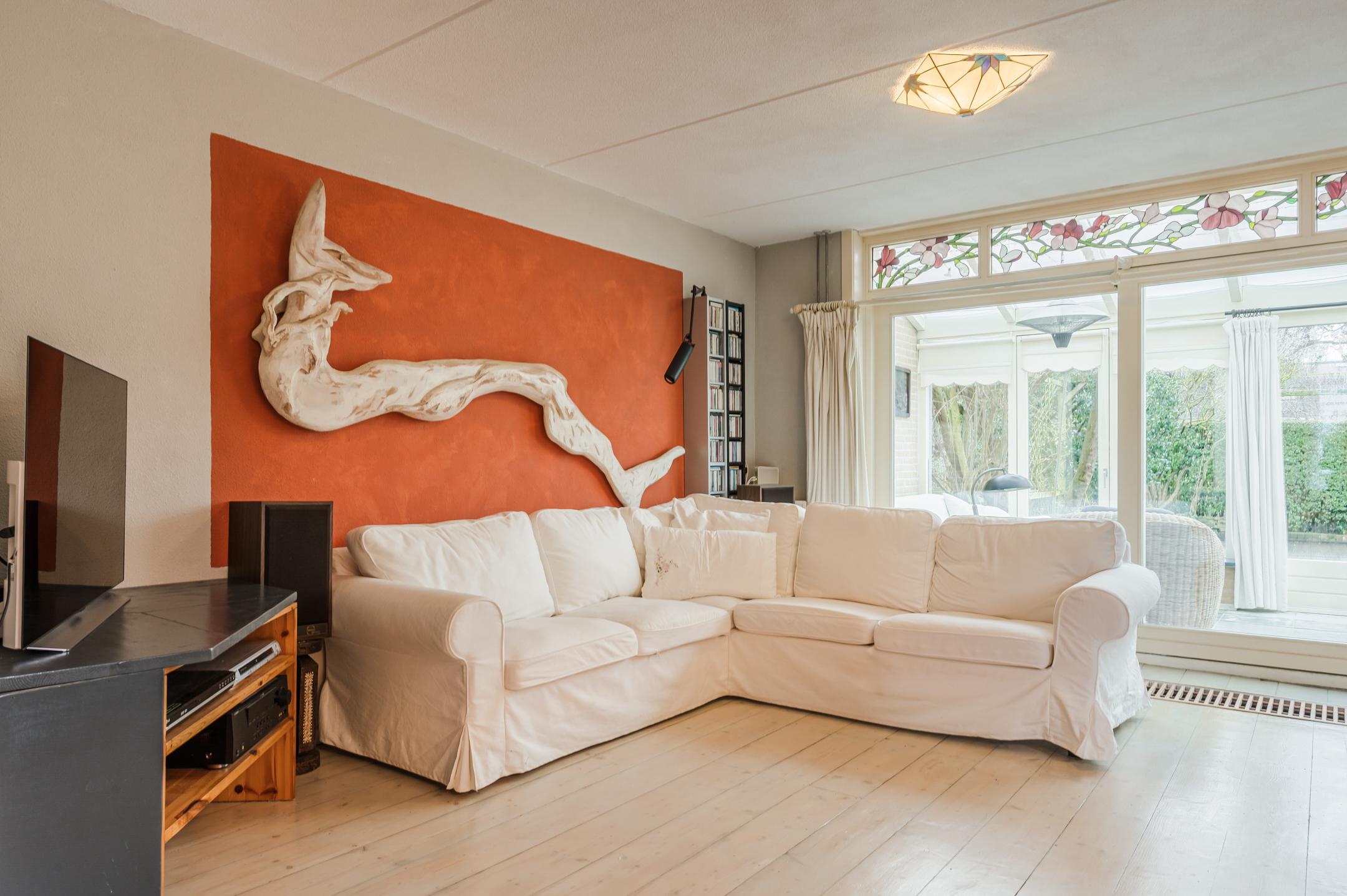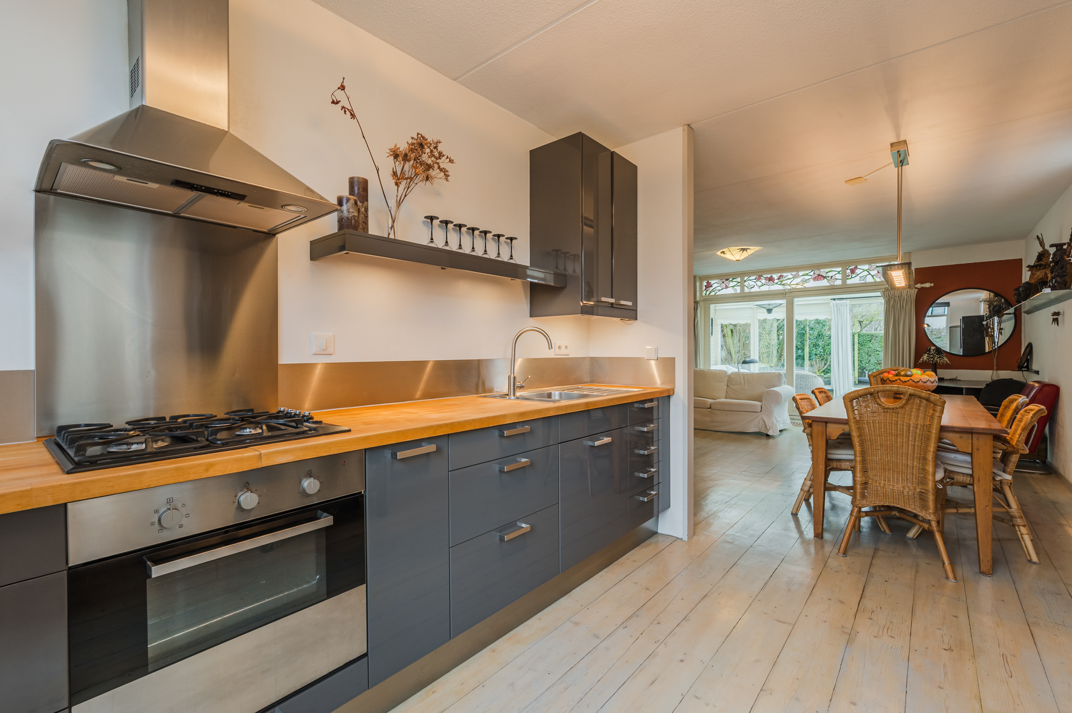 Begane grond: Via de voortuin bereikt u de entree van de woning. De brede hal is voorzien van een toilet en een bergkast en biedt tevens toegang tot de binnendoor bereikbare berging. De heerlijk lichte woonkamer is gesitueerd op het zuidwesten, beschikt over een zijraam en staat in open verbinding met de keuken, die is eveneens uitgerust met een zijraam en diverse inbouwapparatuur. Een echte eyecatcher is de kwalitatief hoogwaardige aangebouwde serre, die via een schuifpui vanuit de woonkamer bereikbaar is. De serre is gefundeerd, voorzien van elektra, elektrische zonwering en een plavuizenvloer met vloerverwarming en vormt een prachtige verlenging van de leefruimte. De zonnige achtertuin is in de zomermaanden een groene oase.