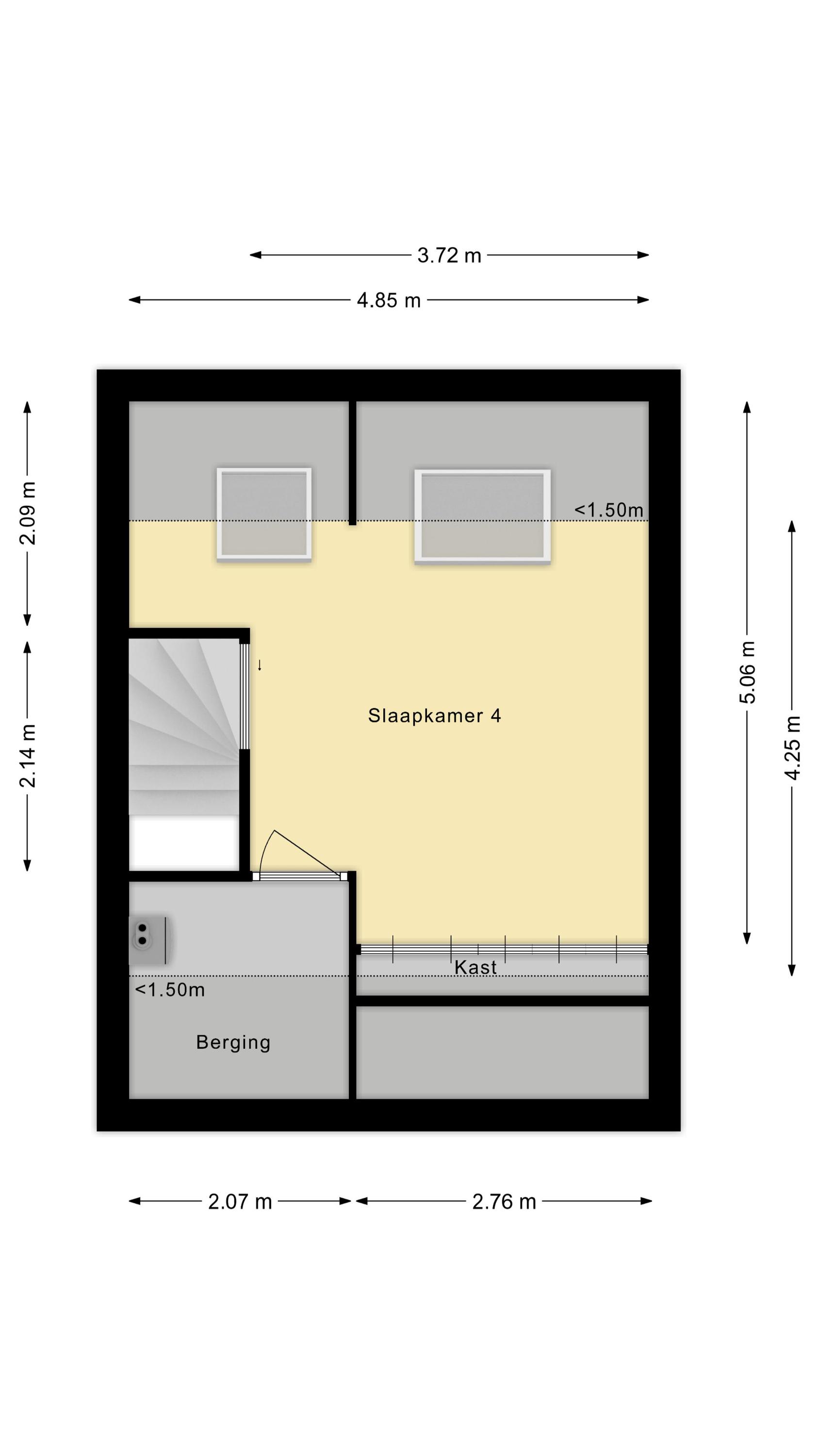 via een vaste trap is de tweede verdieping bereikbaar, hier bevindt zich een royale vierde slaapkamer, evenals veel bergruimte en een aparte ruimte met de opstelling van de cv-installatie.