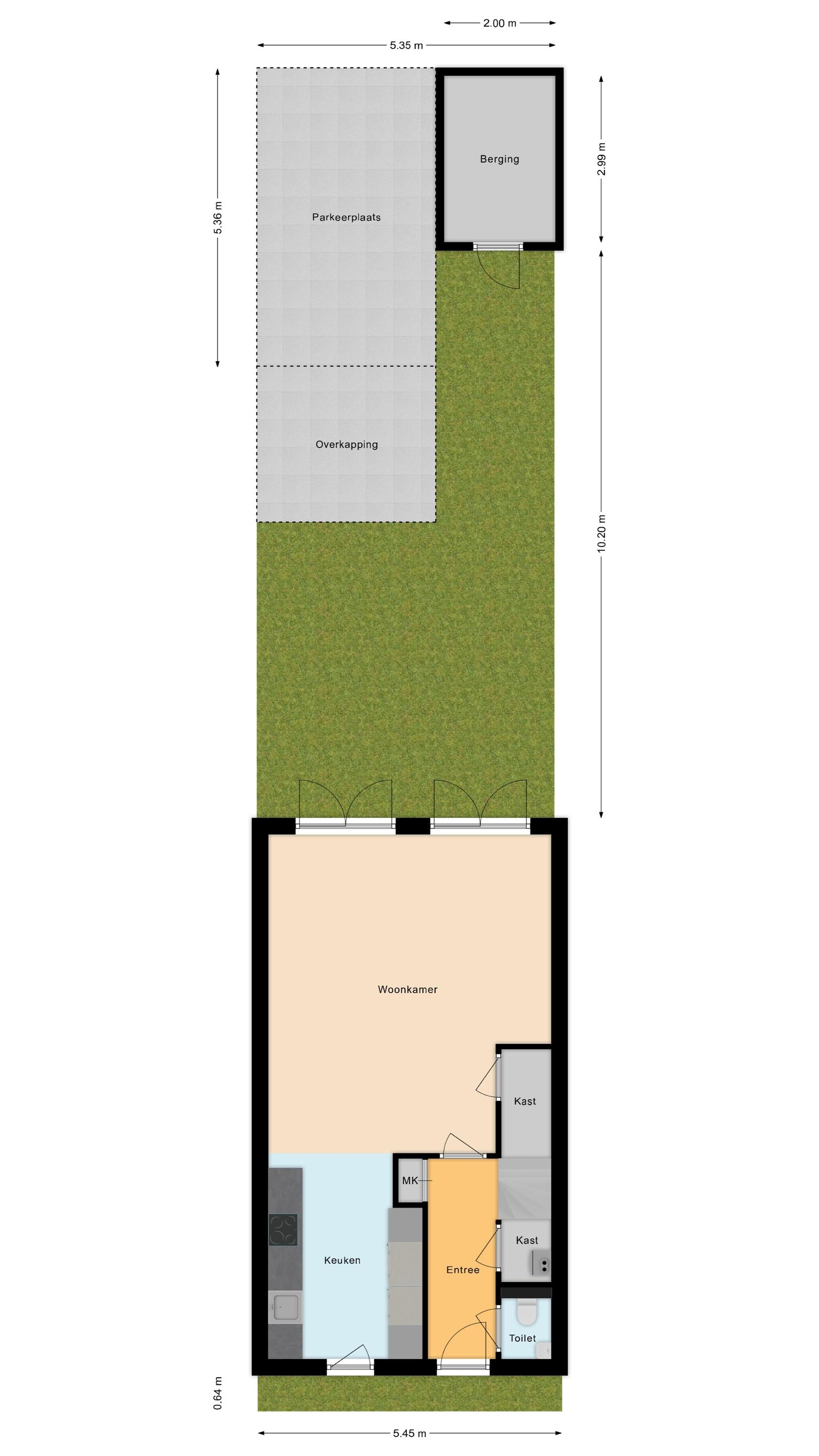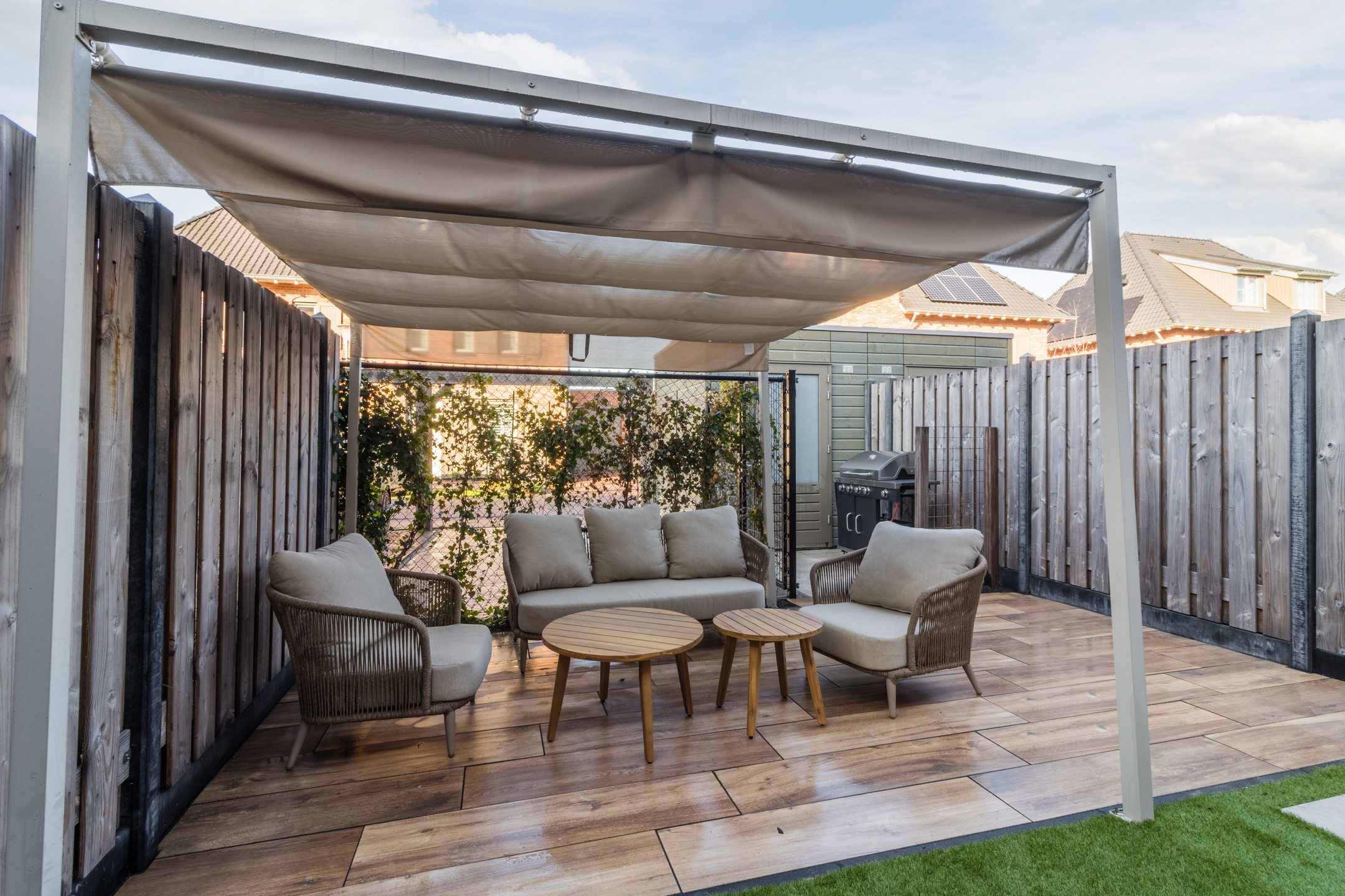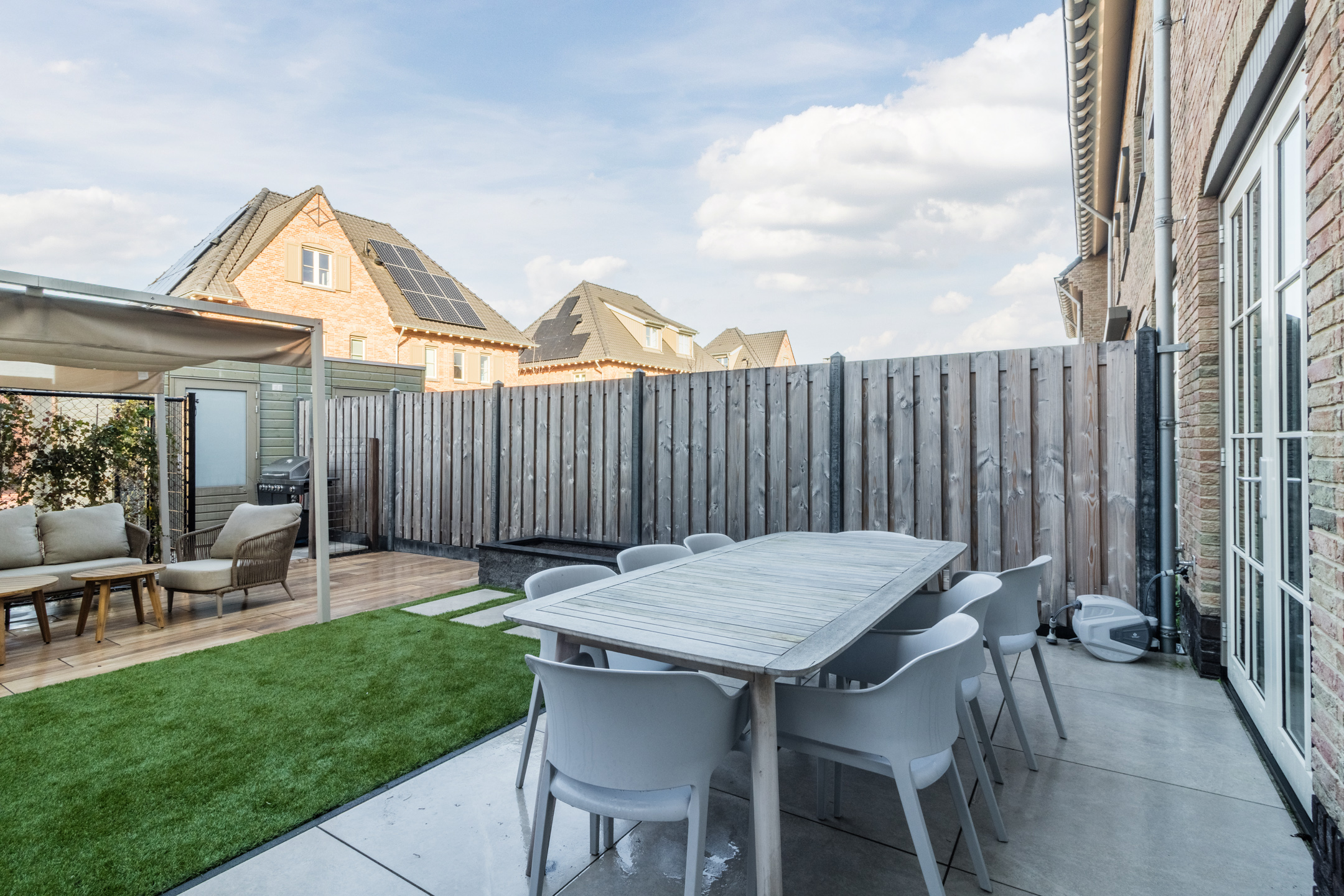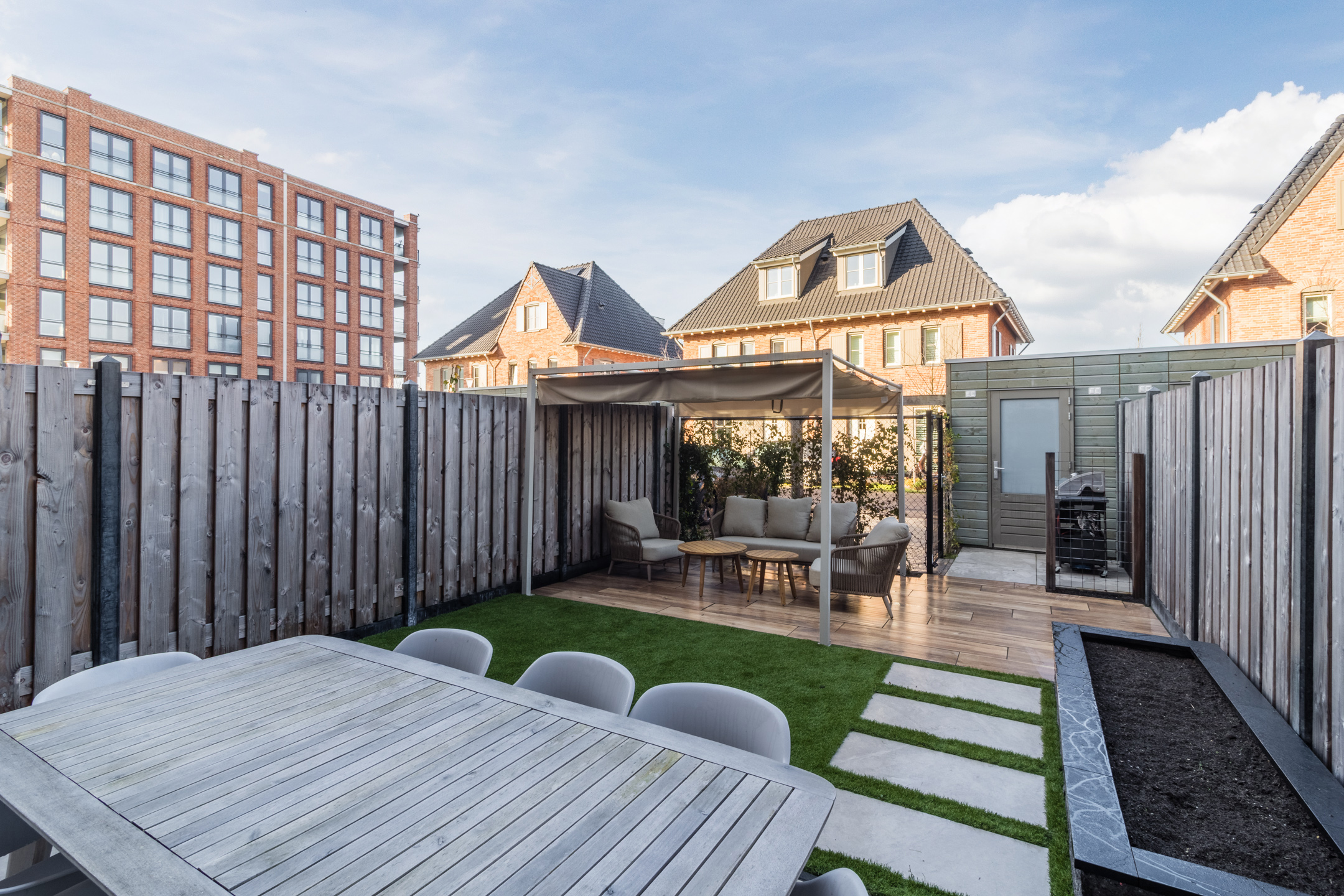 Tuin: de zonnige tuin is strak aangelegd en voorzien van een pergola en een vrijstaande berging met elektra. Daarnaast beschikt de woning over een parkeerplaats op eigen terrein.