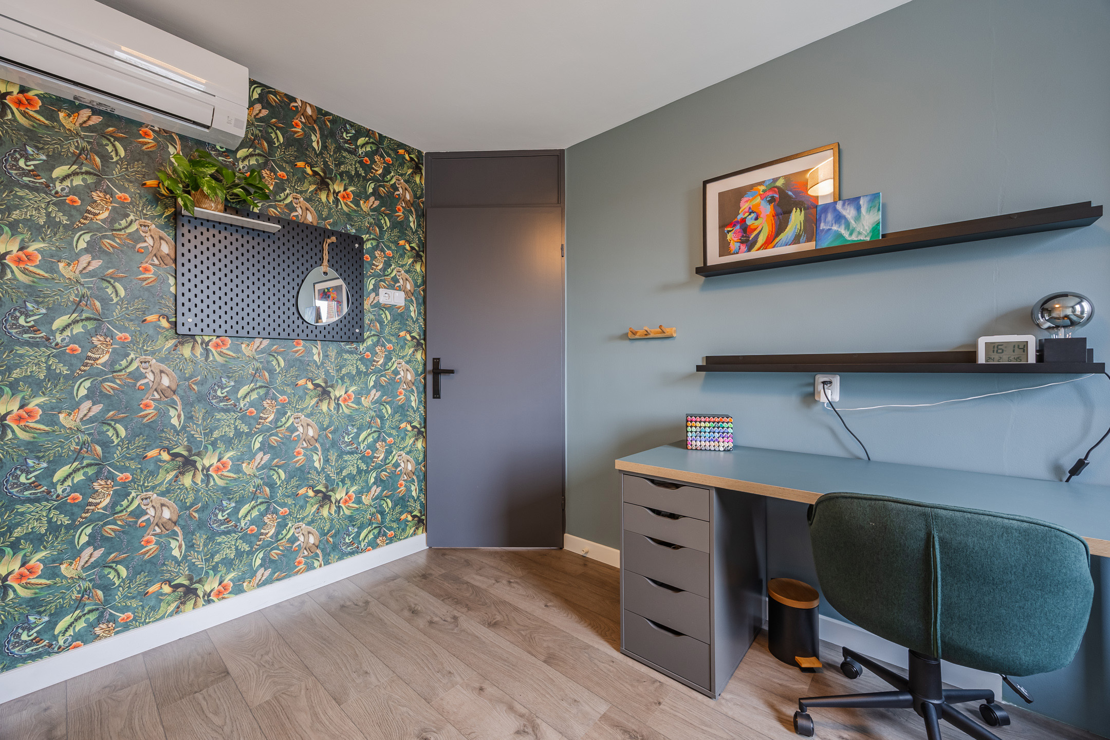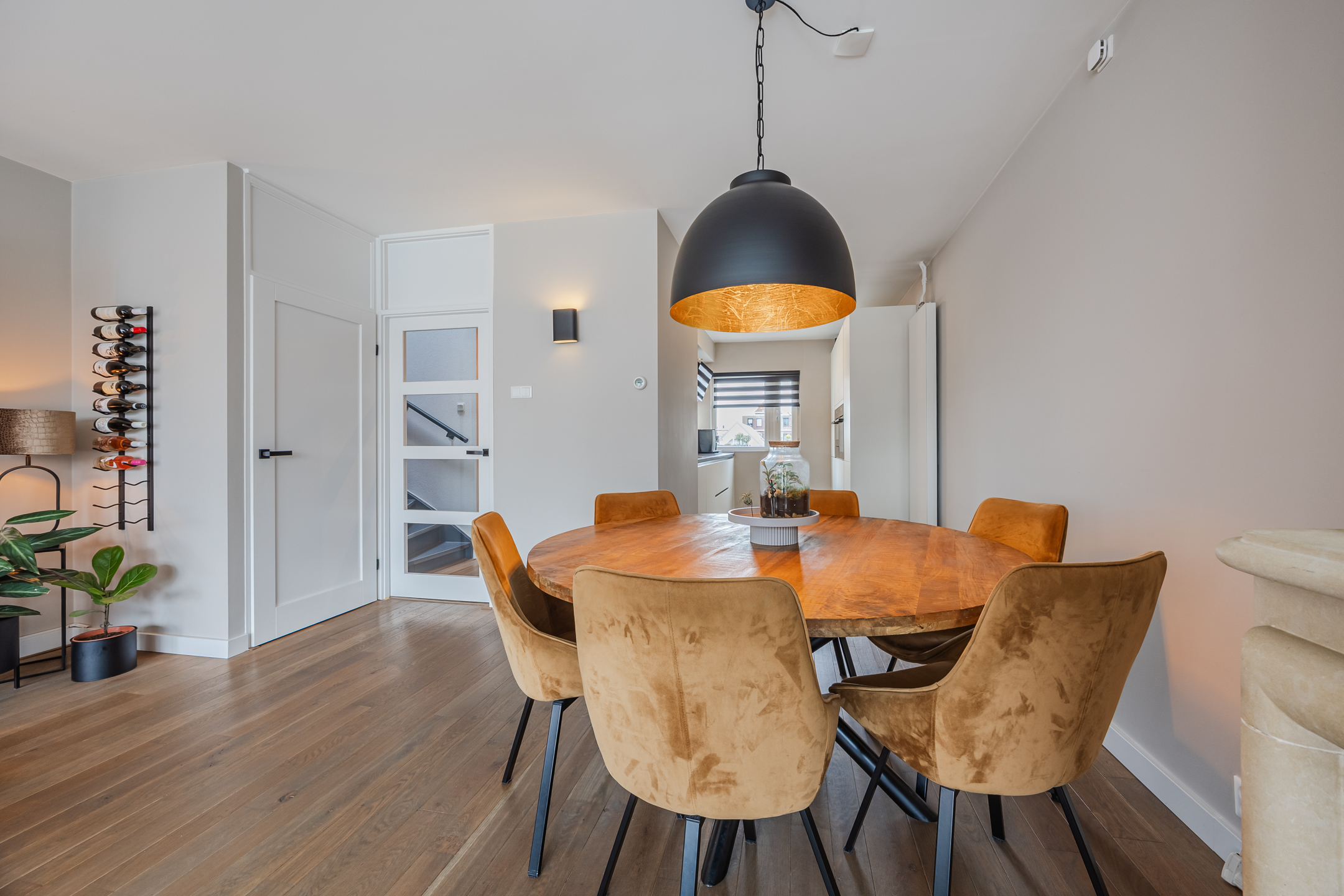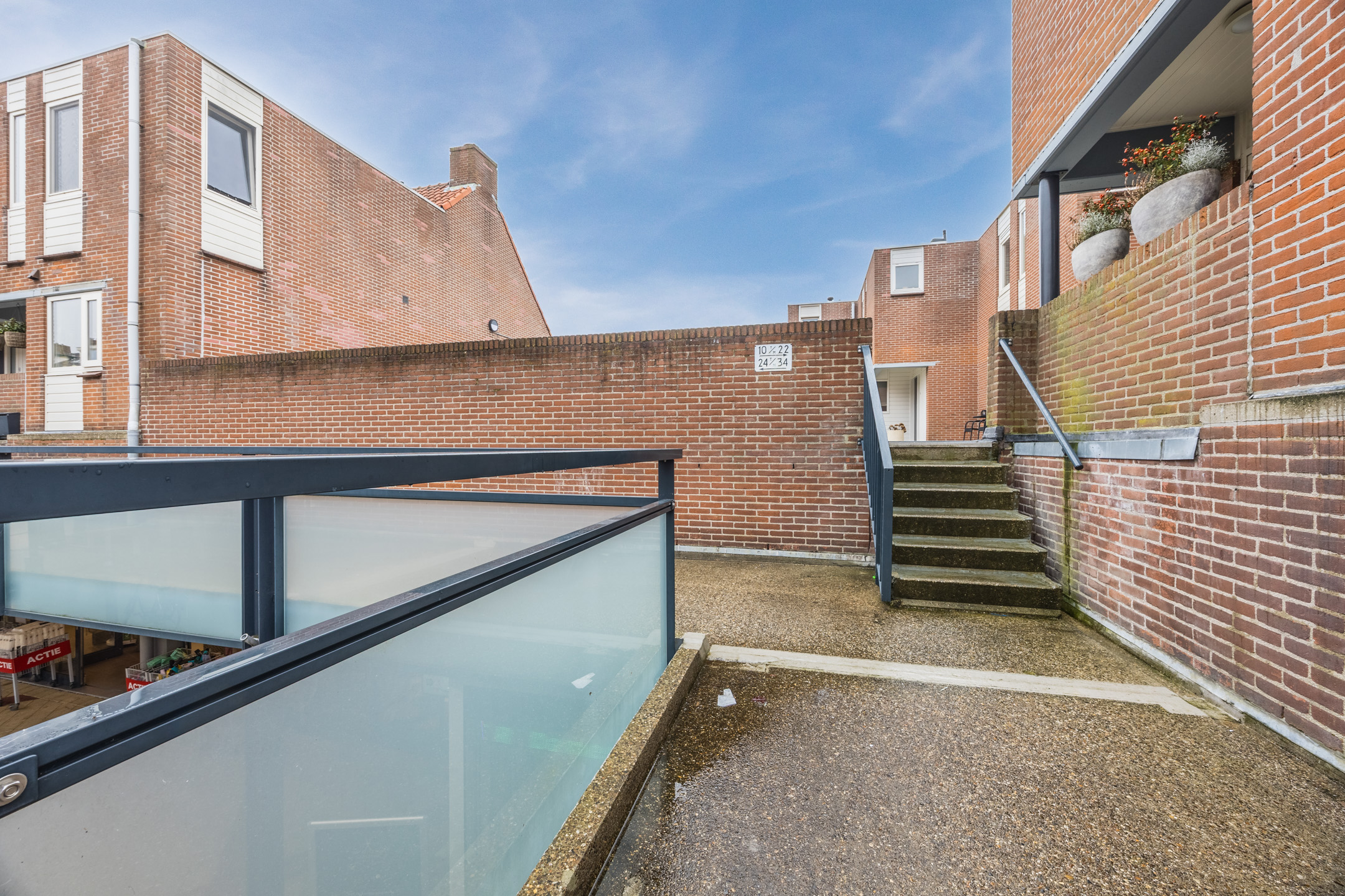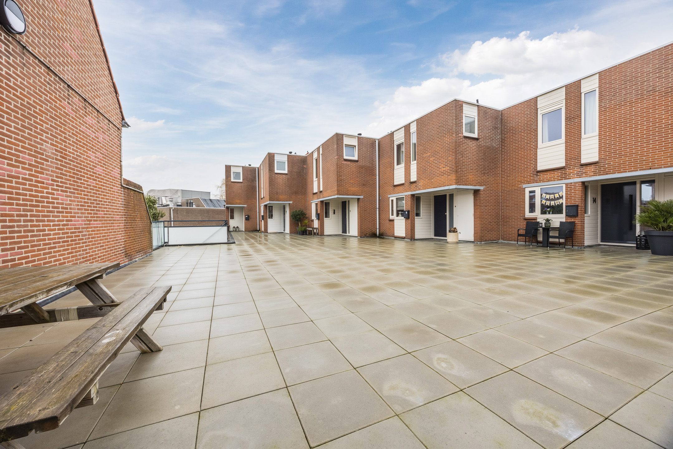 Via het gezamenlijke ruime dakterras bereikt u de entree van de woning. In de hal bevindt zich het toilet (vernieuwd in 2025 en voorzien van vloerverwarming), de trap naar de verdieping en veel bergruimte voor uw jassen en tassen.