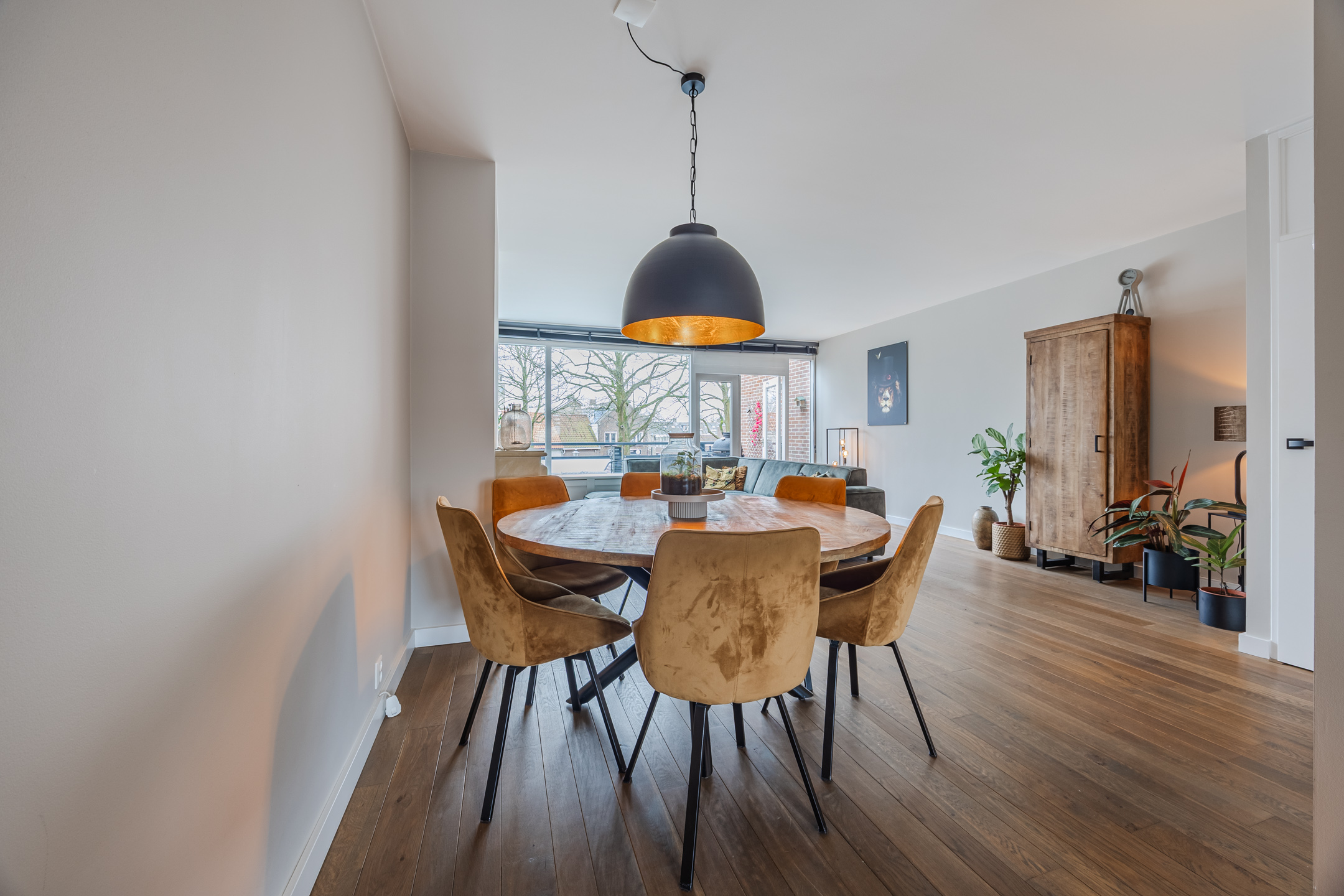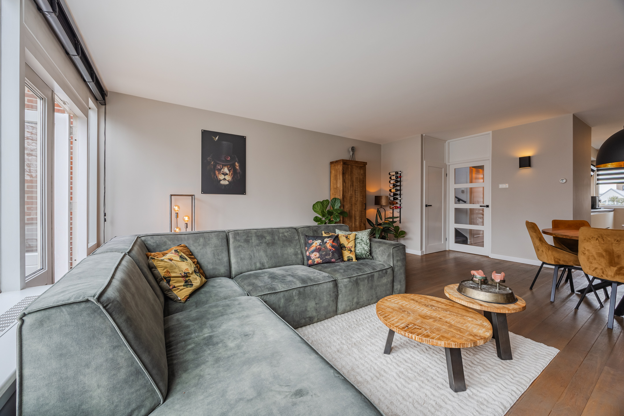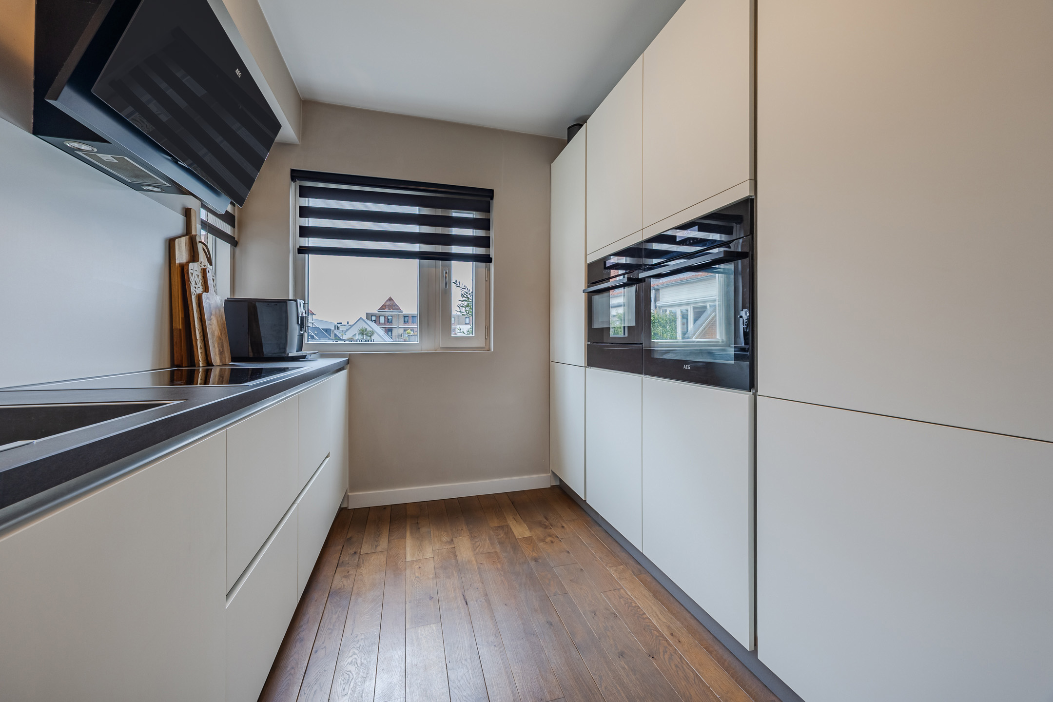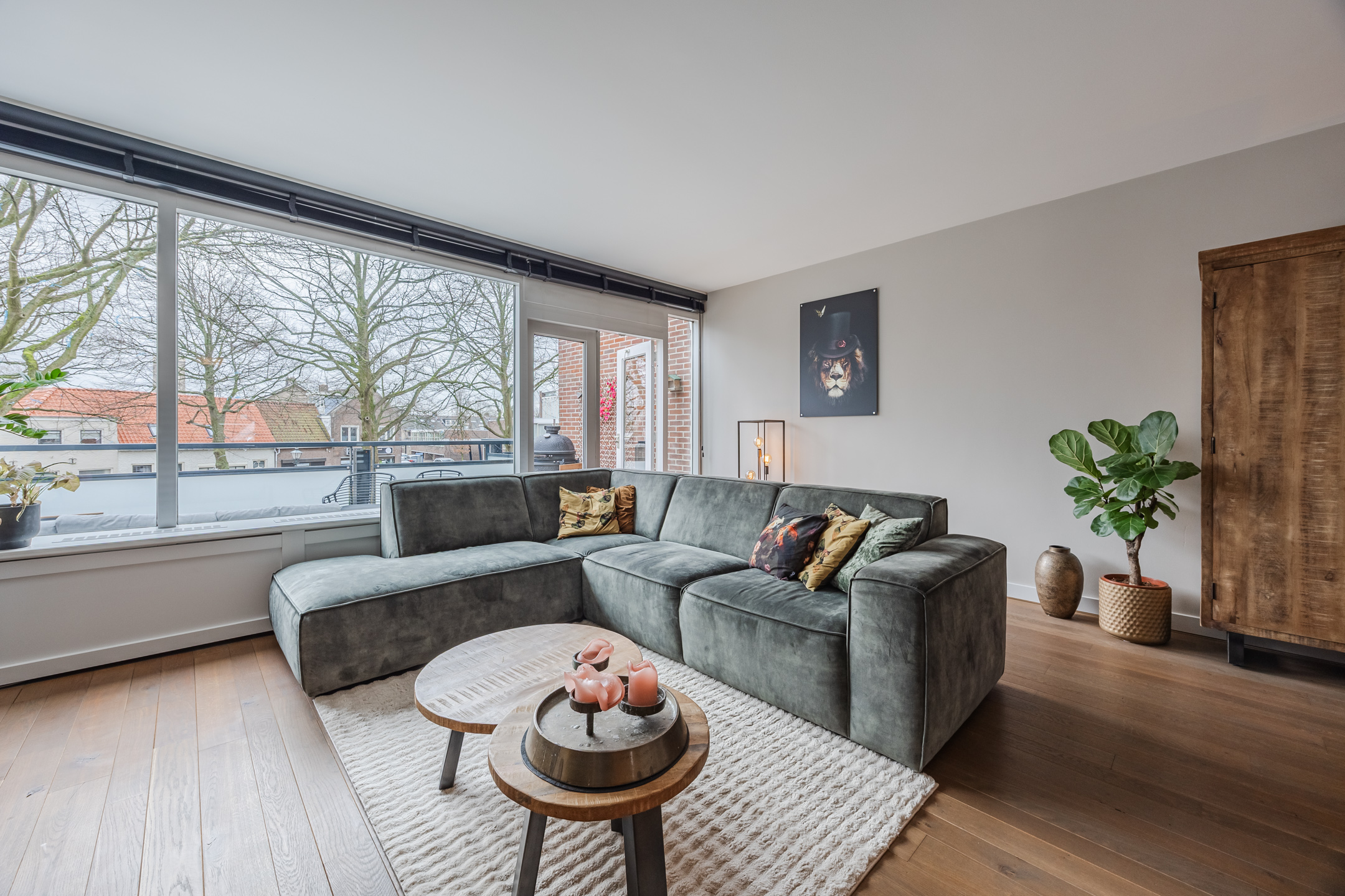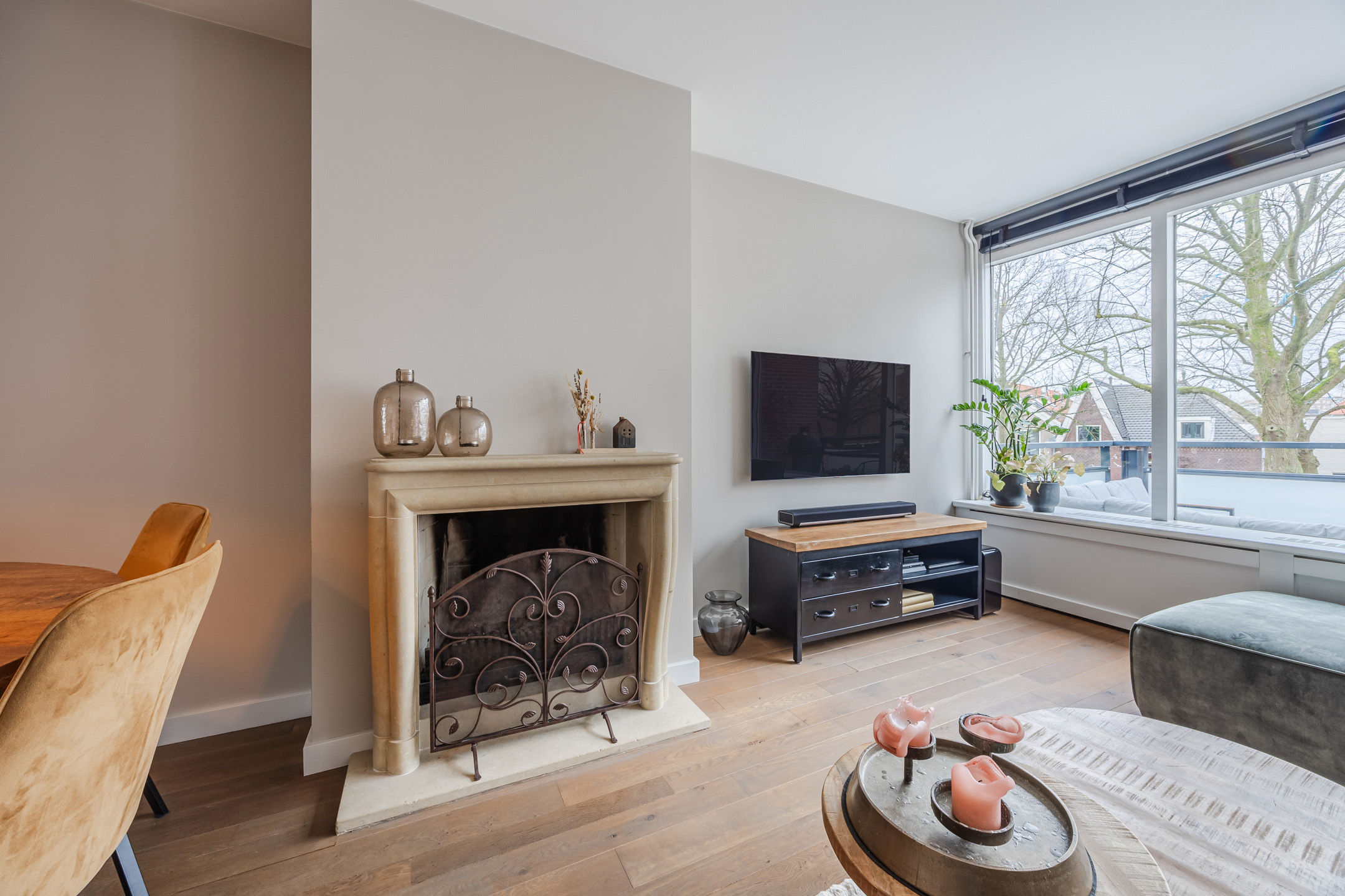 De ruime woonkamer is voorzien van een massief houten vloer, een sfeervolle werkende openhaard en toegang tot een riant balkon gelegen op het zonnige zuiden. Aan de voorzijde van de woning bevindt zich de luxe keuken (slechts 7 jaar oud), die is voorzien van een Quooker, vaatwasmachine, 4-pits inductie kookplaats, oven én combi-oven, koelkast en vriezer (voornamelijk AEG apparatuur).