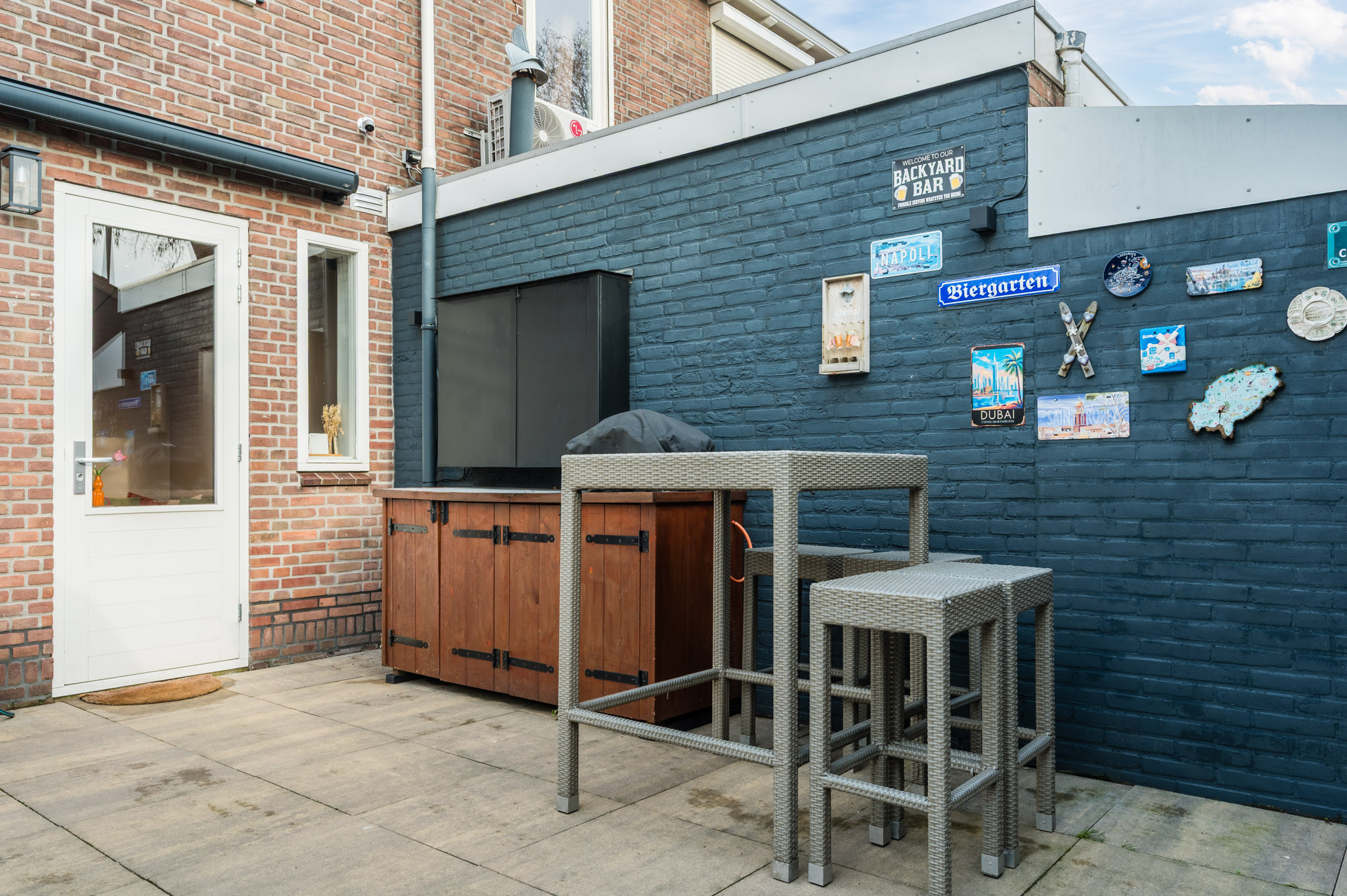 De verzorgde achtertuin is gunstig gelegen op het zonnige zuiden. De tuin beschikt over een stenen berging, een achterom en een praktische overkapping.