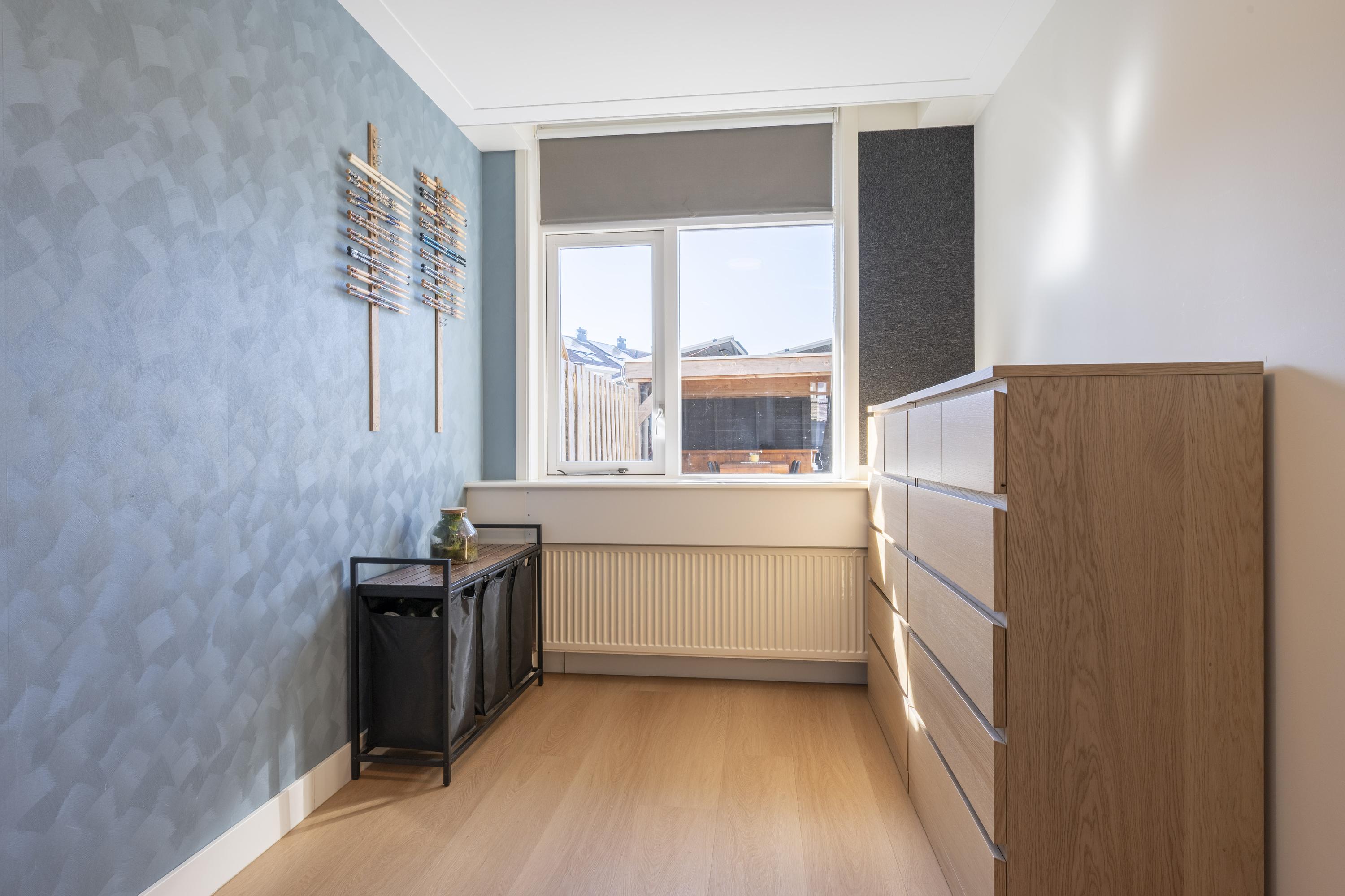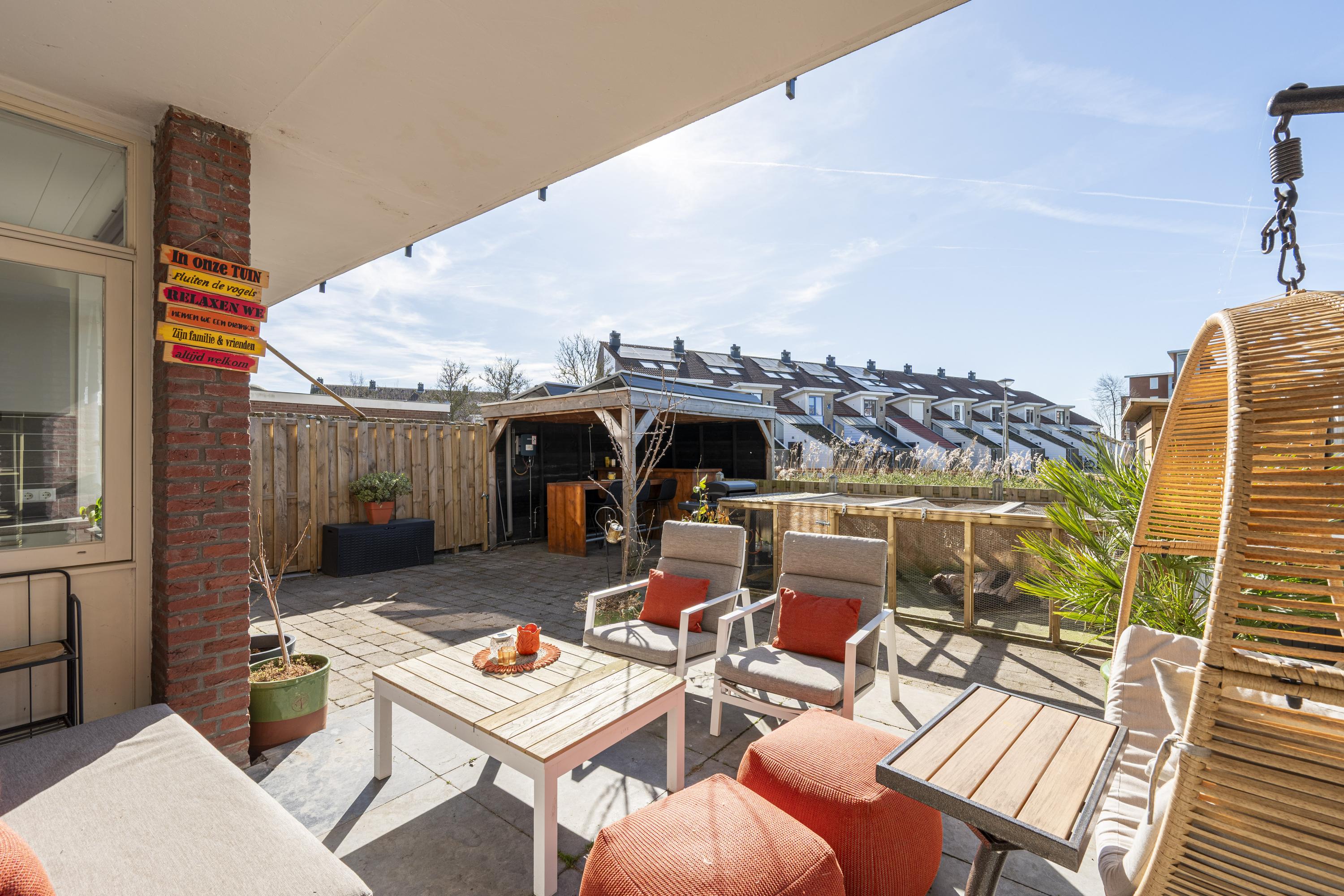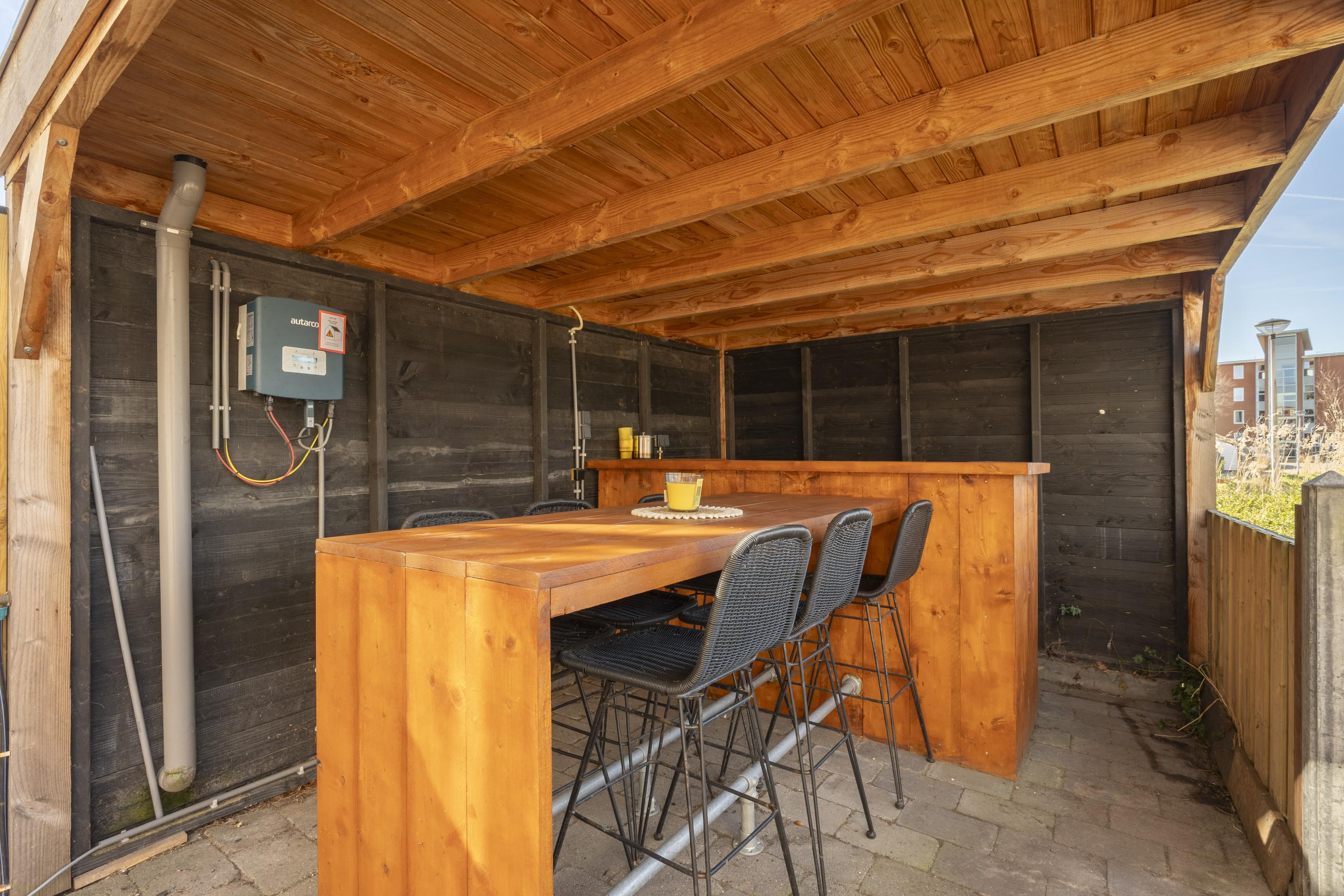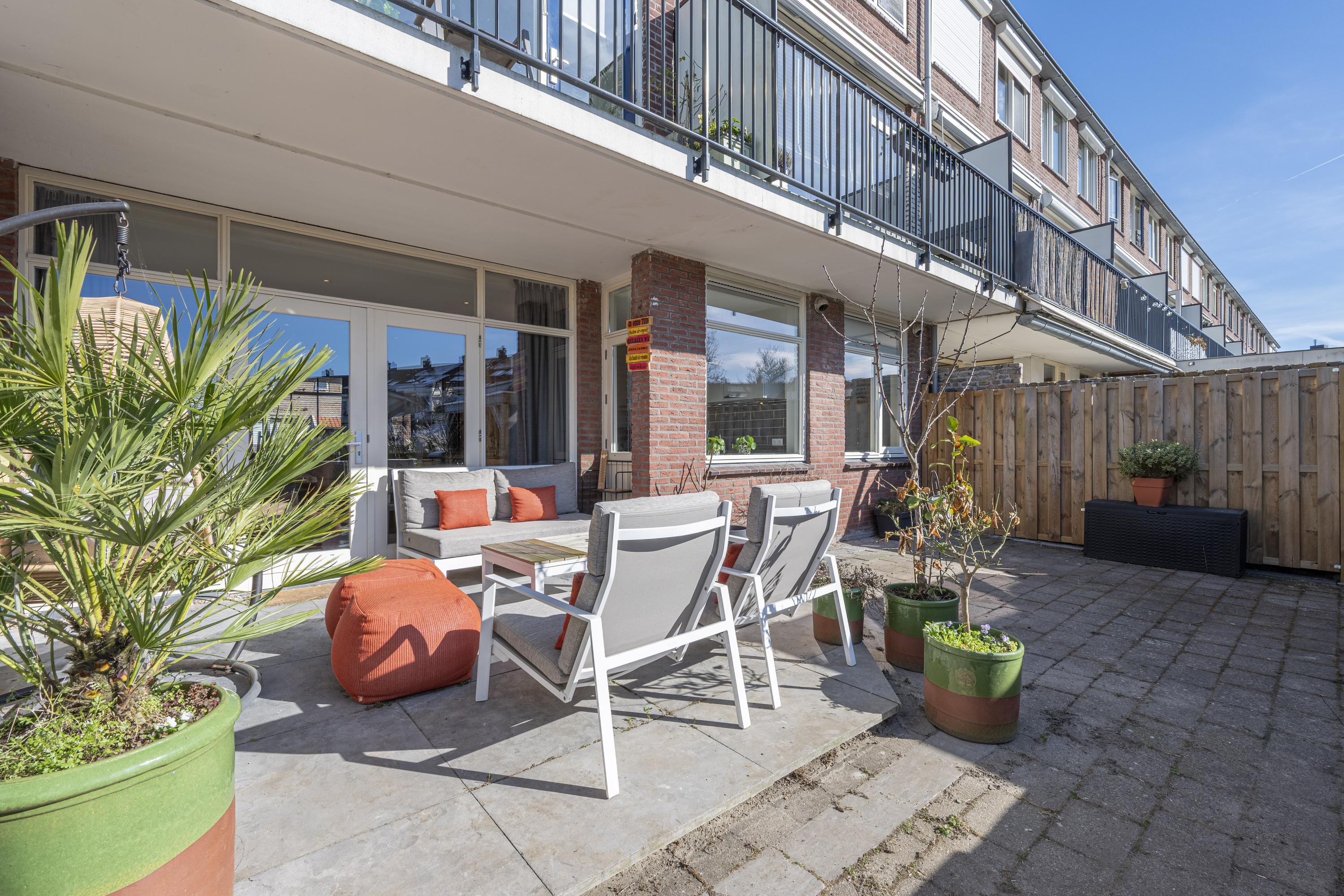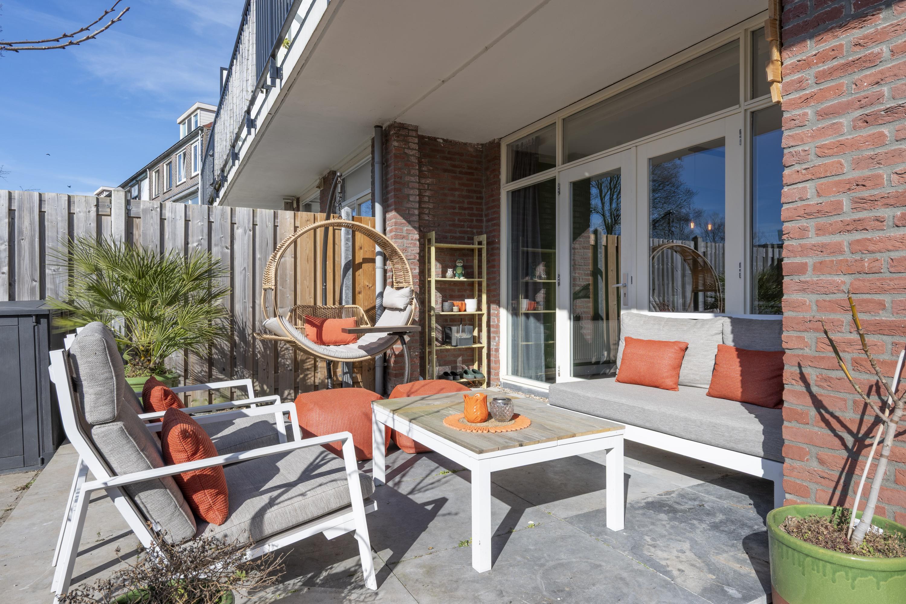 De achtertuin beschikt over een gezellige veranda en biedt een weids uitzicht. Door de gunstige ligging op het zuidwesten kunt u hier al vroeg in het voorjaar van de zon genieten. De tuin is circa 8,5 meter breed en ongeveer 8 meter diep, wat zorgt voor volop buitenruimte.