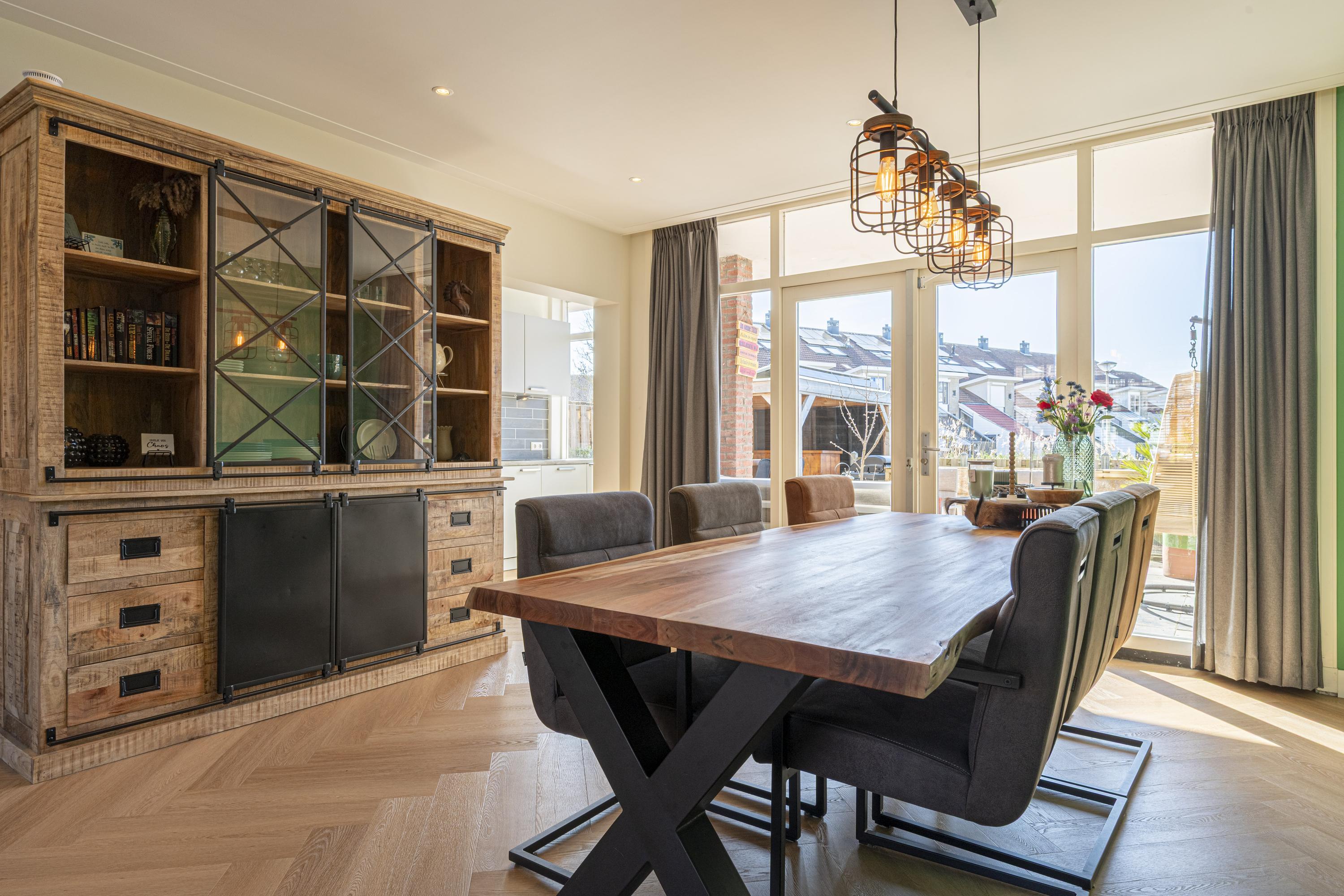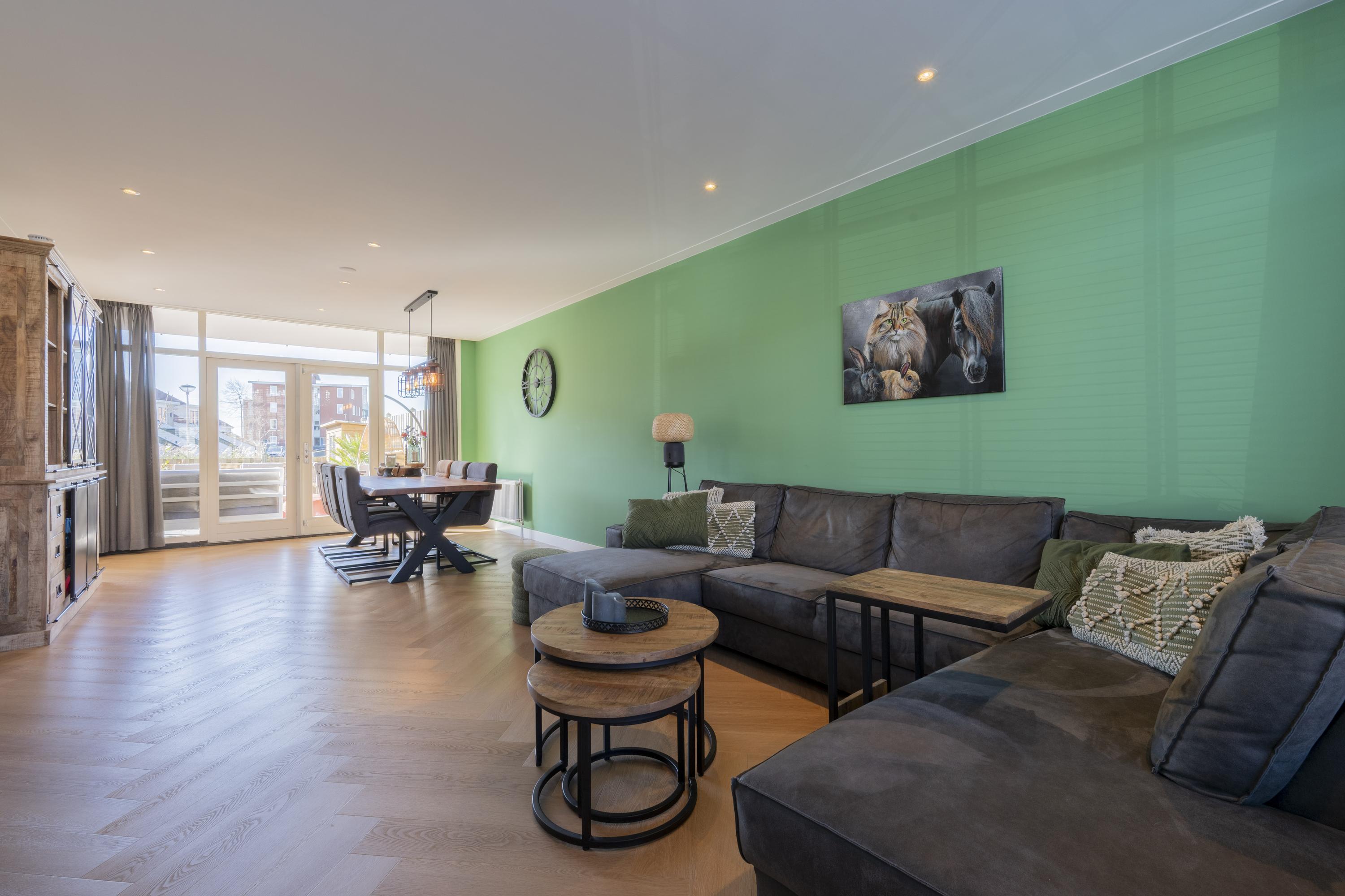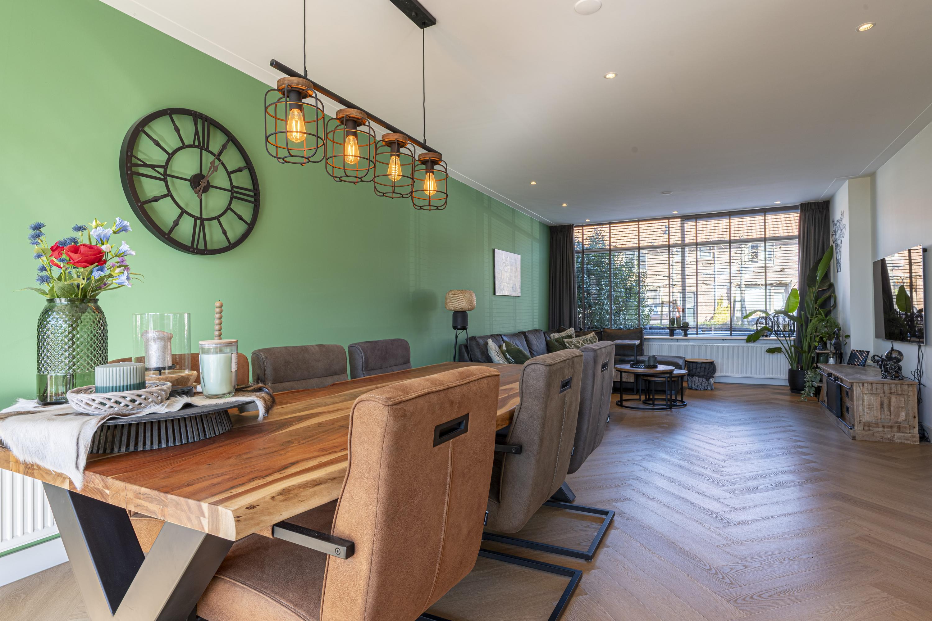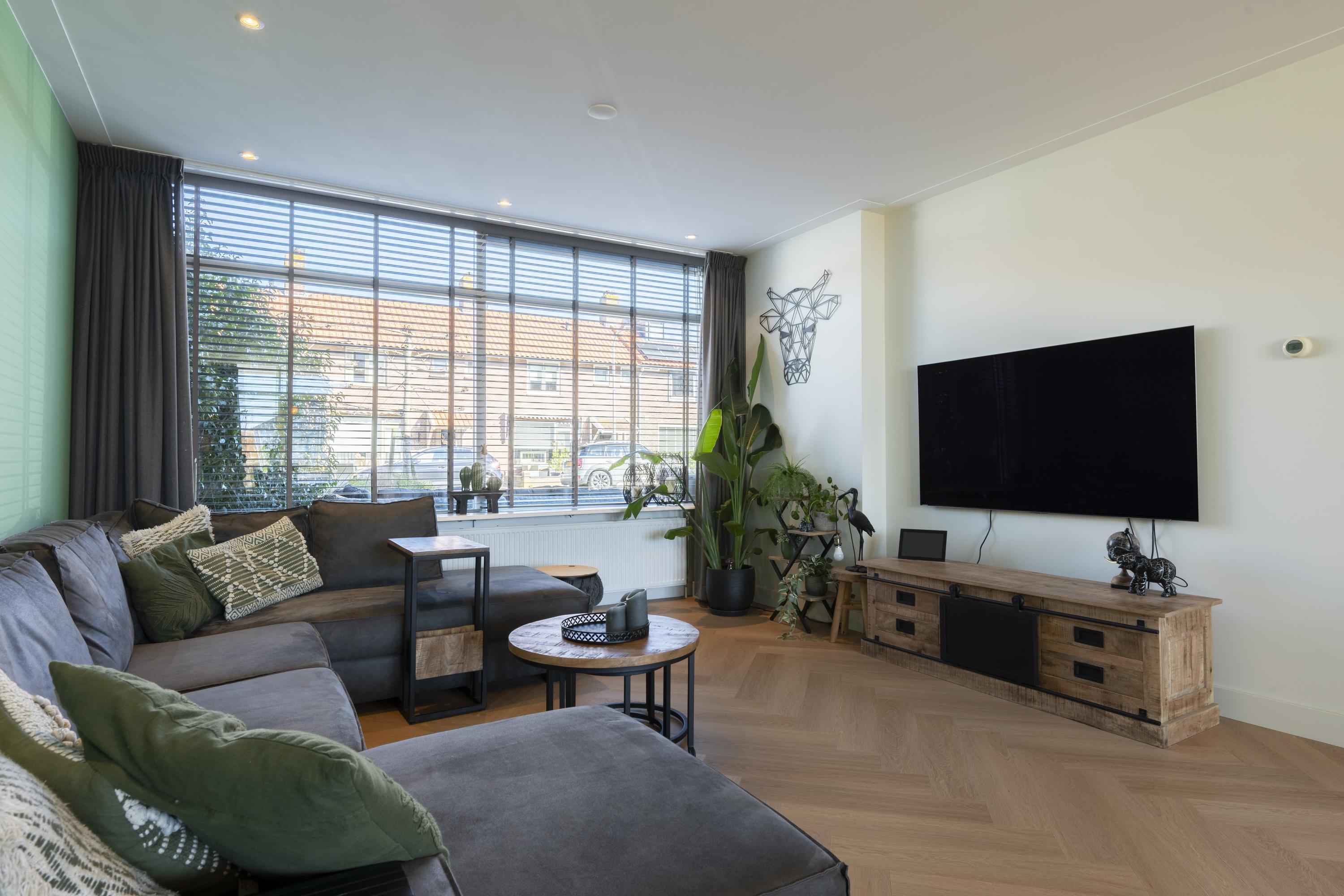 De zeer ruime doorzonwoonkamer met openslaande deuren naar de zonnige achtertuin vormt het hart van de woning. De halfopen, licht uitgevoerde moderne keuken is voorzien van diverse inbouwapparatuur. Dankzij de grote raampartijen geniet u hier van een uitstekende daglichttoetreding en een prettig uitzicht op de groene omgeving en de rustige straat.
