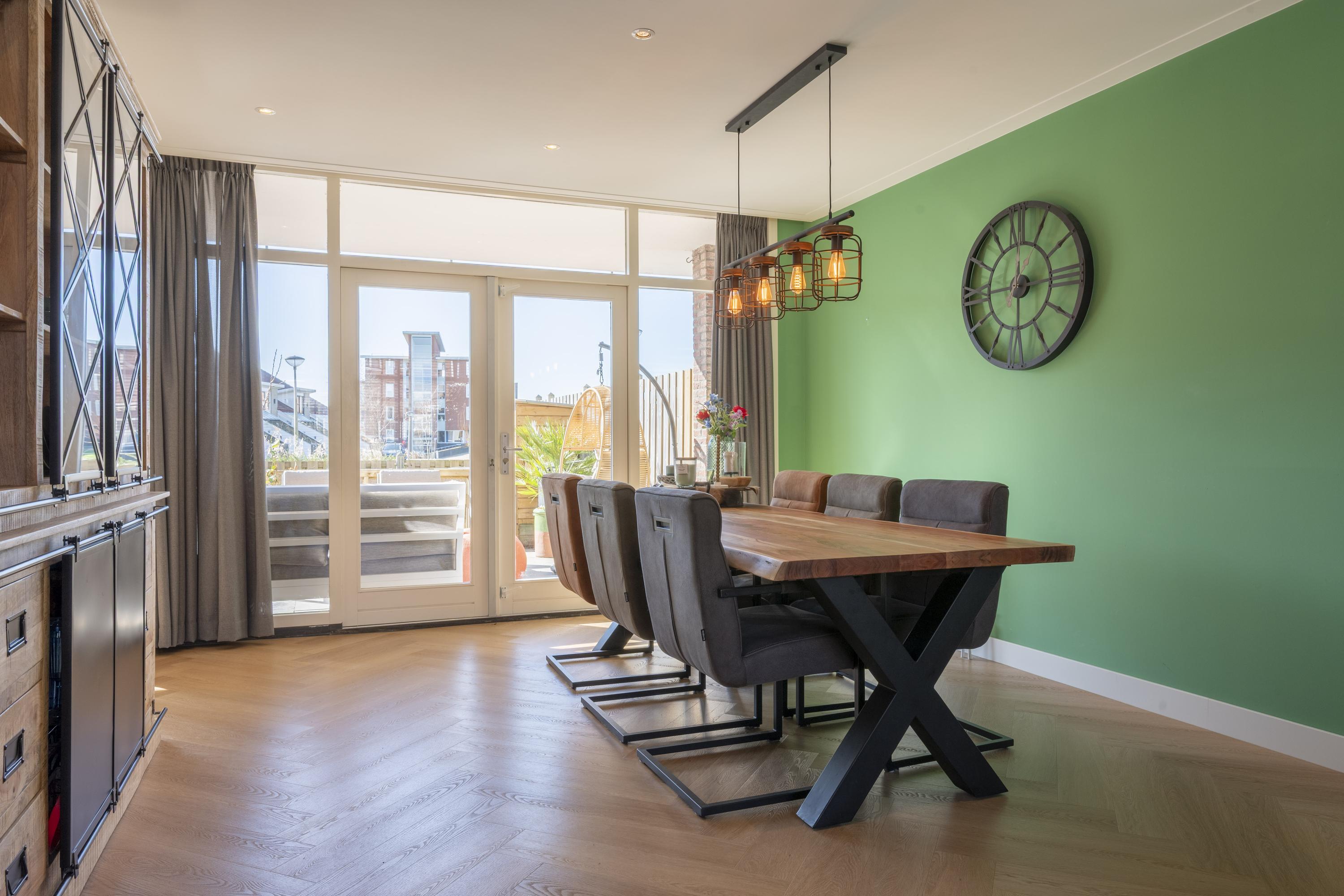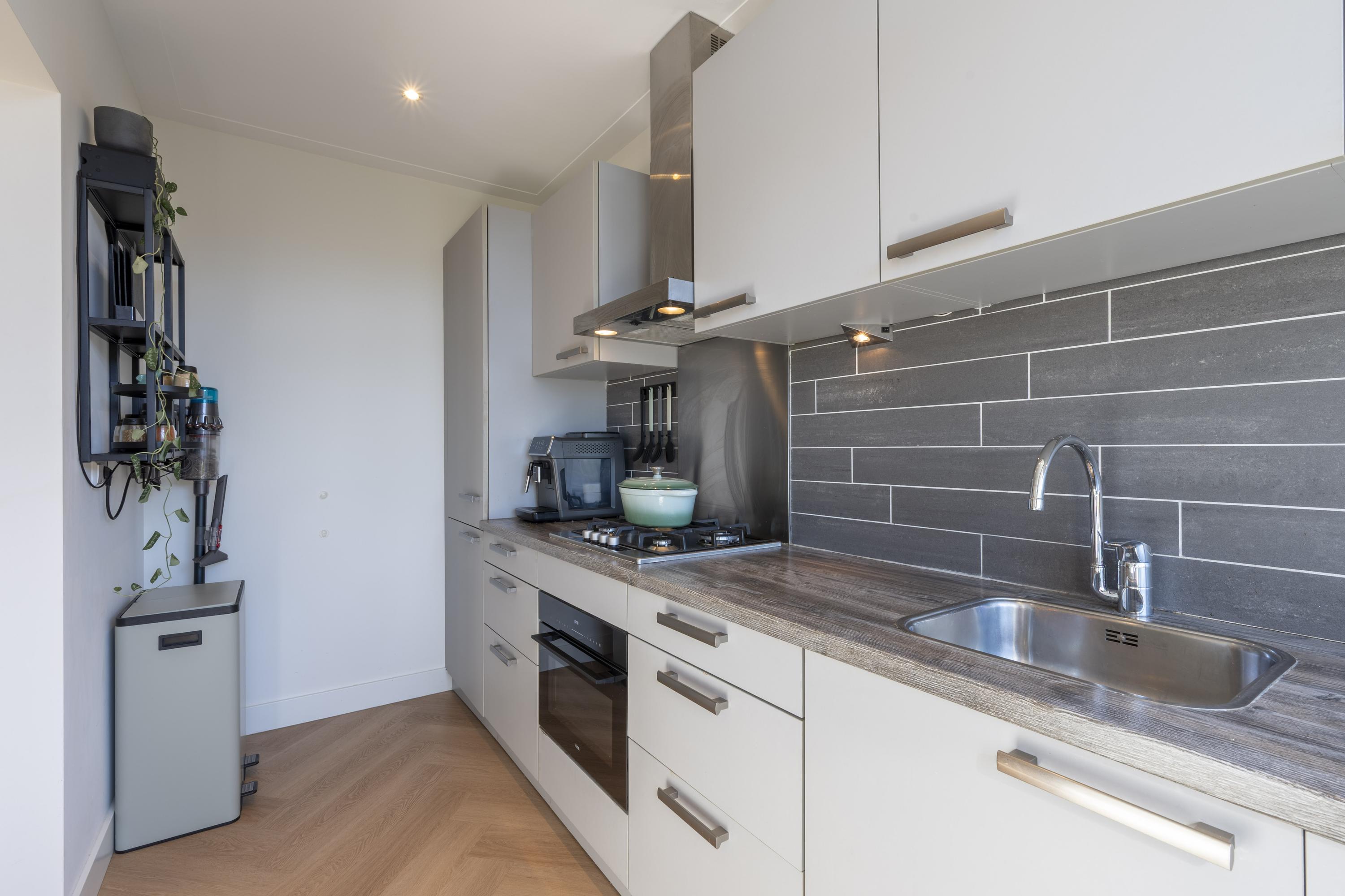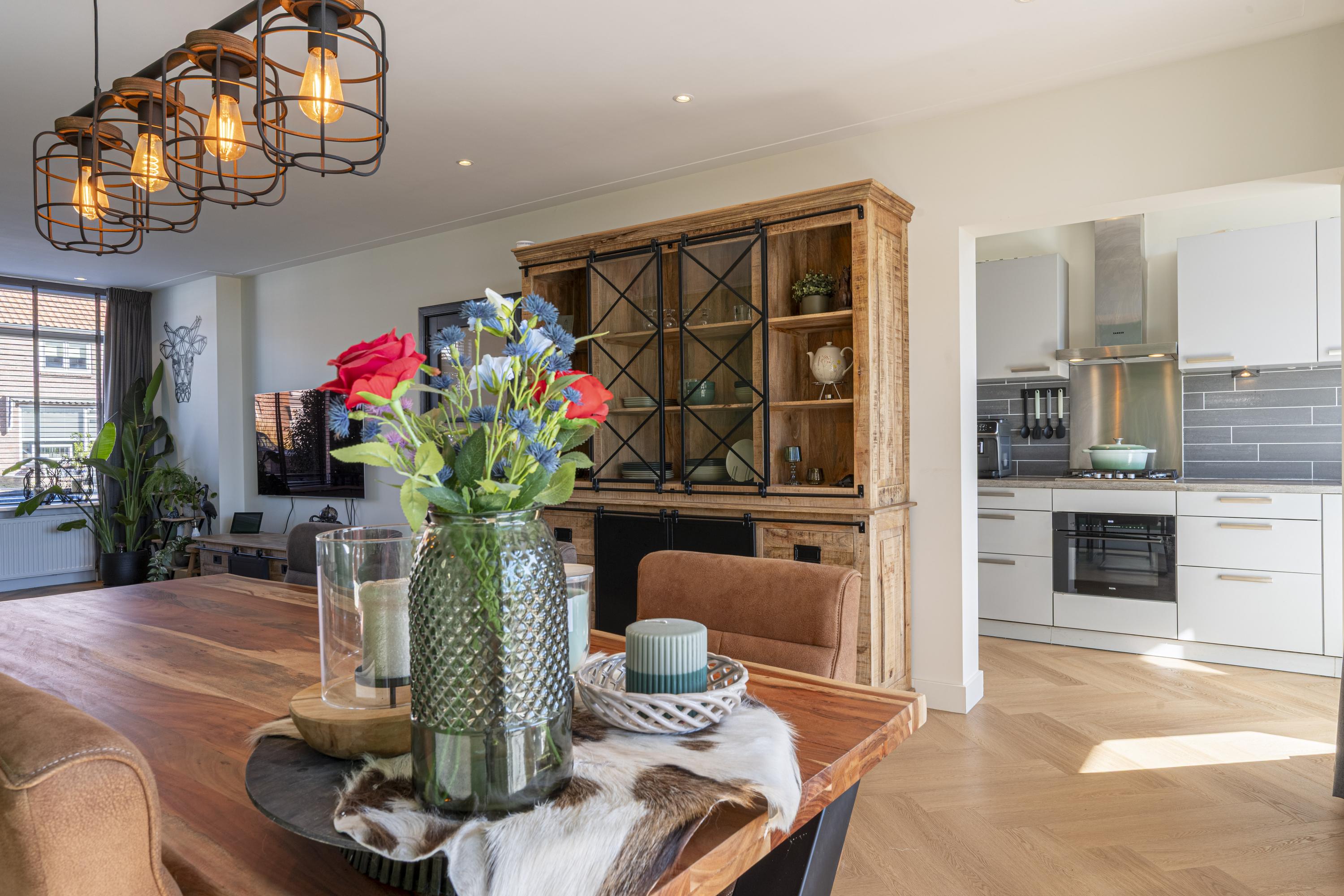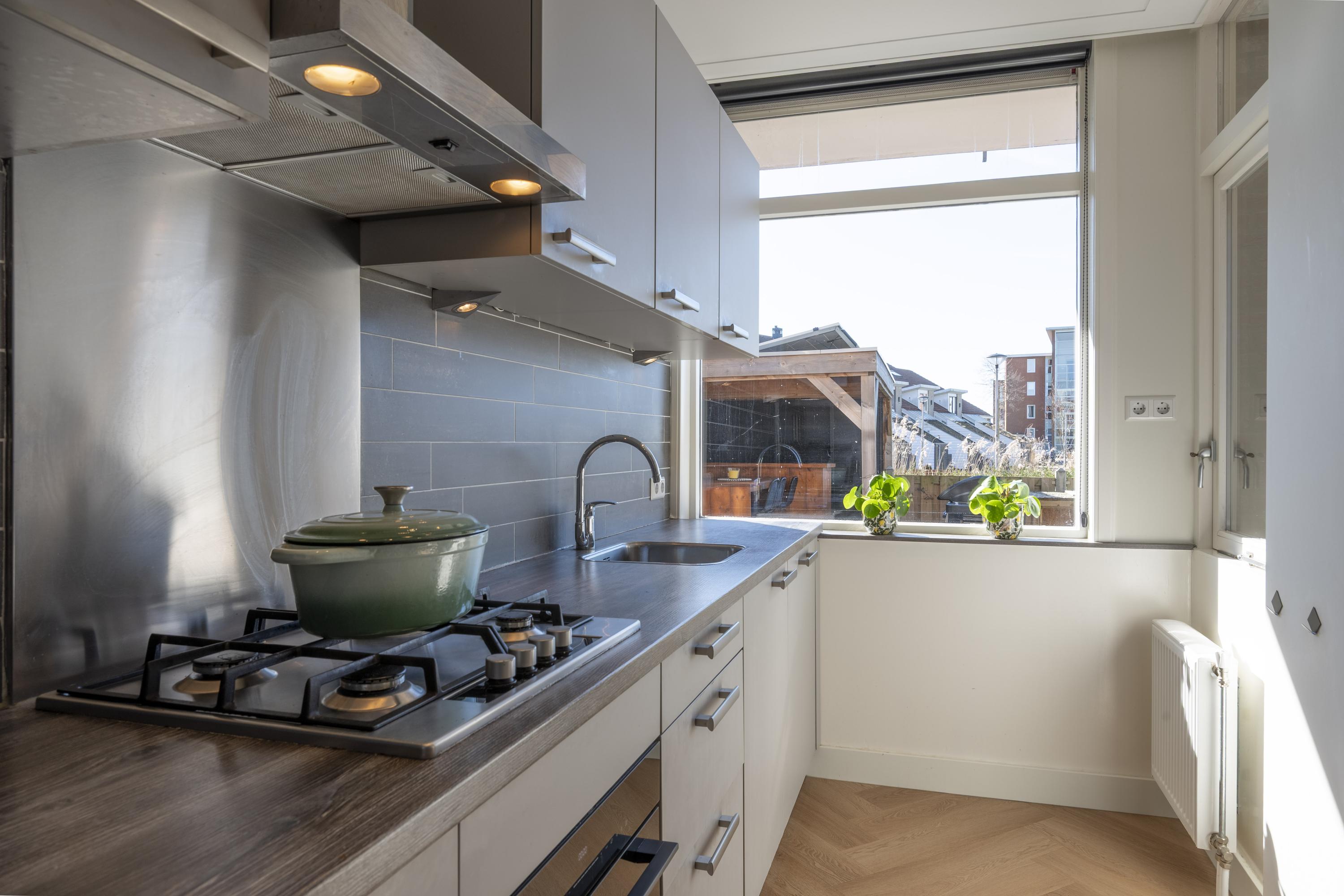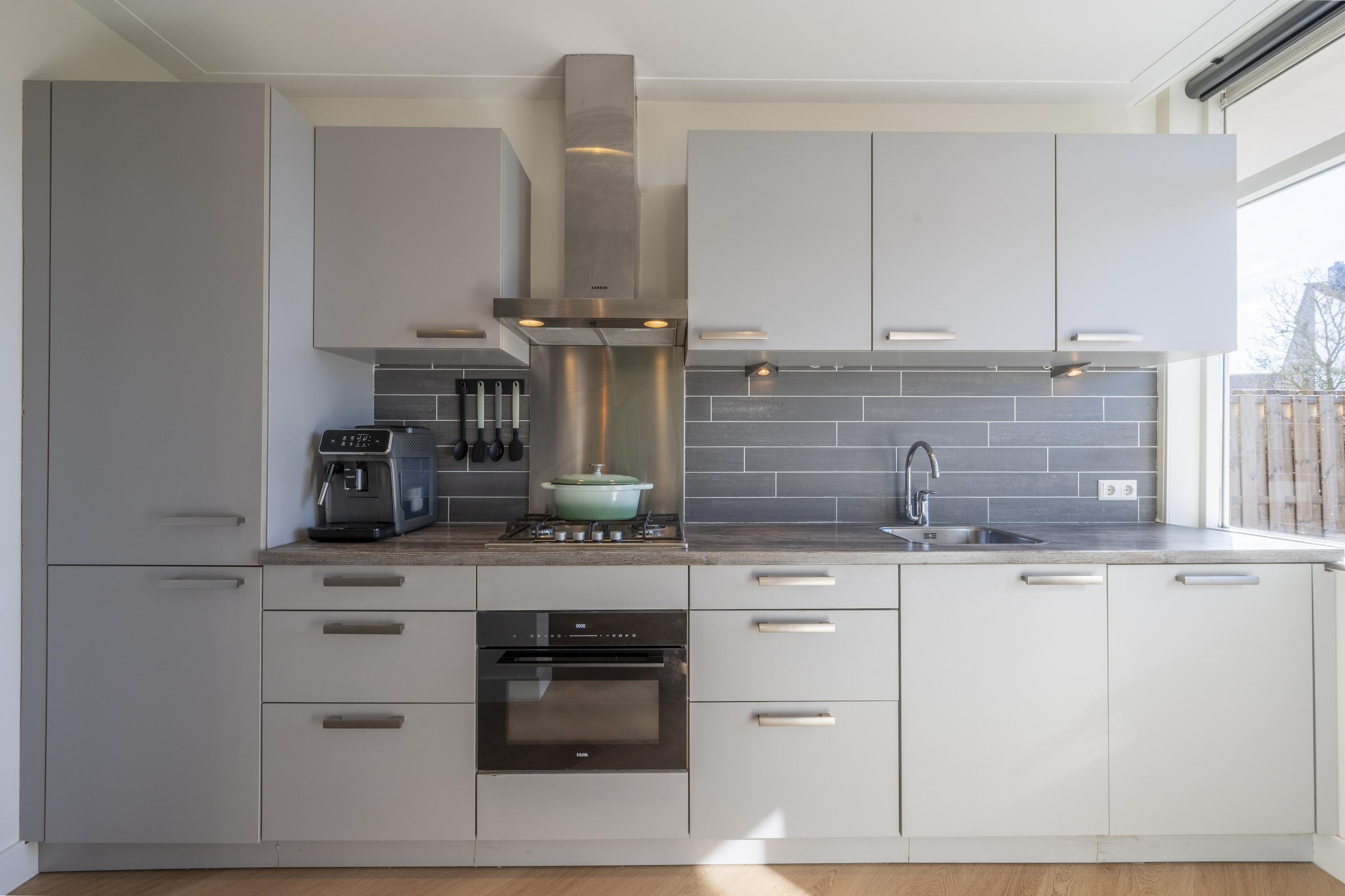 De zeer ruime doorzonwoonkamer met openslaande deuren naar de zonnige achtertuin vormt het hart van de woning. De halfopen, licht uitgevoerde moderne keuken is voorzien van diverse inbouwapparatuur. Dankzij de grote raampartijen geniet u hier van een uitstekende daglichttoetreding en een prettig uitzicht op de groene omgeving en de rustige straat.