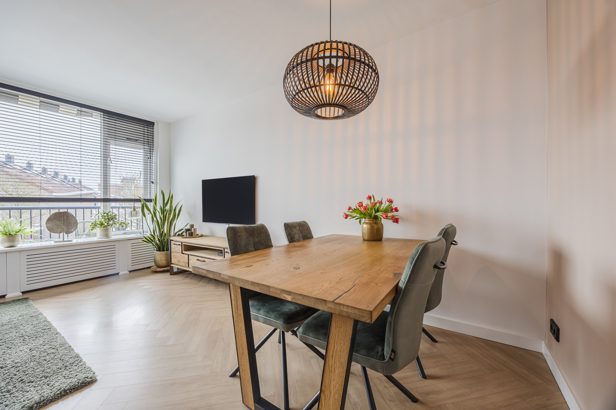 De woning is keurig afgewerkt en voorzien van een stijlvolle visgraat laminaat vloer, een nette keuken en een moderne badkamer. Dankzij de gunstige ligging geniet u al bij de eerste zonnestralen van het ruime balkon, waar het heerlijk vertoeven is tot in de avond.
