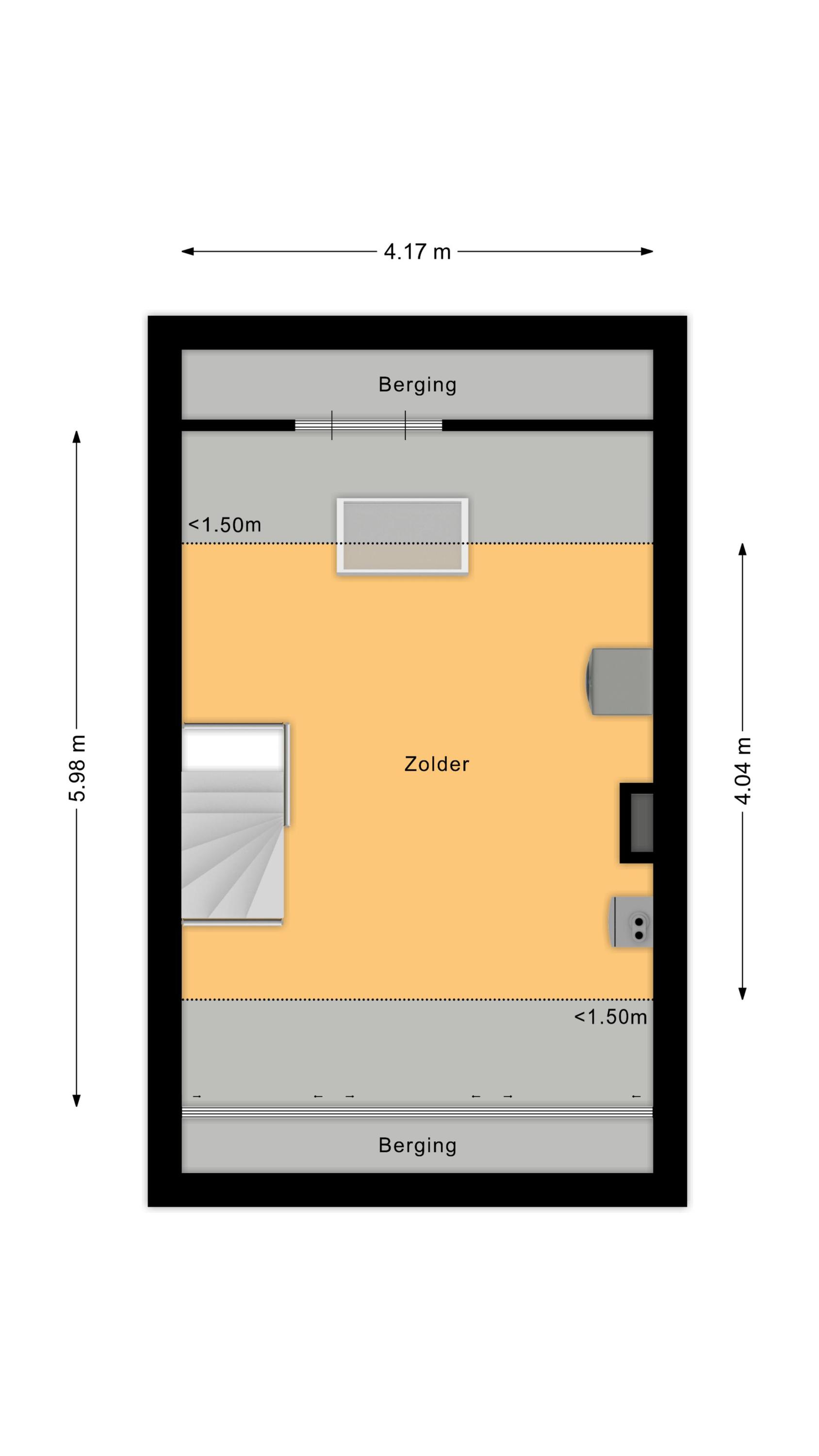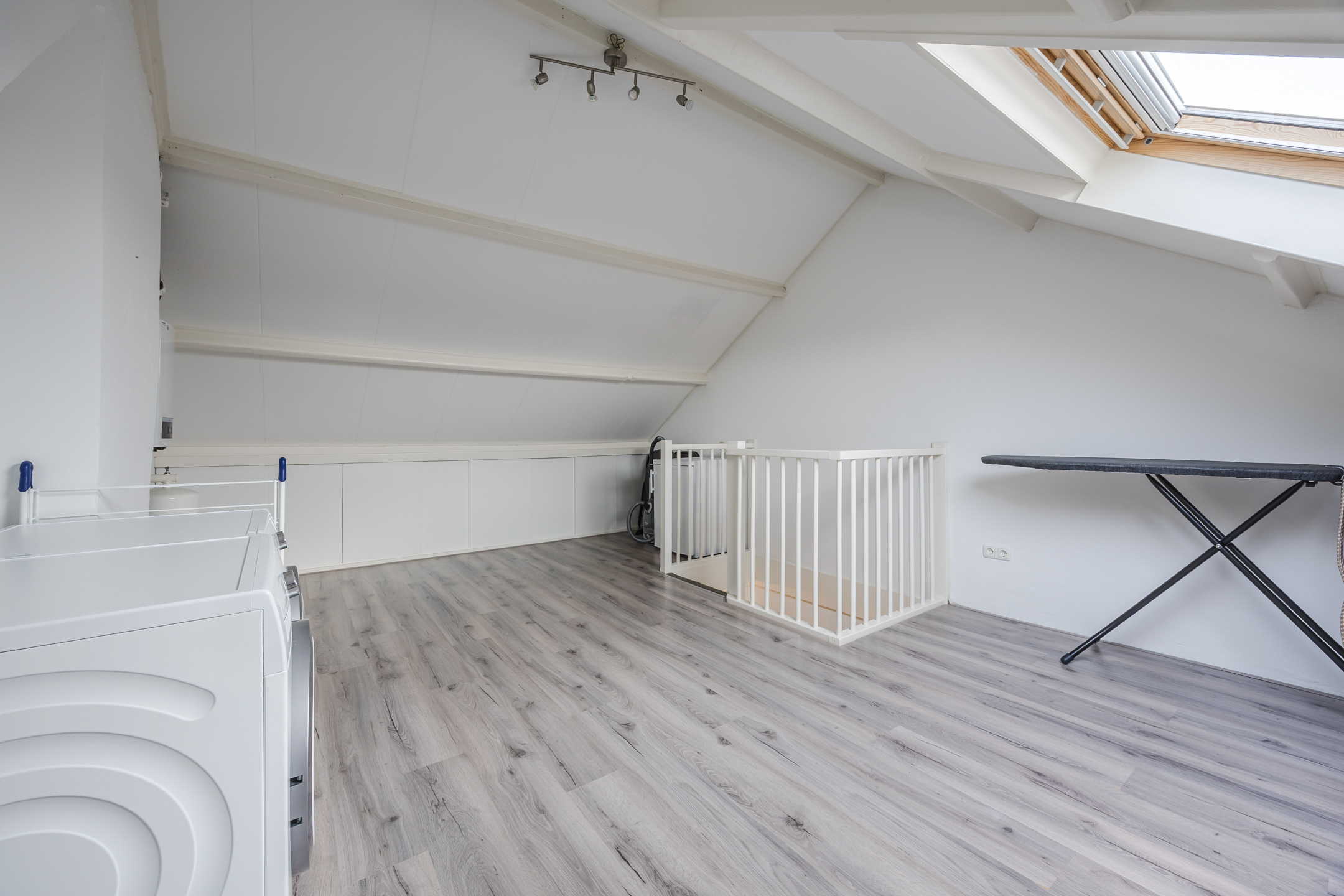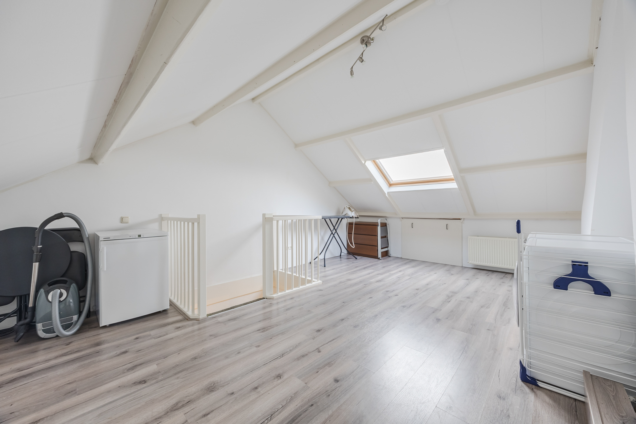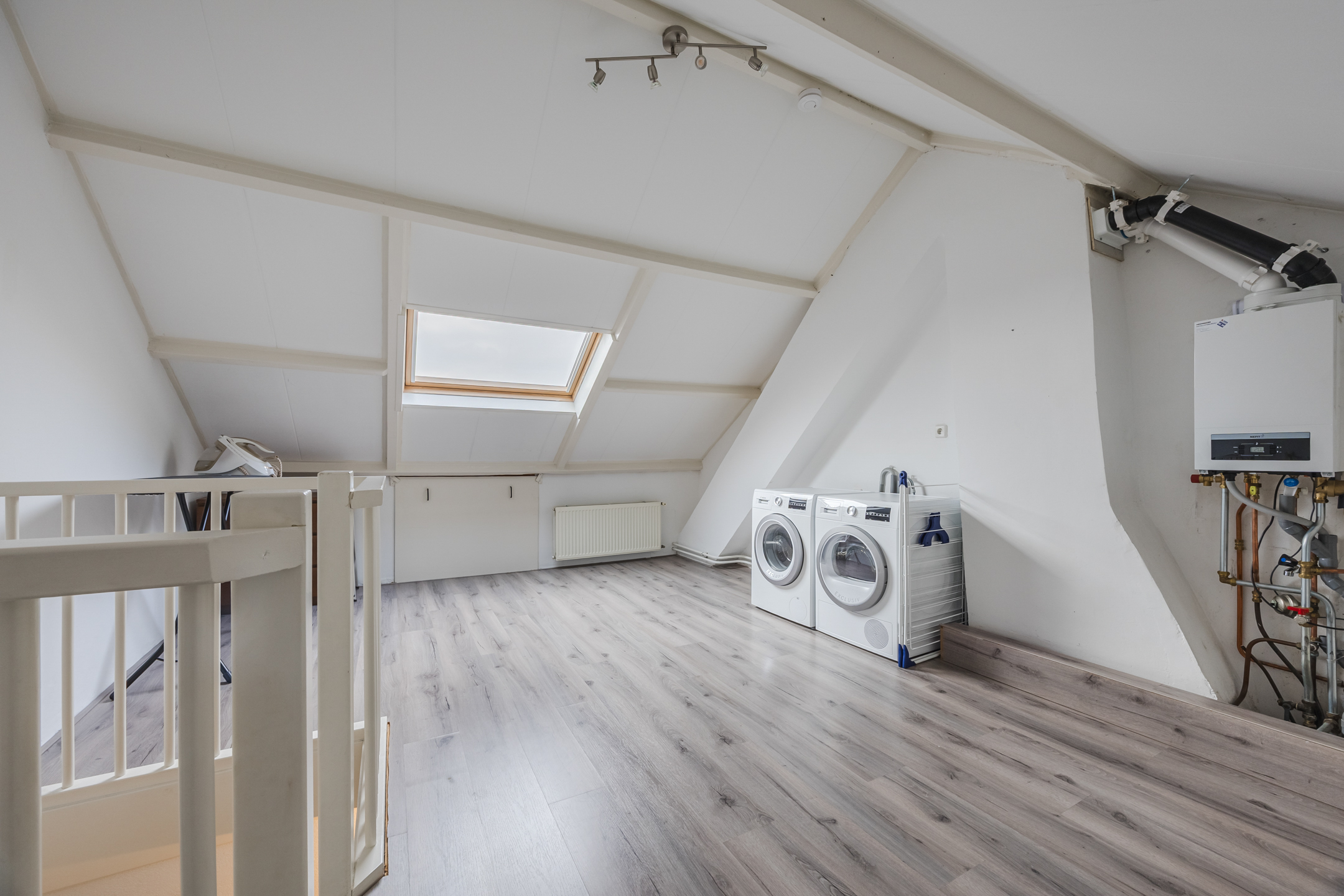 Via een vaste trap bereikt u de royale zolderruimte. Hier is eenvoudig een extra slaap- of werkkamer te realiseren. Tevens bevinden zich hier de aansluitingen voor wasmachine en droger, de cv-ketelopstelling en veel bergruimte.