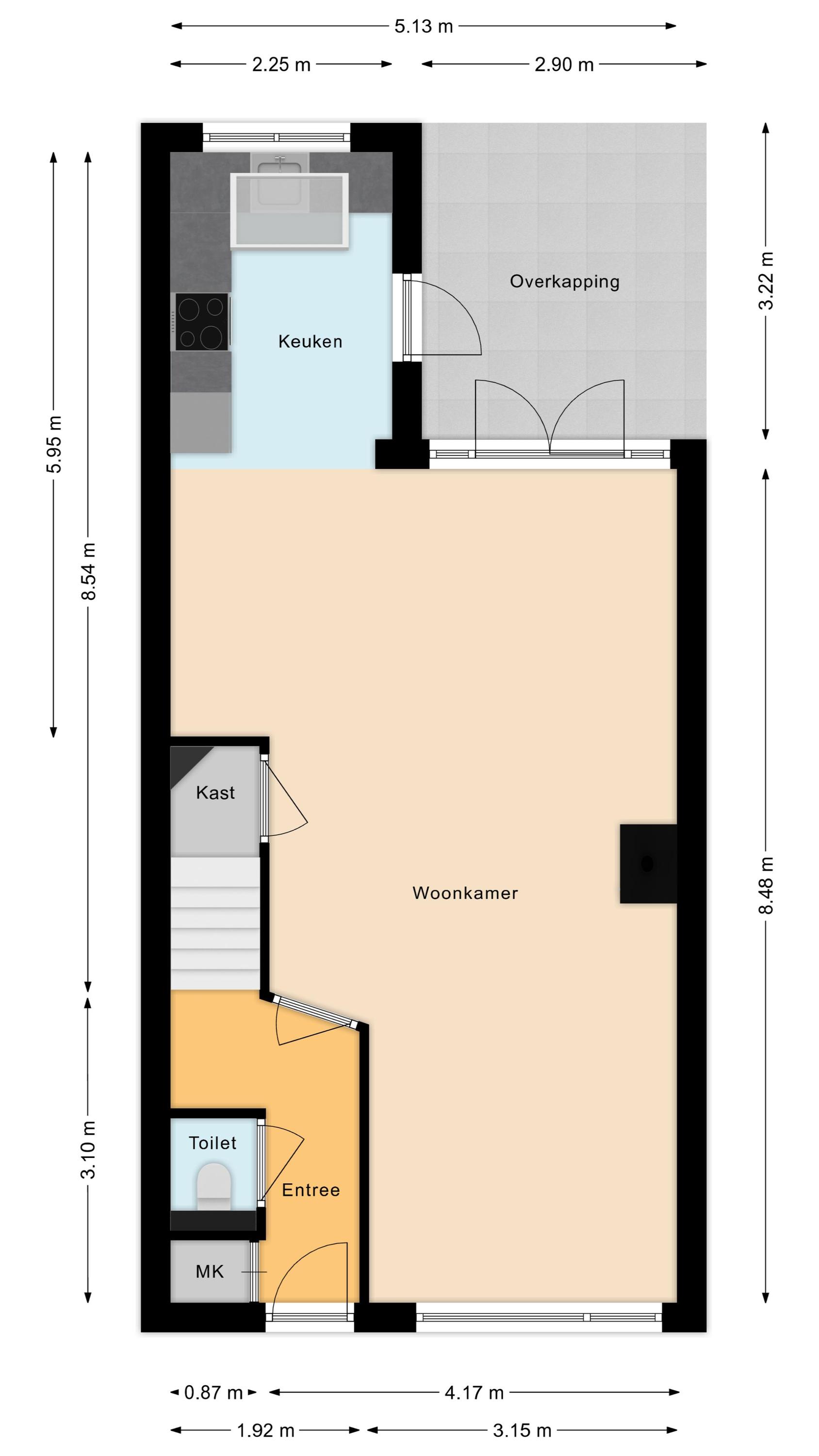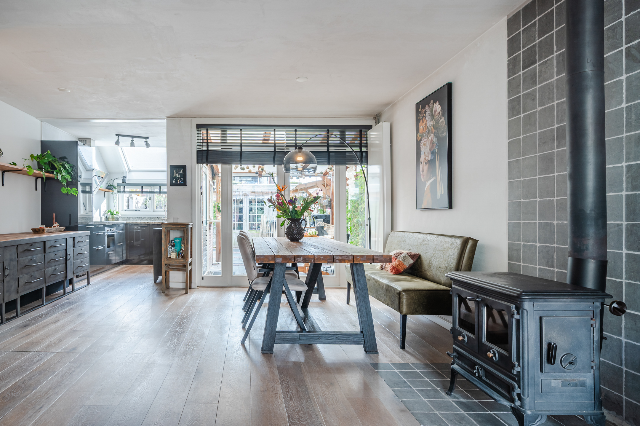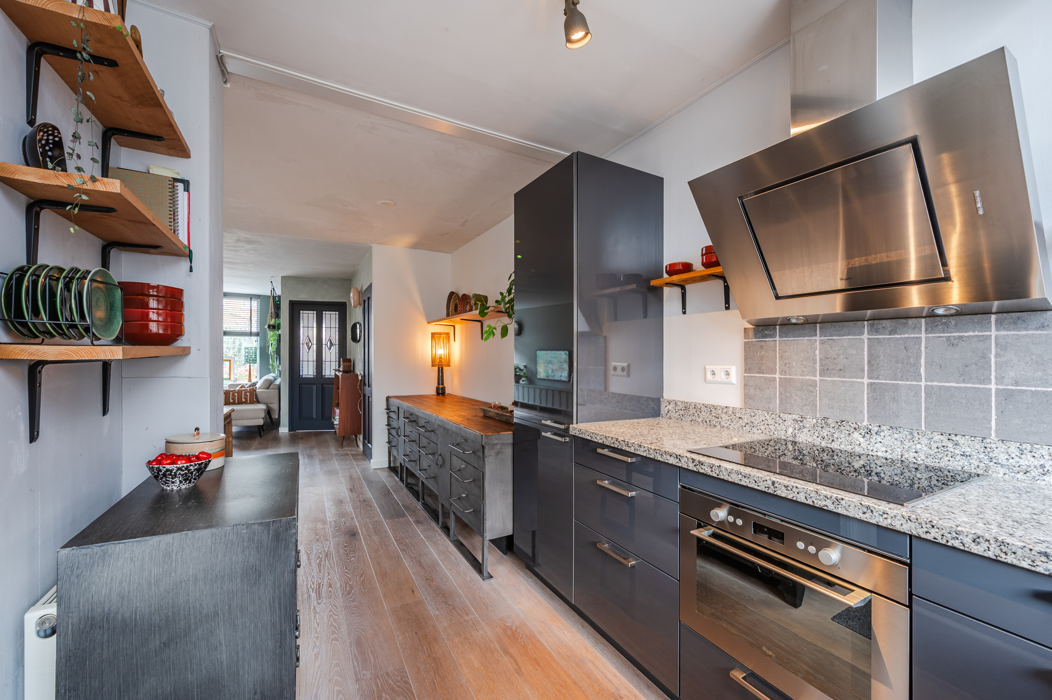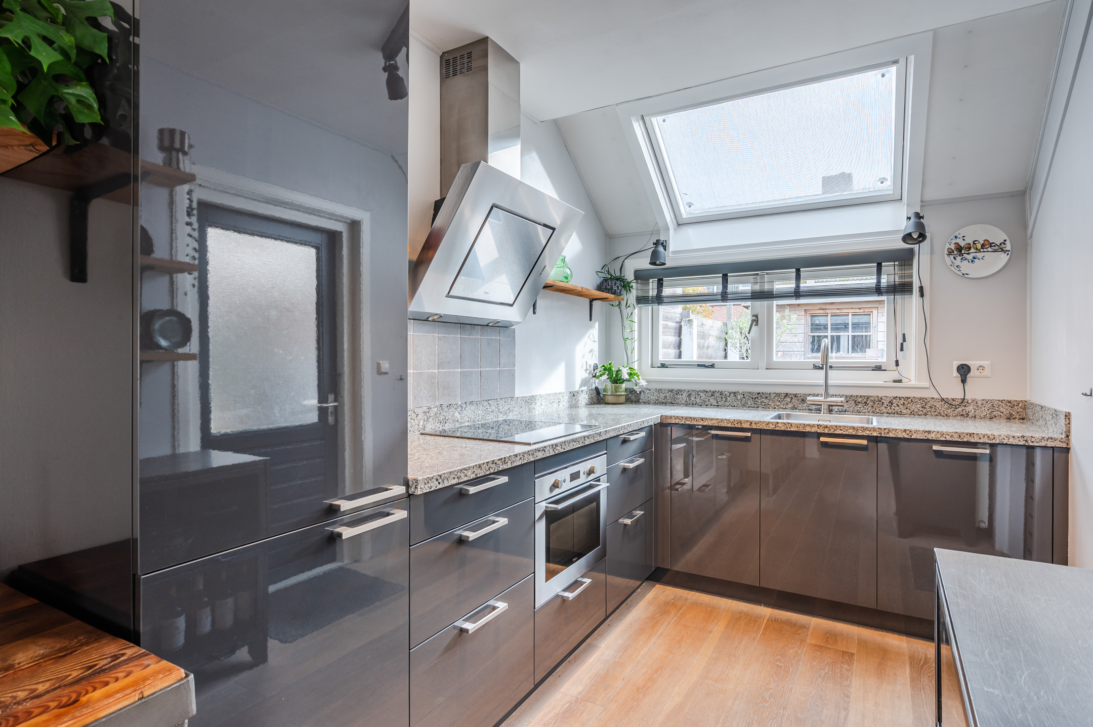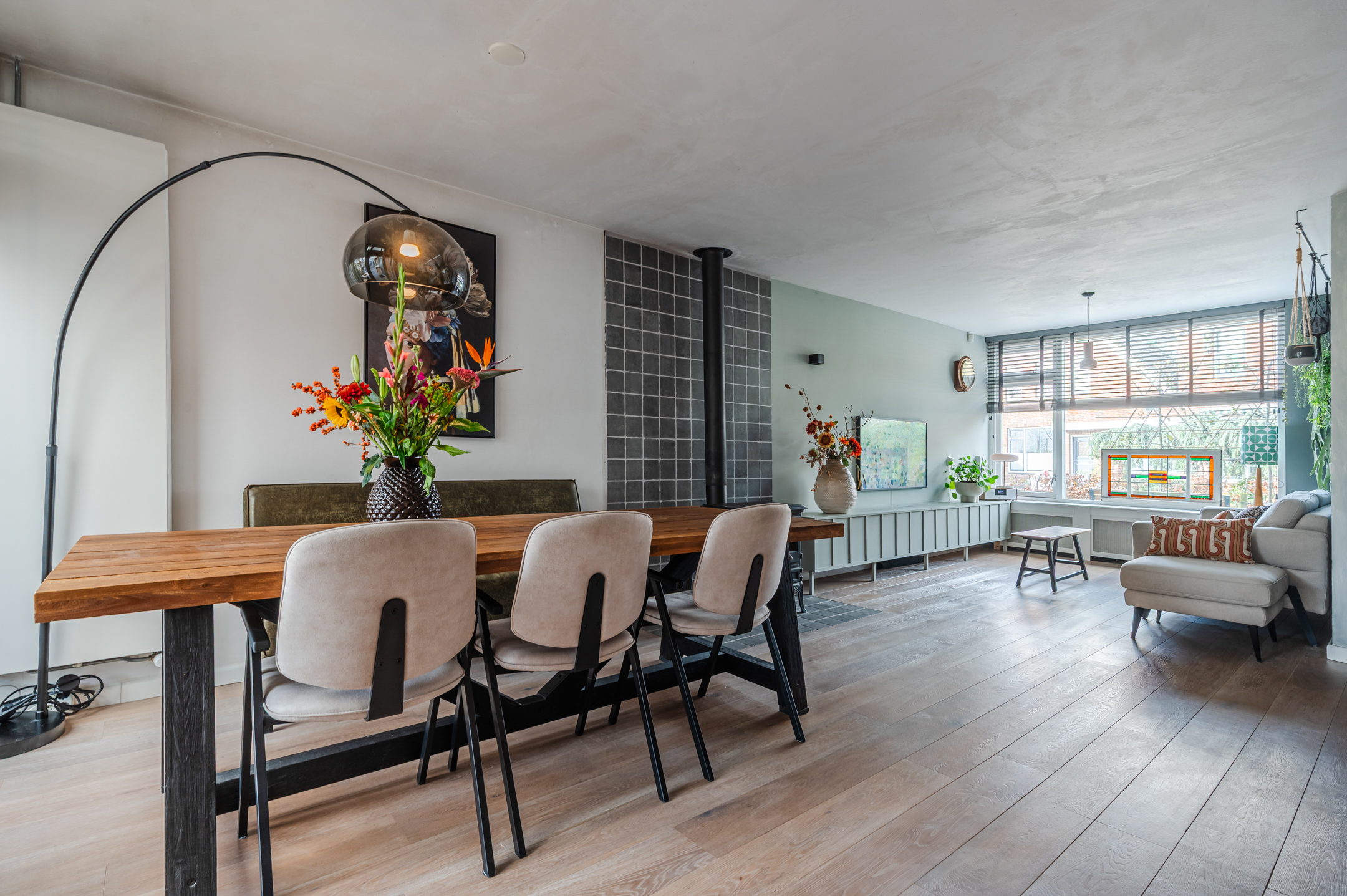 Via de entree heeft u toegang tot de meterkast, het toilet, de vaste trap naar de verdieping en de woonkamer. De diepe doorzonwoonkamer is door de vele raampartijen heerlijk licht en is voorzien van een mooie houten vloer. Halverwege de woonkamer bevindt zich een sfeervolle houtkachel die de woonkamer aangenaam verwarmt. Aan de achterzijde bevindt zich een open keuken welke is voorzien van diverse inbouwapparatuur.