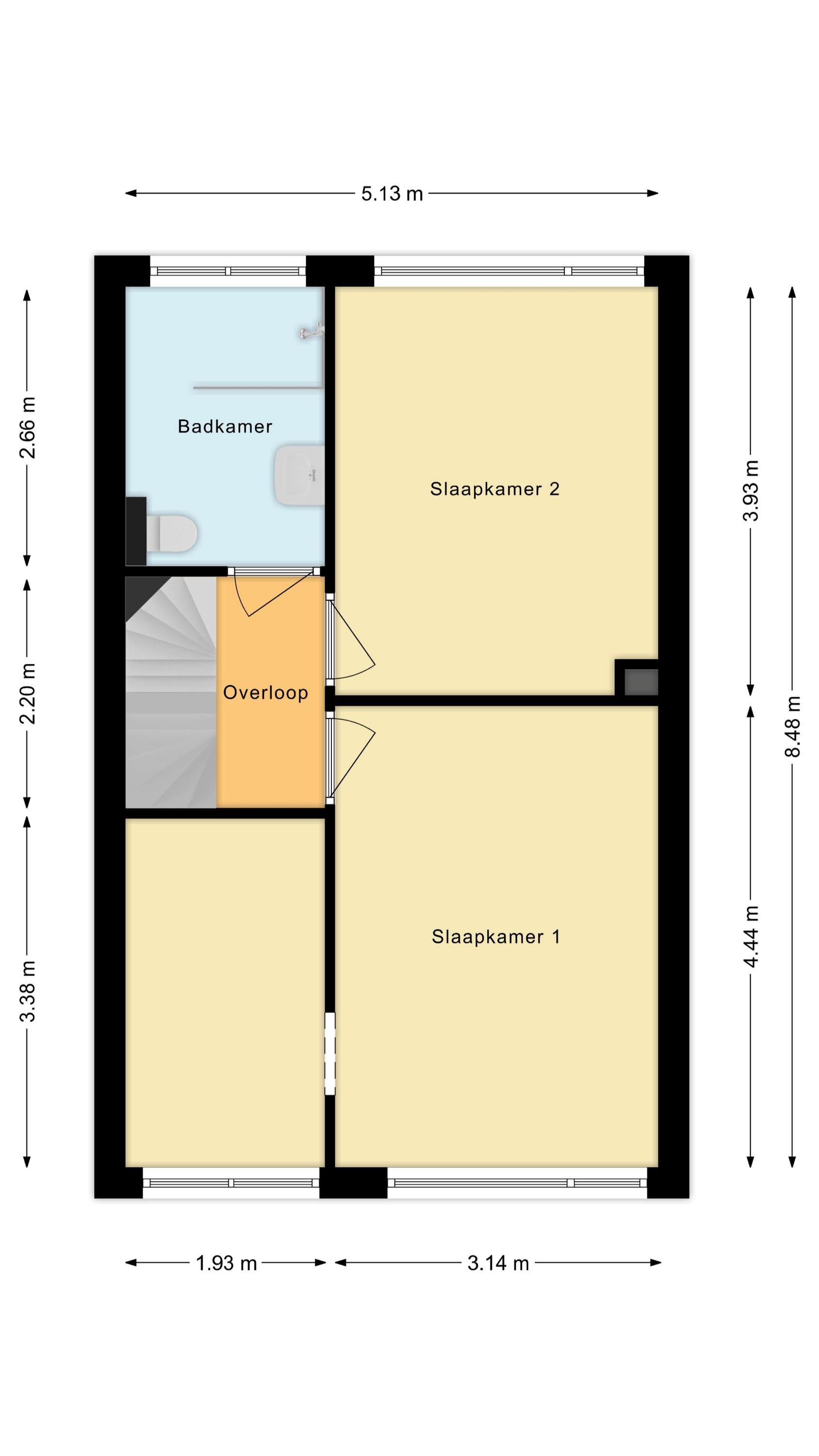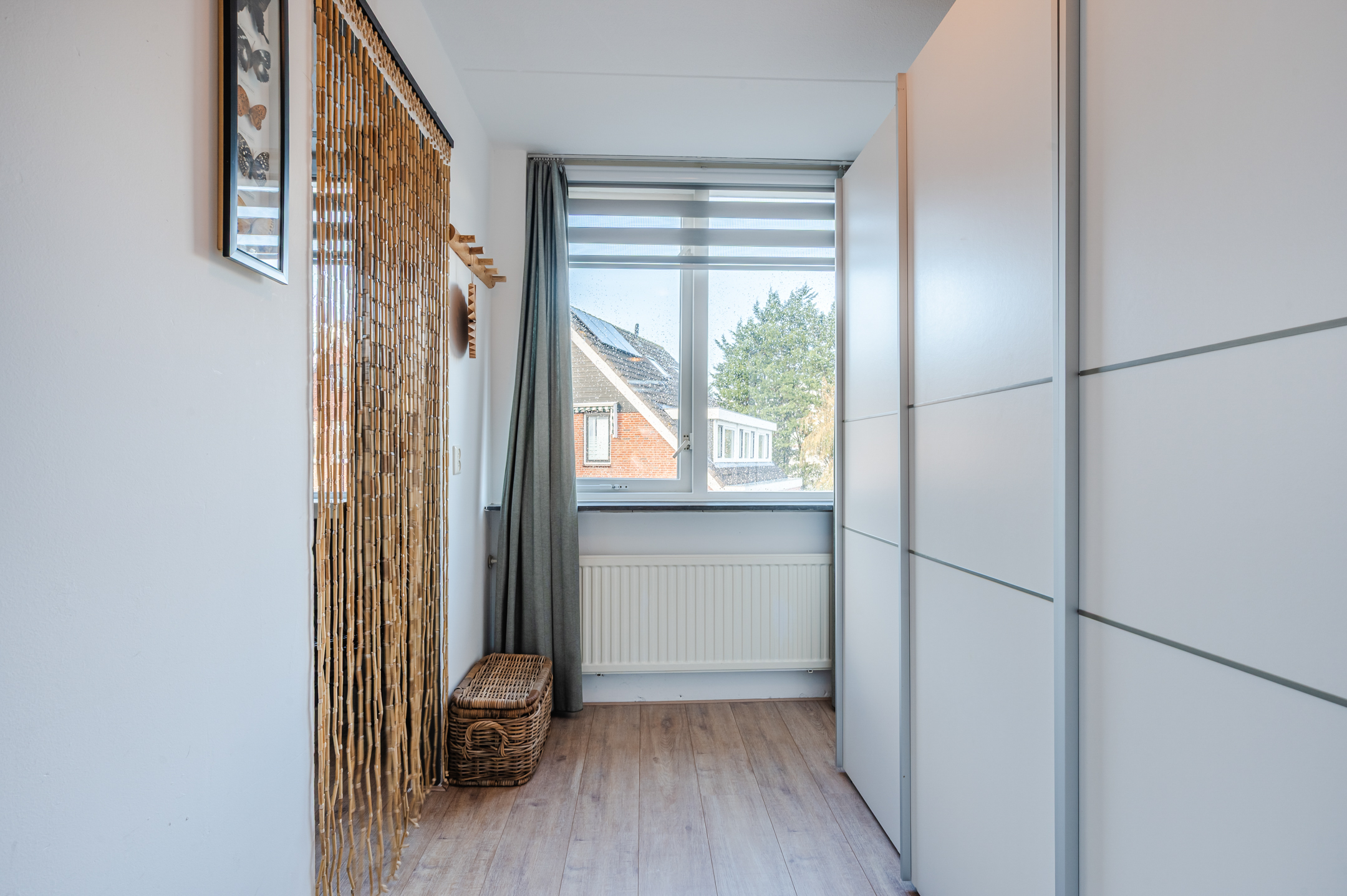 Via de overloop heeft u toegang tot alle vertrekken. Aan de voorzijde van de woning bevindt zich een ruime slaapkamer met een aangrenzende inloopkast (voormalig slaapkamer). Aan de achterzijde bevindt zich nog een mooi formaat slaapkamer. De badkamer is voorzien van een tweede toilet, wastafel en inloopdouche.