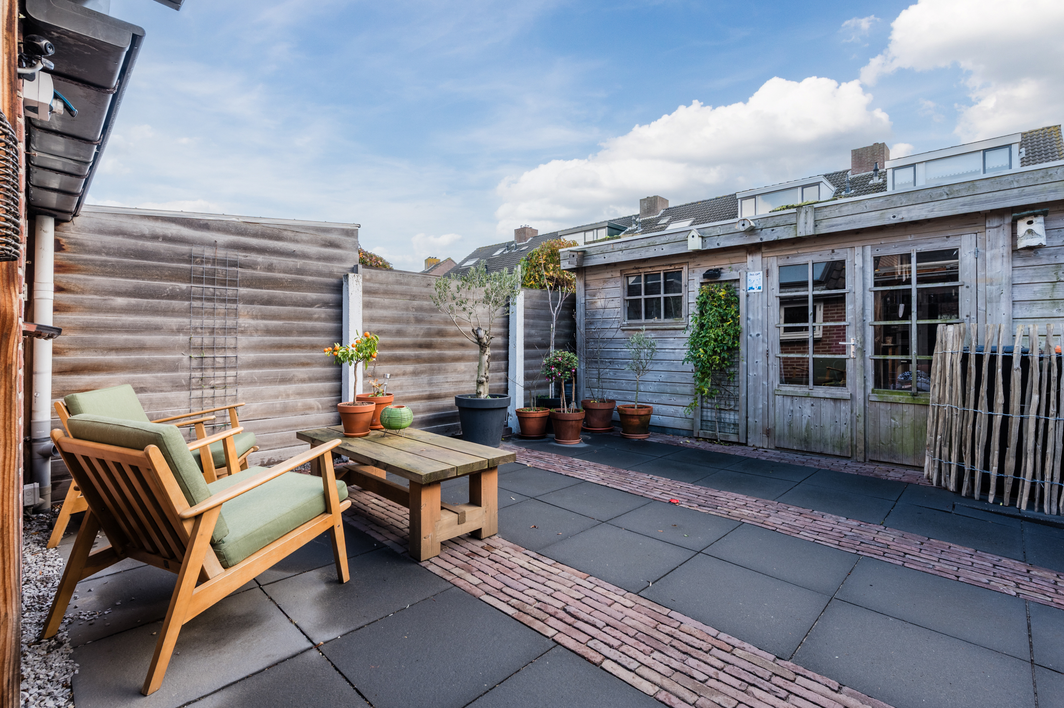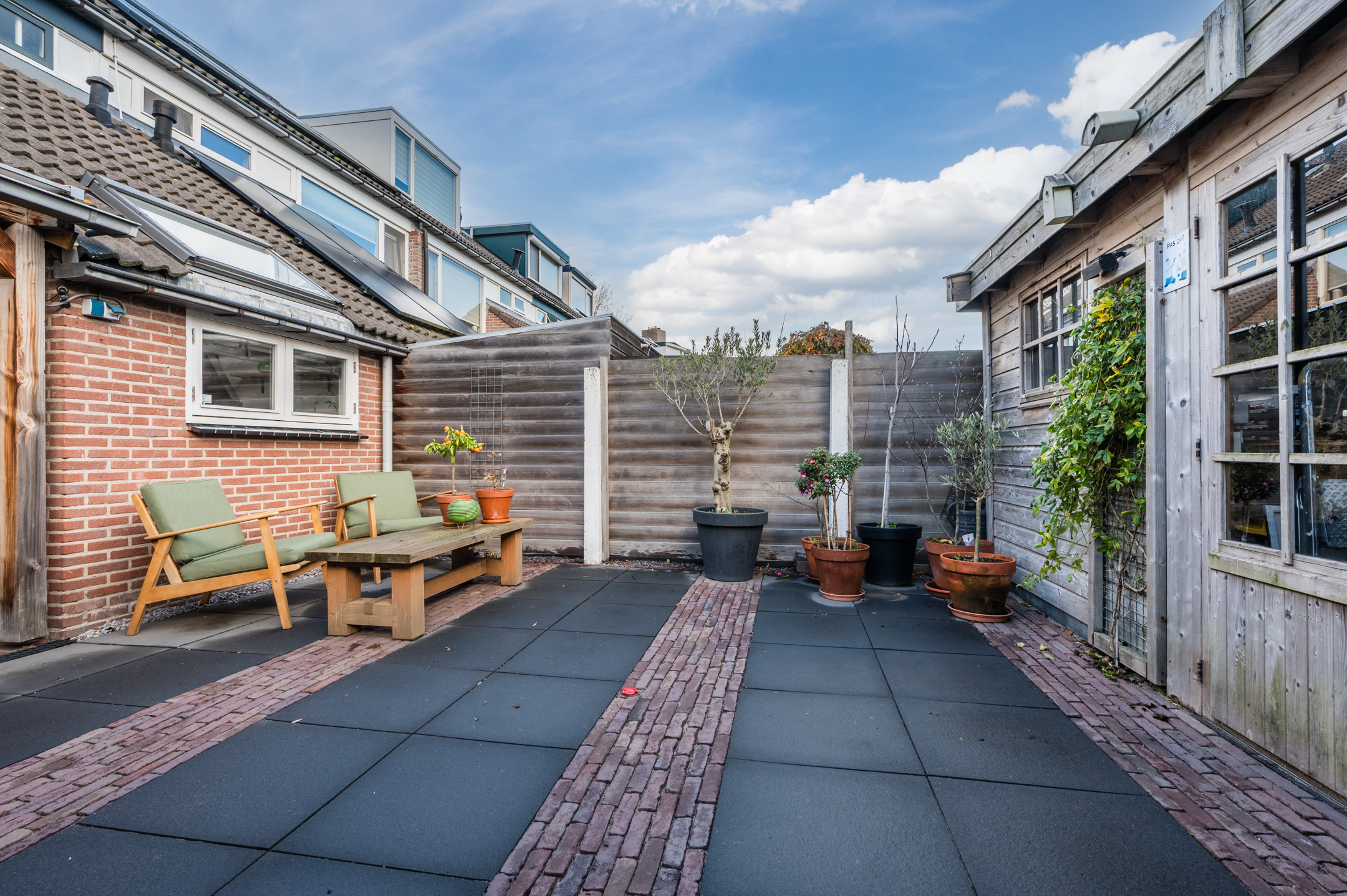De heerlijk ruime achtertuin is achterom bereikbaar. Aan de achterzijde van de tuin is er nog een ruime berging gelegen, ideaal als bergruimte of als klus schuur.
