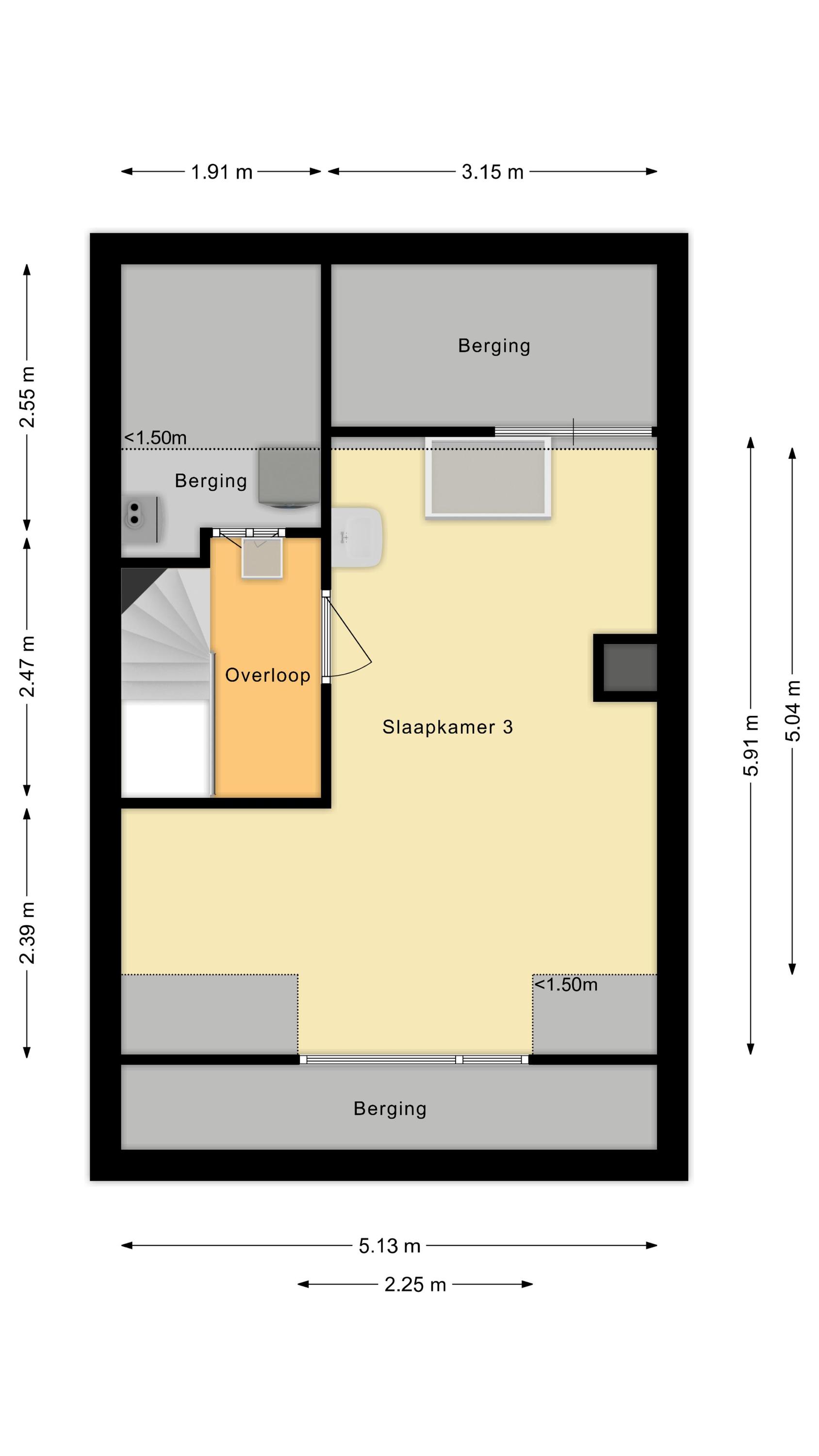 Via een vaste trap komt u op de verdieping met overloop. In de berging bevindt zich de cv-ketel (2012). Verder is hier nog een derde zeer ruime slaapkamer. Hier heeft u de mogelijkheid om één of twee extra slaapkamers te realiseren.